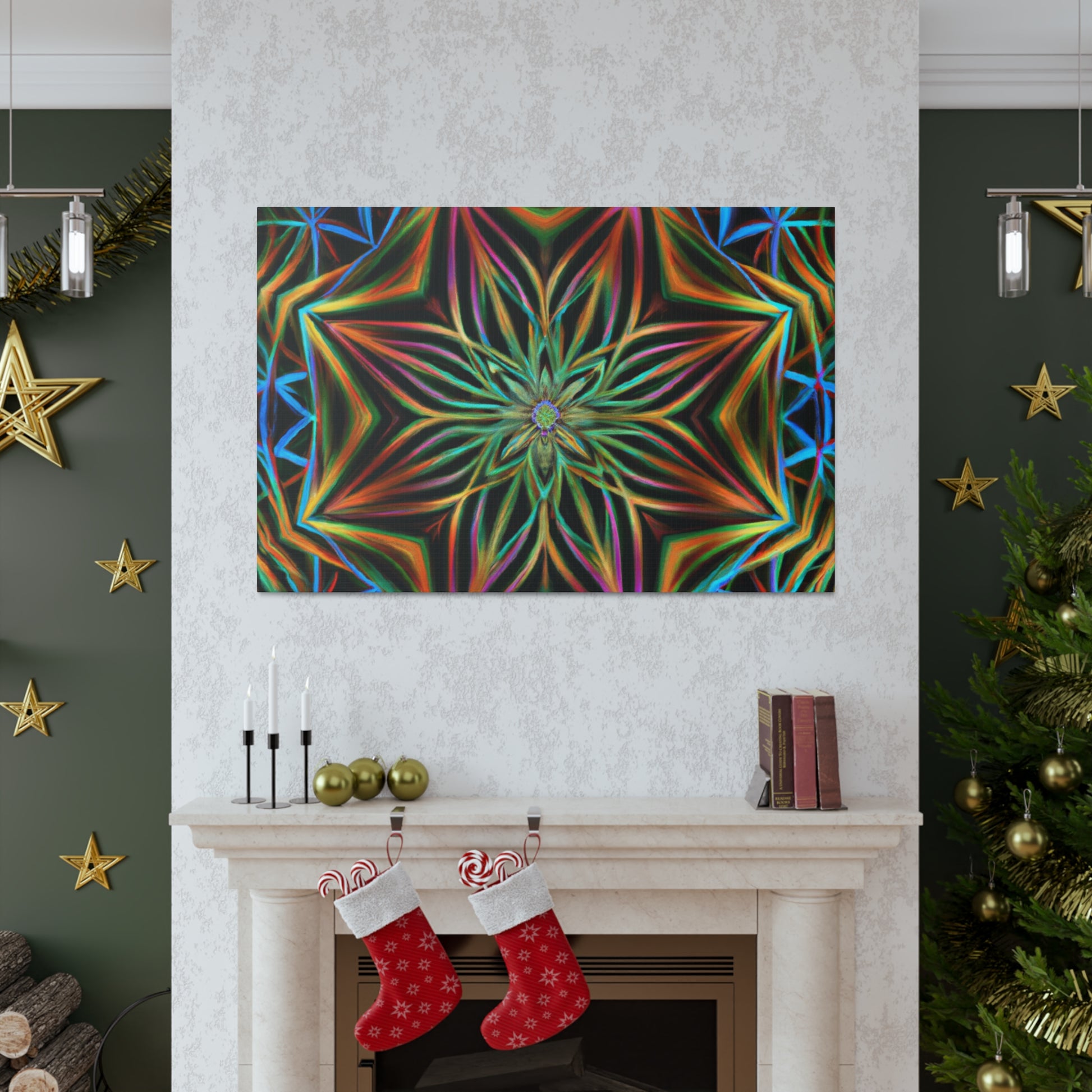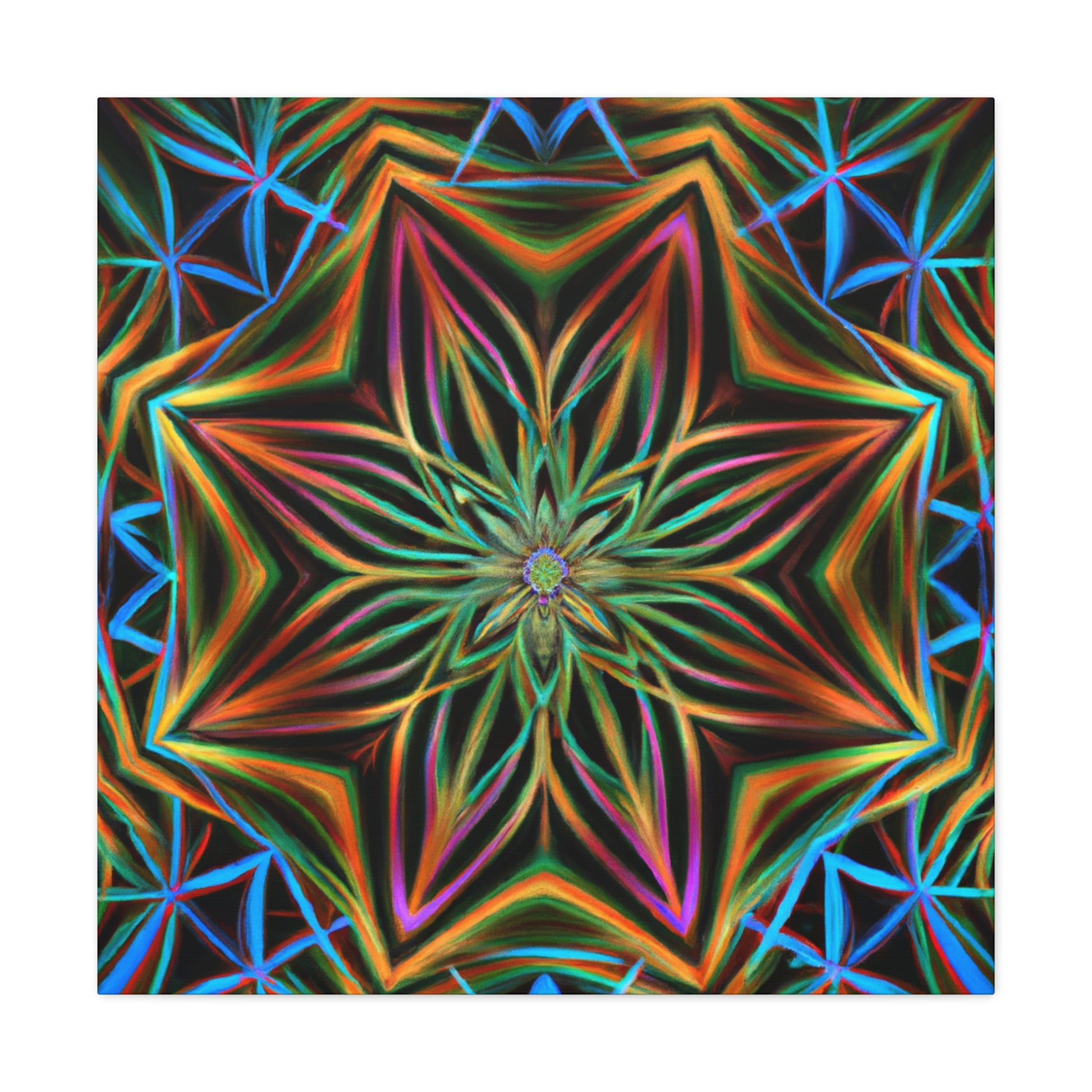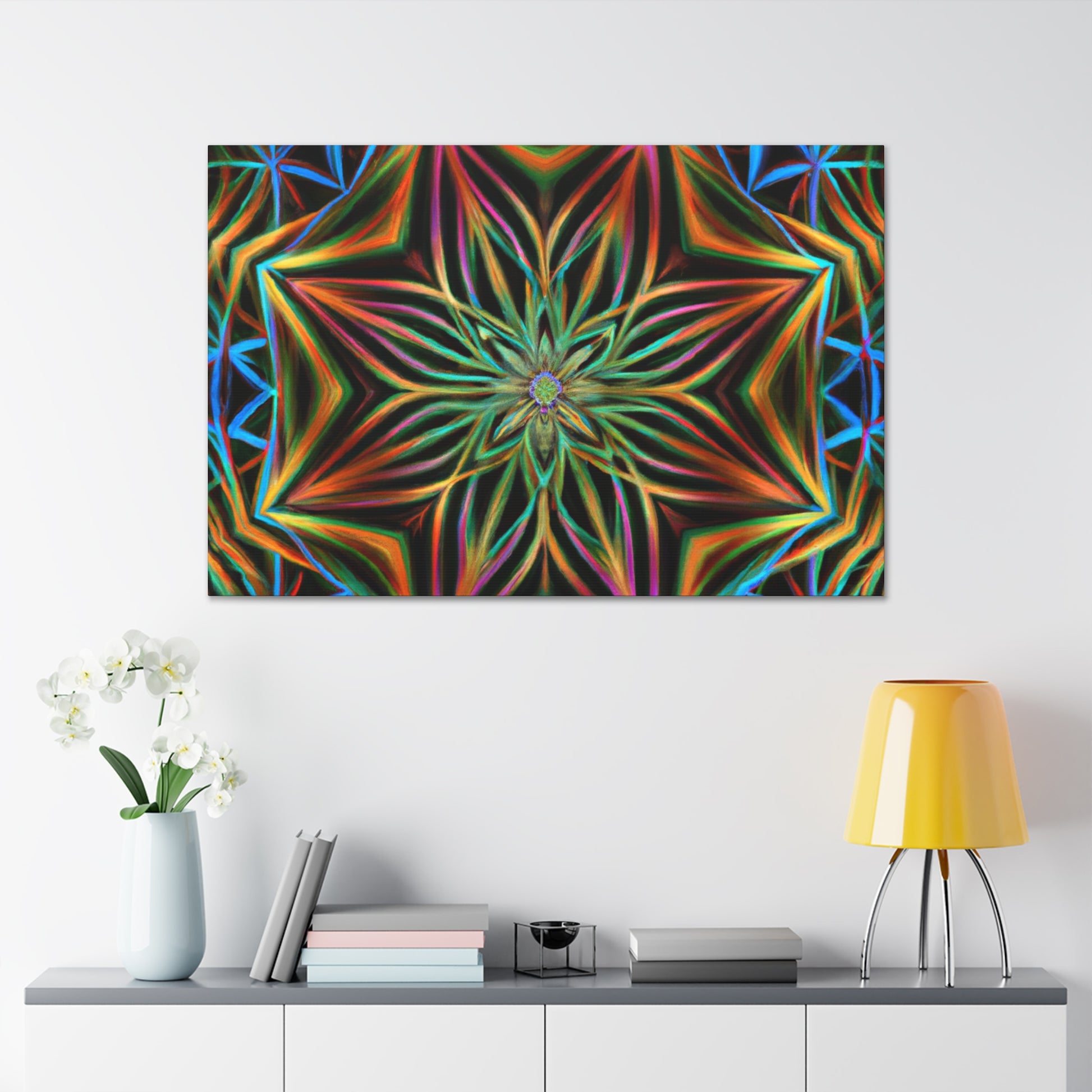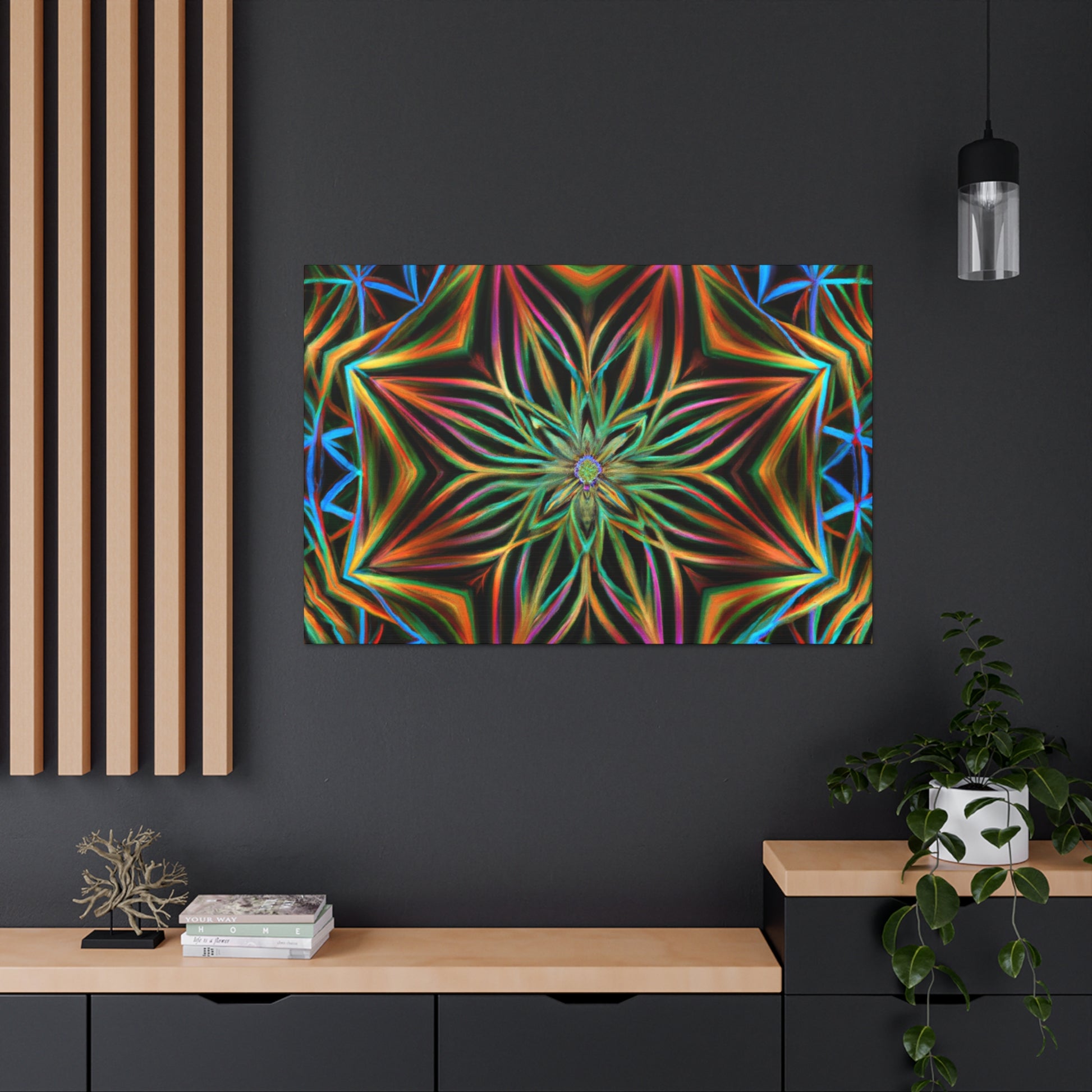 This vibrant and eye-catching canvas of Trippy Geometric Palm Leaves, Kaleidoscope, Abstract, Digital Art and 3D Lines brings an artful, modern touch to any home. Fractal shapes in rainbow colors create a unique and lively pattern that will add a sense of movement and energy to any space. Perfect for personalizing and bringing joy to your home. #modernart #abstractart #palmleaves #geometricart #kaleidoscope #3dlines #fractal #digitalart #vibrantcolors #rainbowcolors #artistictouch