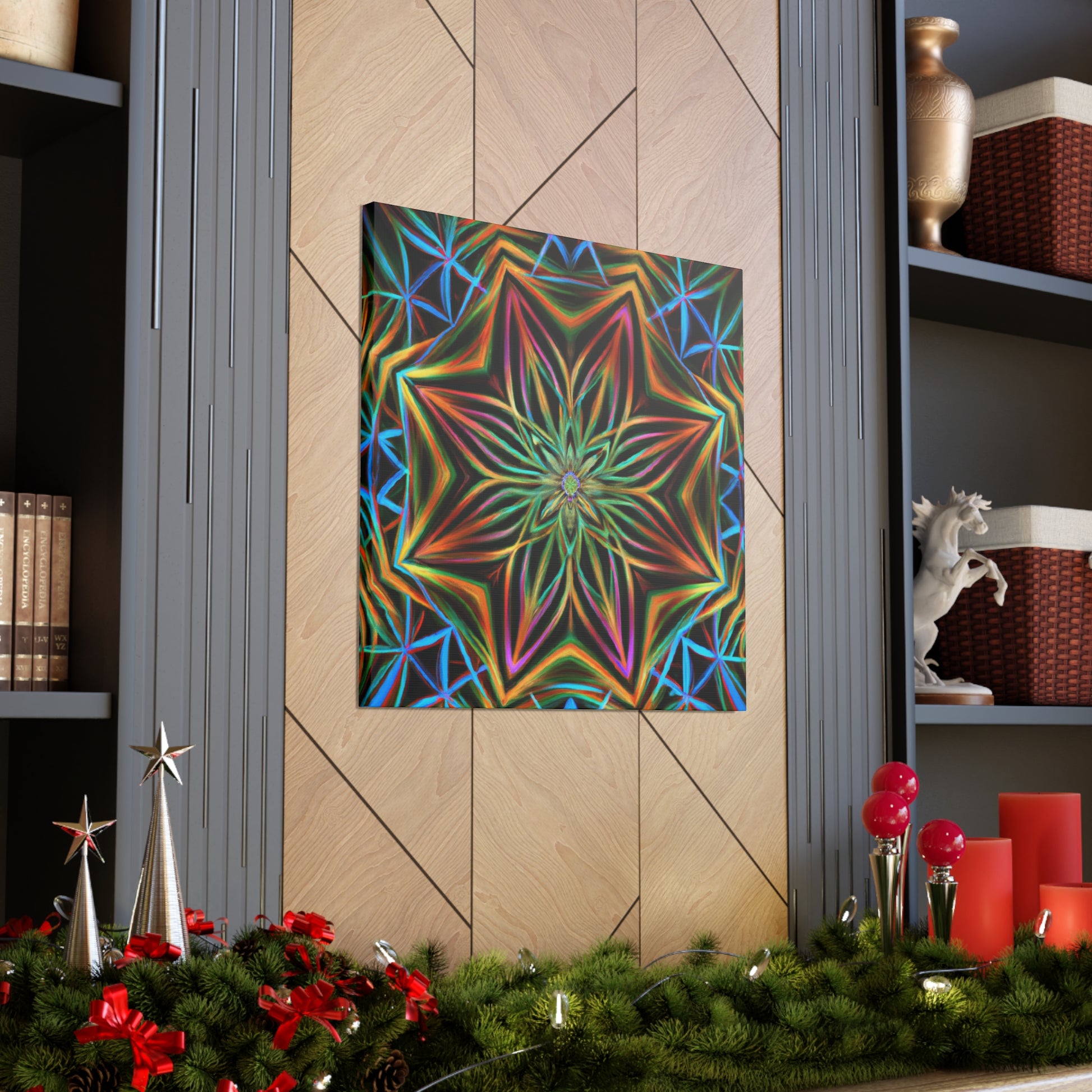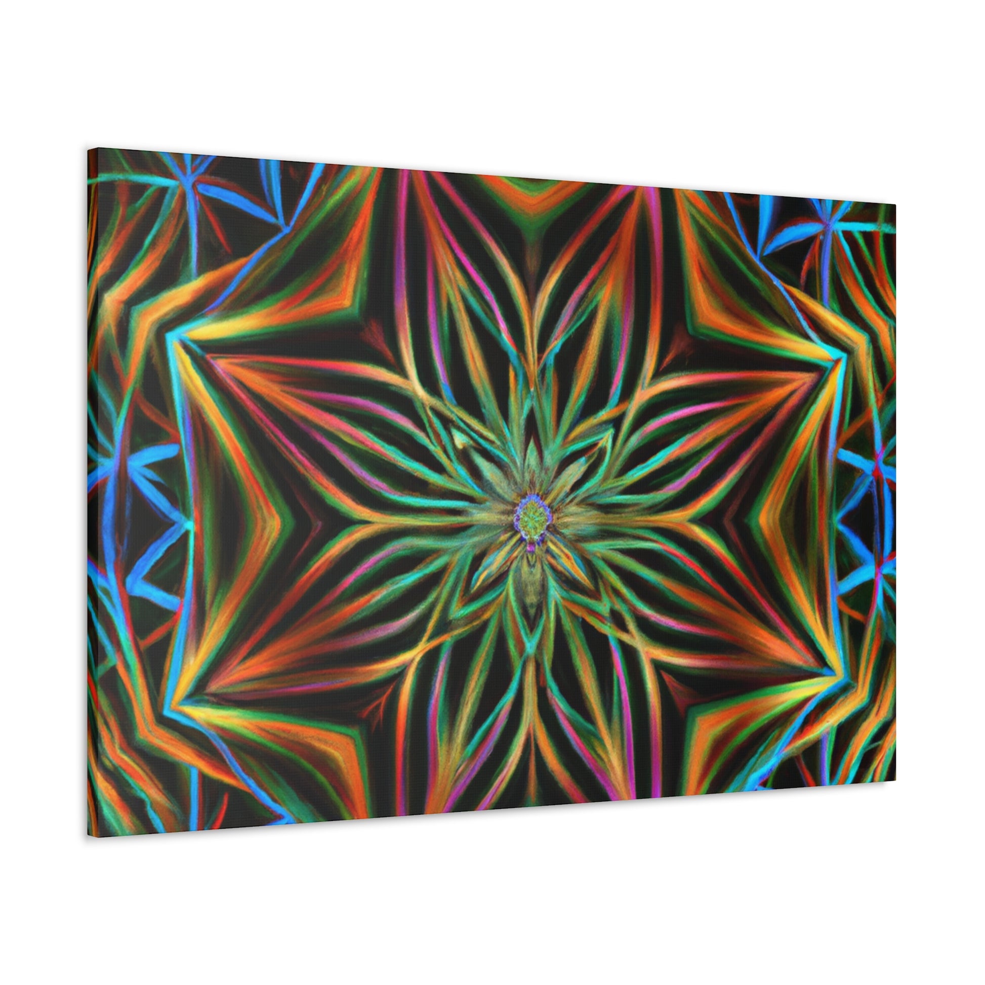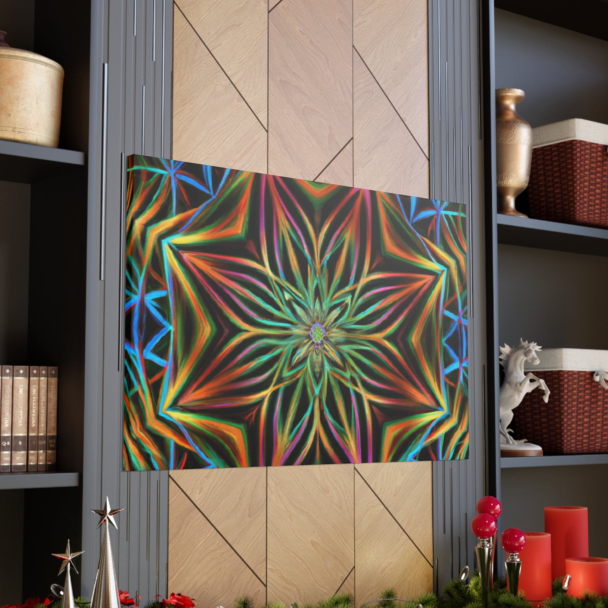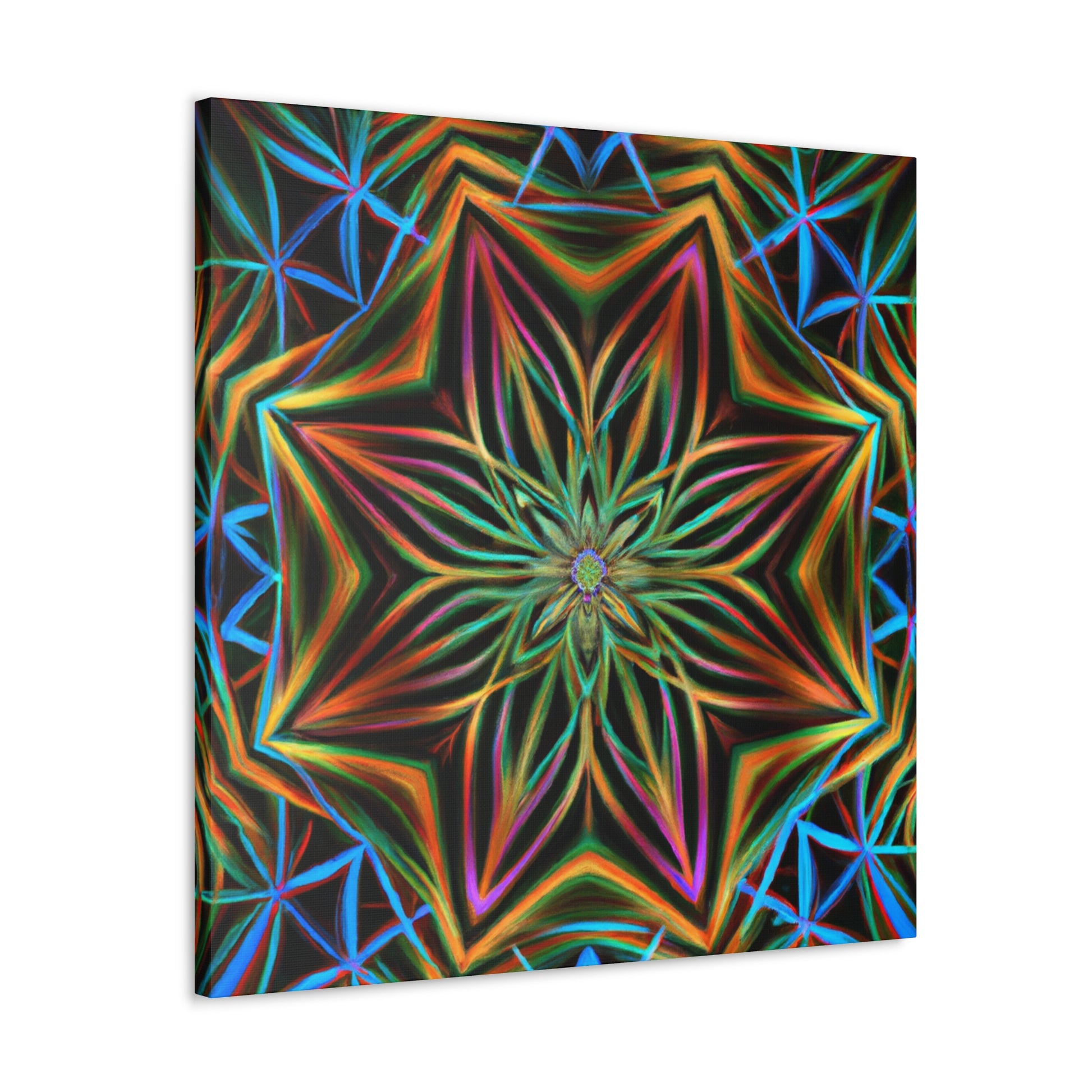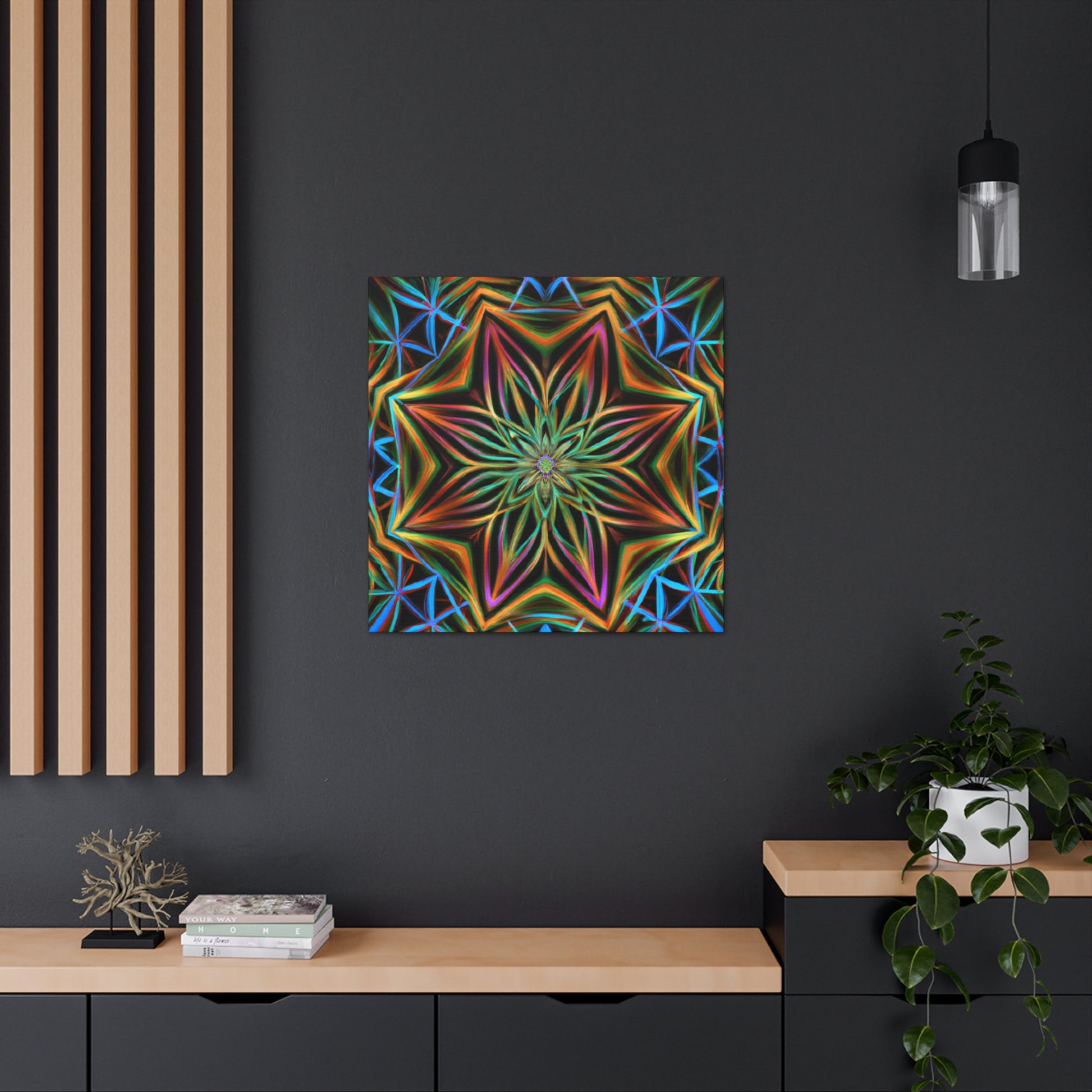 This vibrant and eye-catching canvas of Trippy Geometric Palm Leaves, Kaleidoscope, Abstract, Digital Art and 3D Lines brings an artful, modern touch to any home. Fractal shapes in rainbow colors create a unique and lively pattern that will add a sense of movement and energy to any space. Perfect for personalizing and bringing joy to your home. #modernart #abstractart #palmleaves #geometricart #kaleidoscope #3dlines #fractal #digitalart #vibrantcolors #rainbowcolors #artistictouch