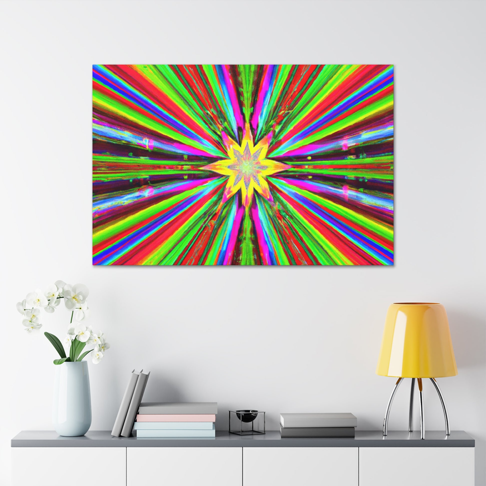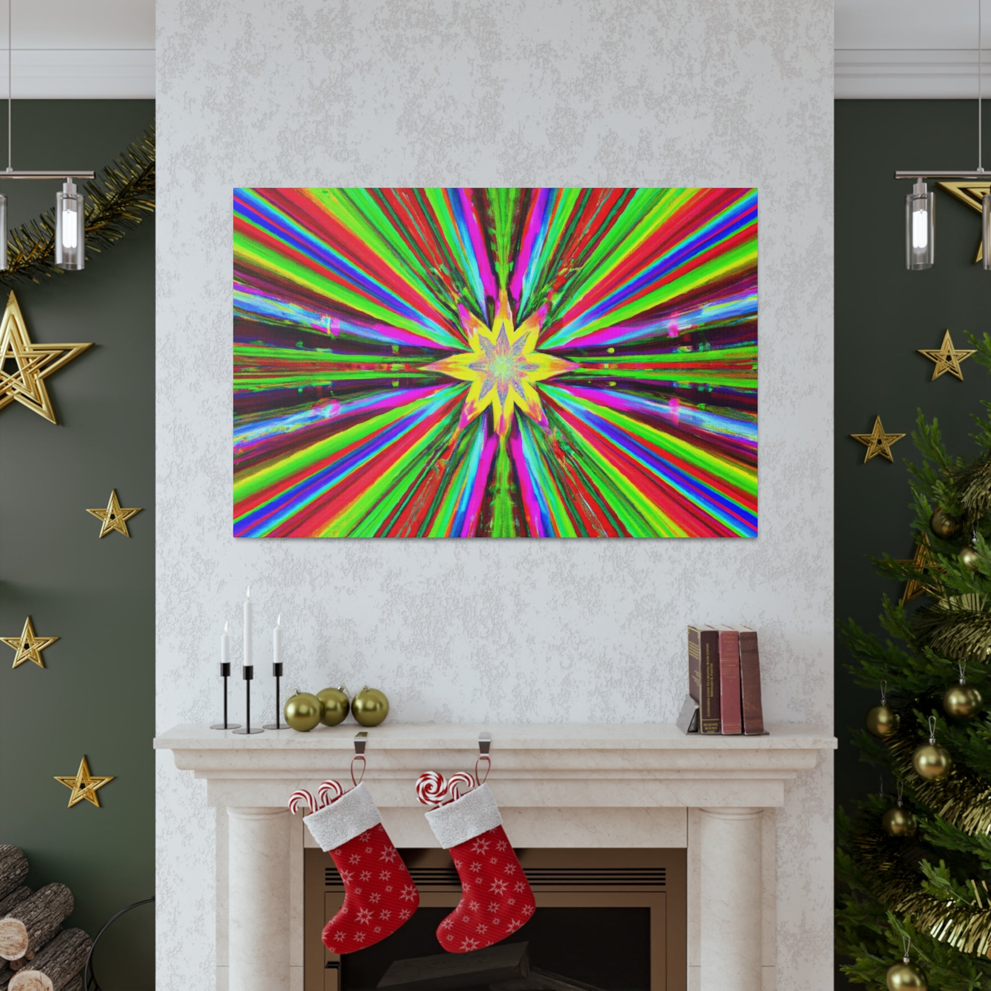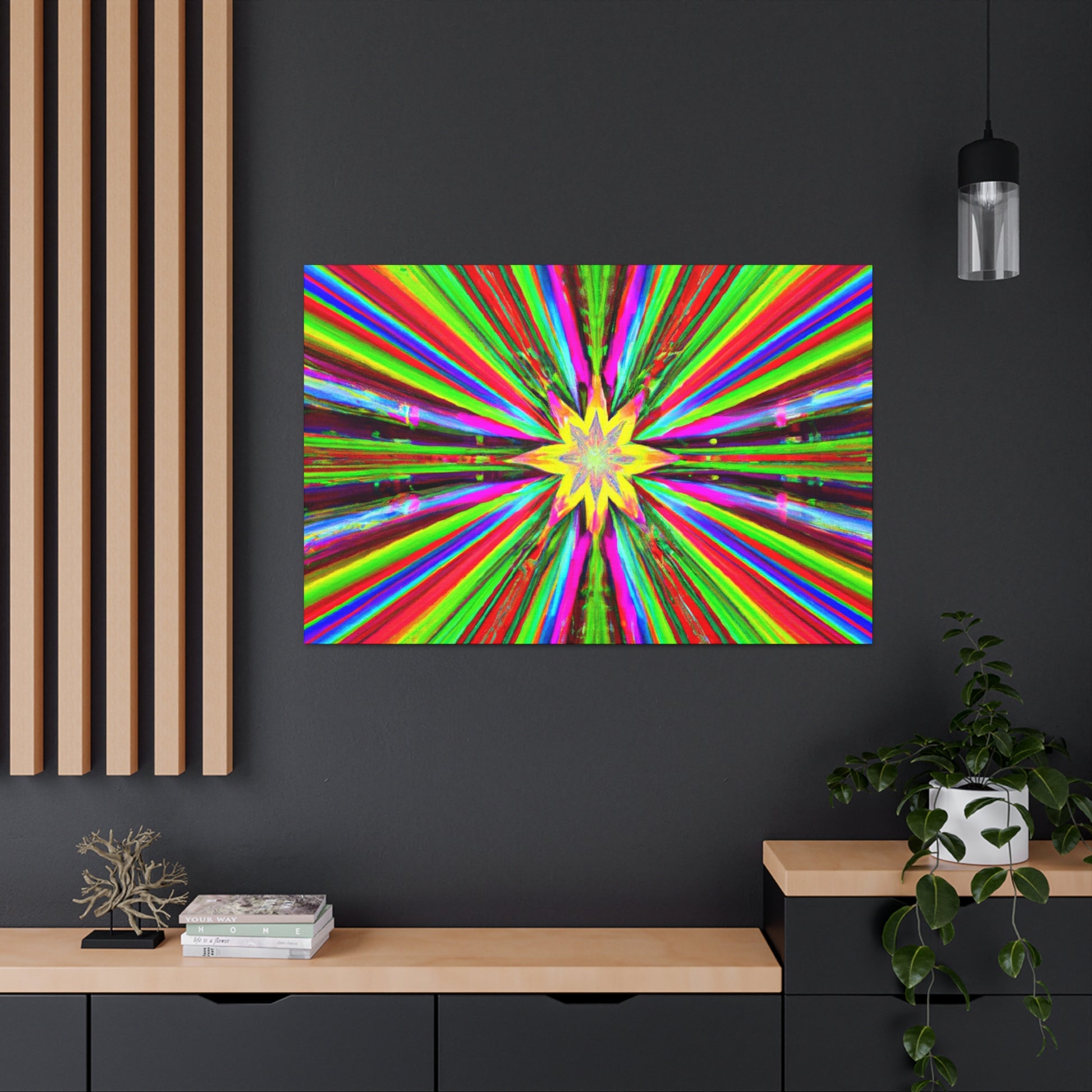 This vibrant, abstract art piece features trippy stars, a kaleidoscope of shapes and colors. Symmetrical and digitally perfect, this HD canvas print is sure to add an eye-catching element to any wall. With its mix of soft and bright colours, it adds a unique touch to any home. #abstractart #canvasprint #trippystars #kaleidoscope #vibrantcolours #symmetrical #hd #digitalart #vivid #artistry #exclusive