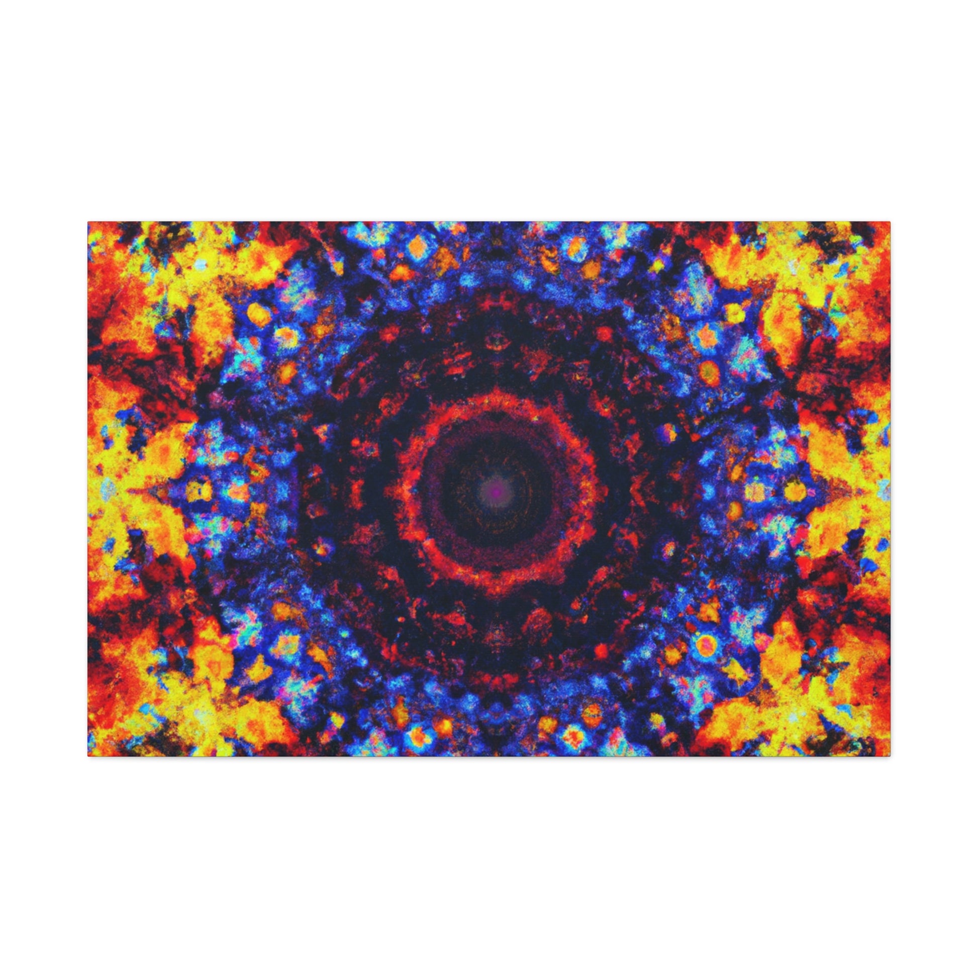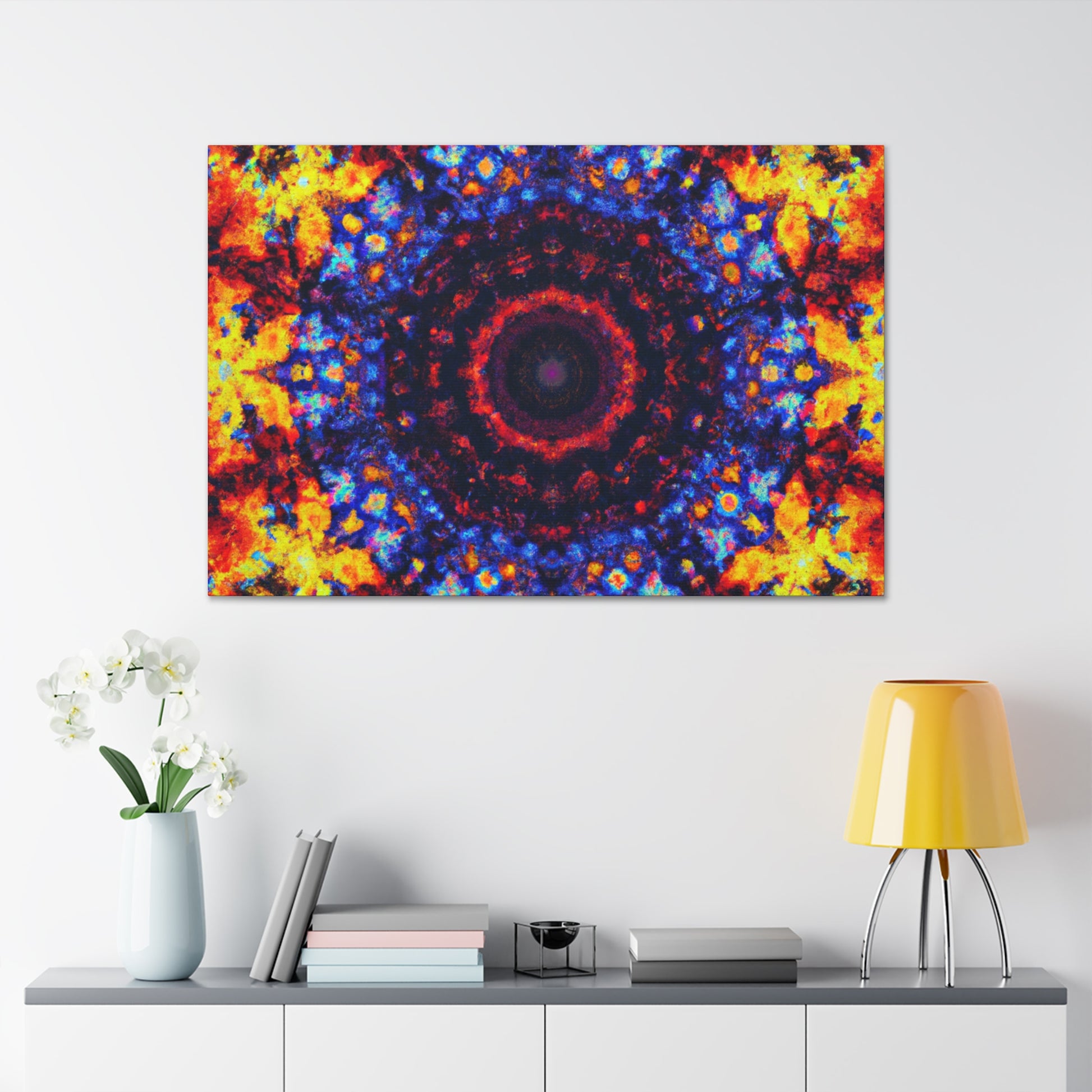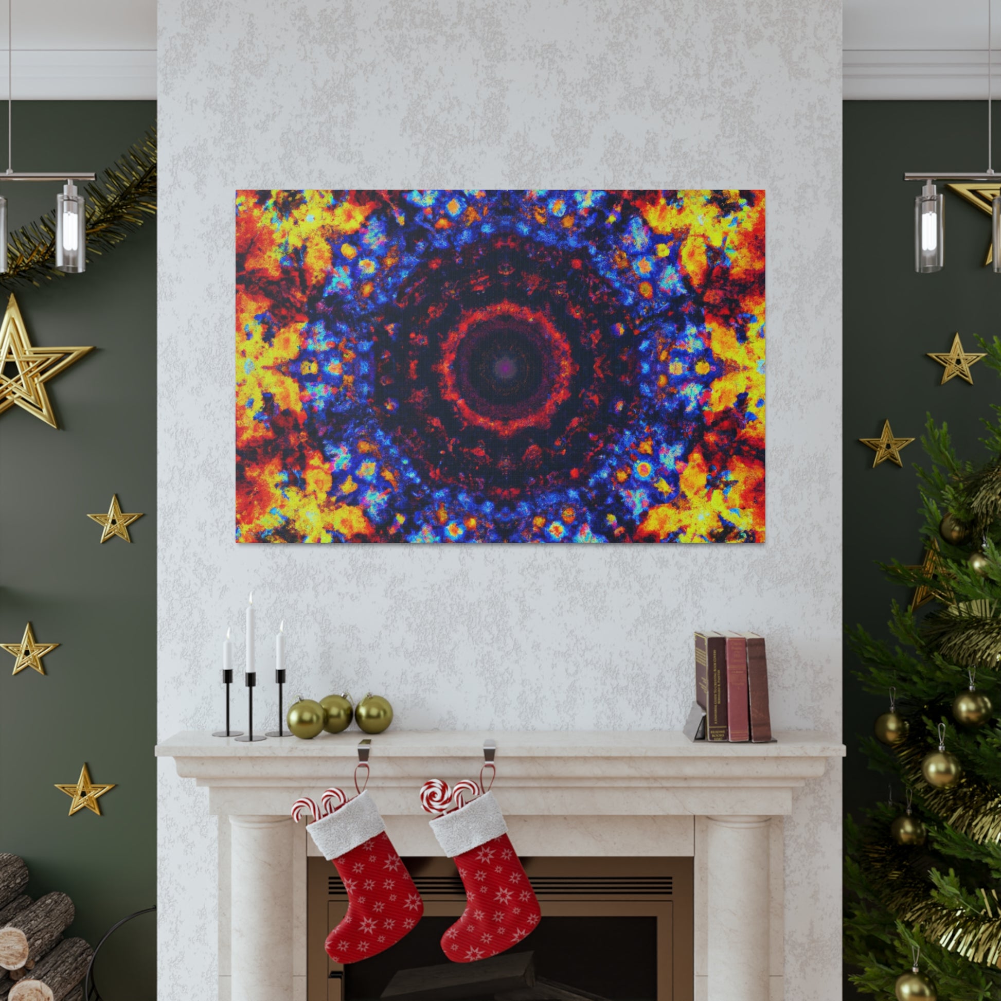 This canvas of vibrant, digital art will add a unique, abstract look to any room. Featuring bold colors and bold patterns of trippy stars with kaleidoscope symmetry, this digital art will bring life into any room, providing HD clarity that will brighten any occasion. #trippydigitalart #kaleidoscopecanvas #abstractart #digitalart #vibrantcolors #HDclarity #uniquedesign #canvasmurals #boldcolors #trippystars #boldpatterns
