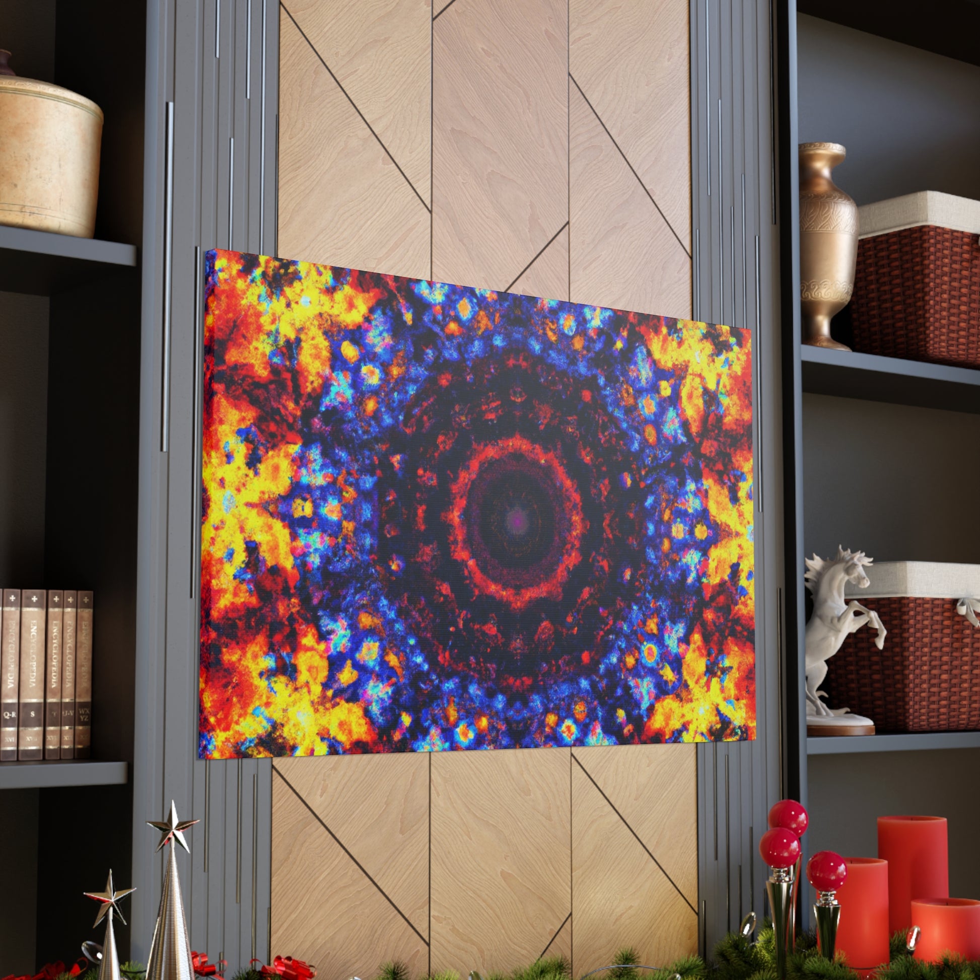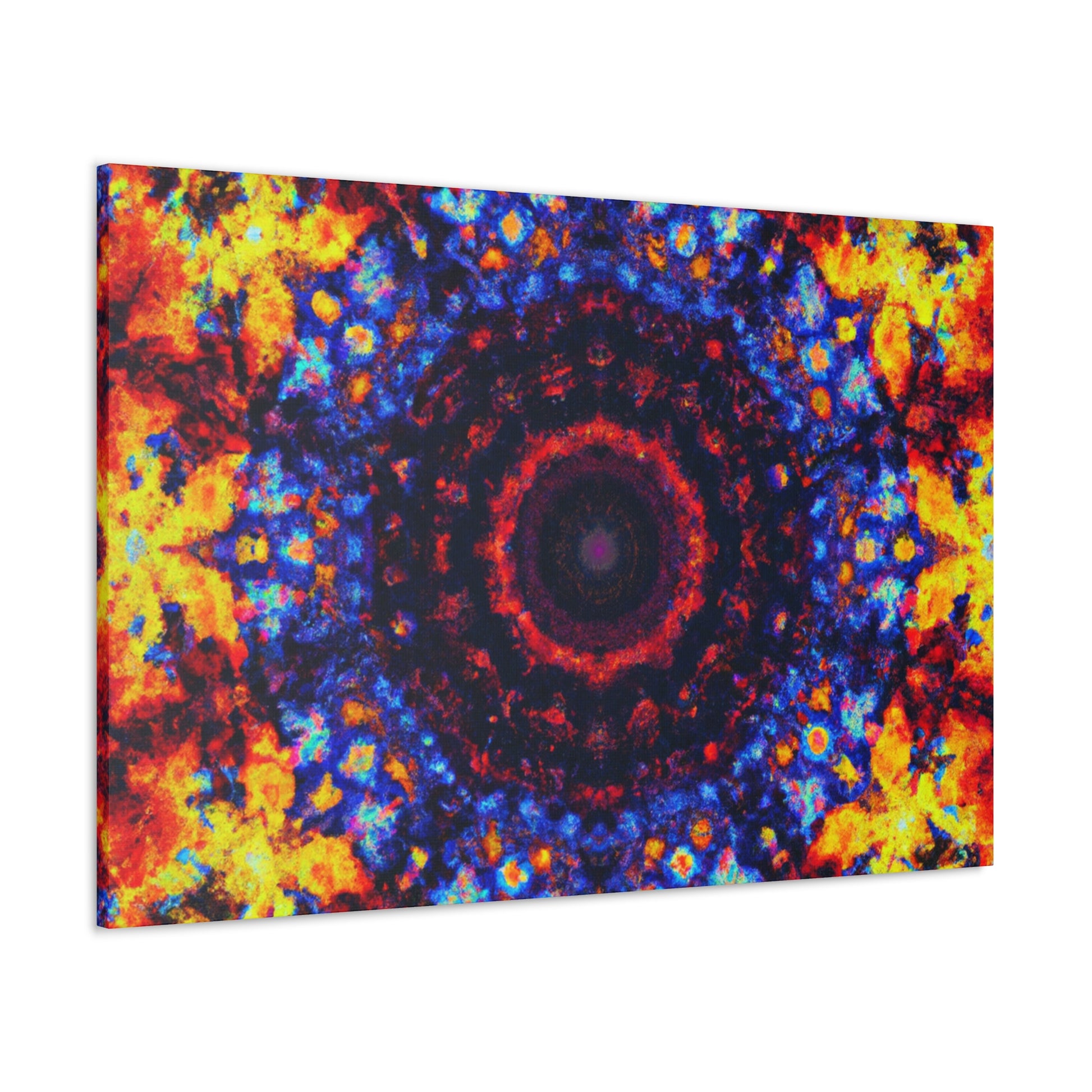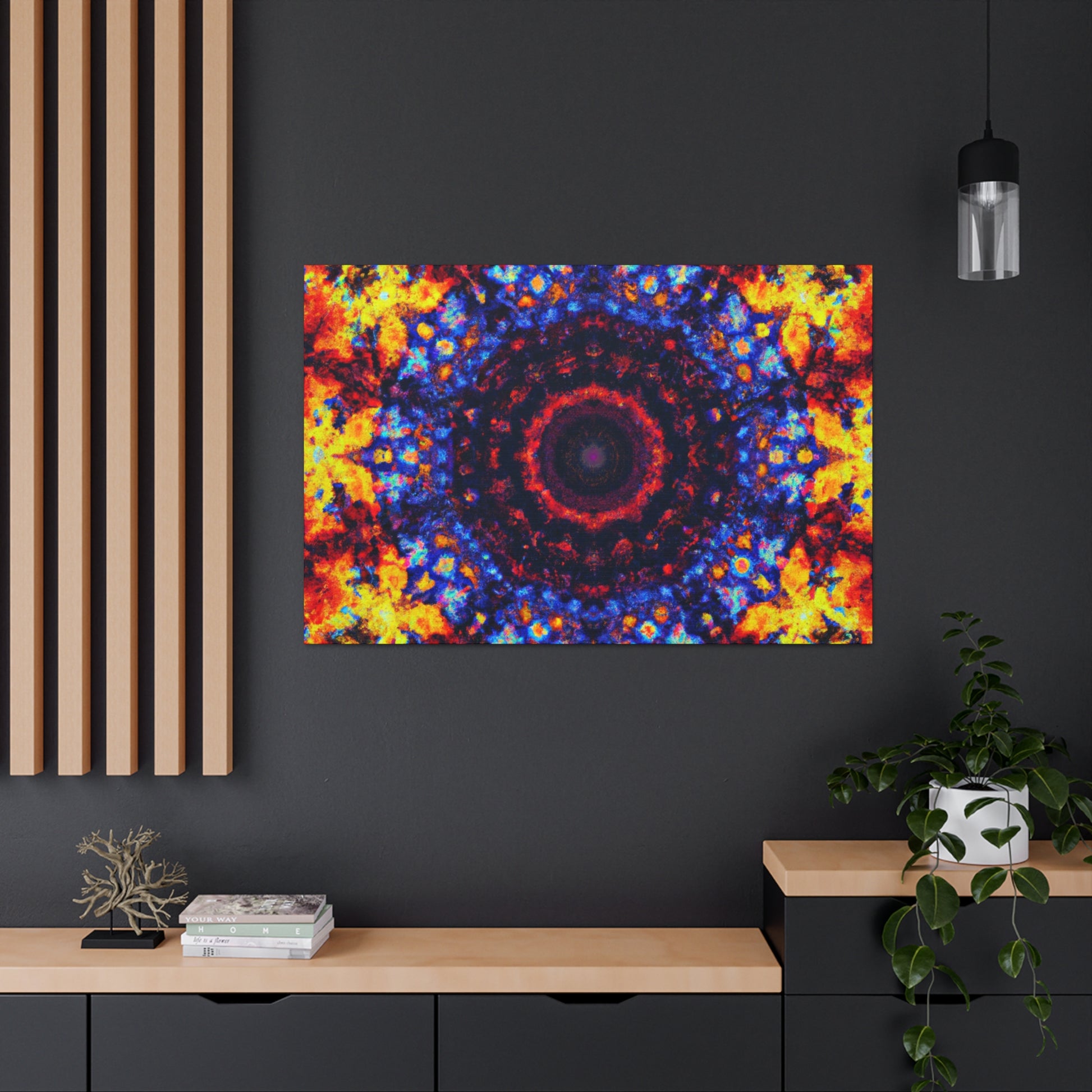 This canvas of vibrant, digital art will add a unique, abstract look to any room. Featuring bold colors and bold patterns of trippy stars with kaleidoscope symmetry, this digital art will bring life into any room, providing HD clarity that will brighten any occasion. #trippydigitalart #kaleidoscopecanvas #abstractart #digitalart #vibrantcolors #HDclarity #uniquedesign #canvasmurals #boldcolors #trippystars #boldpatterns