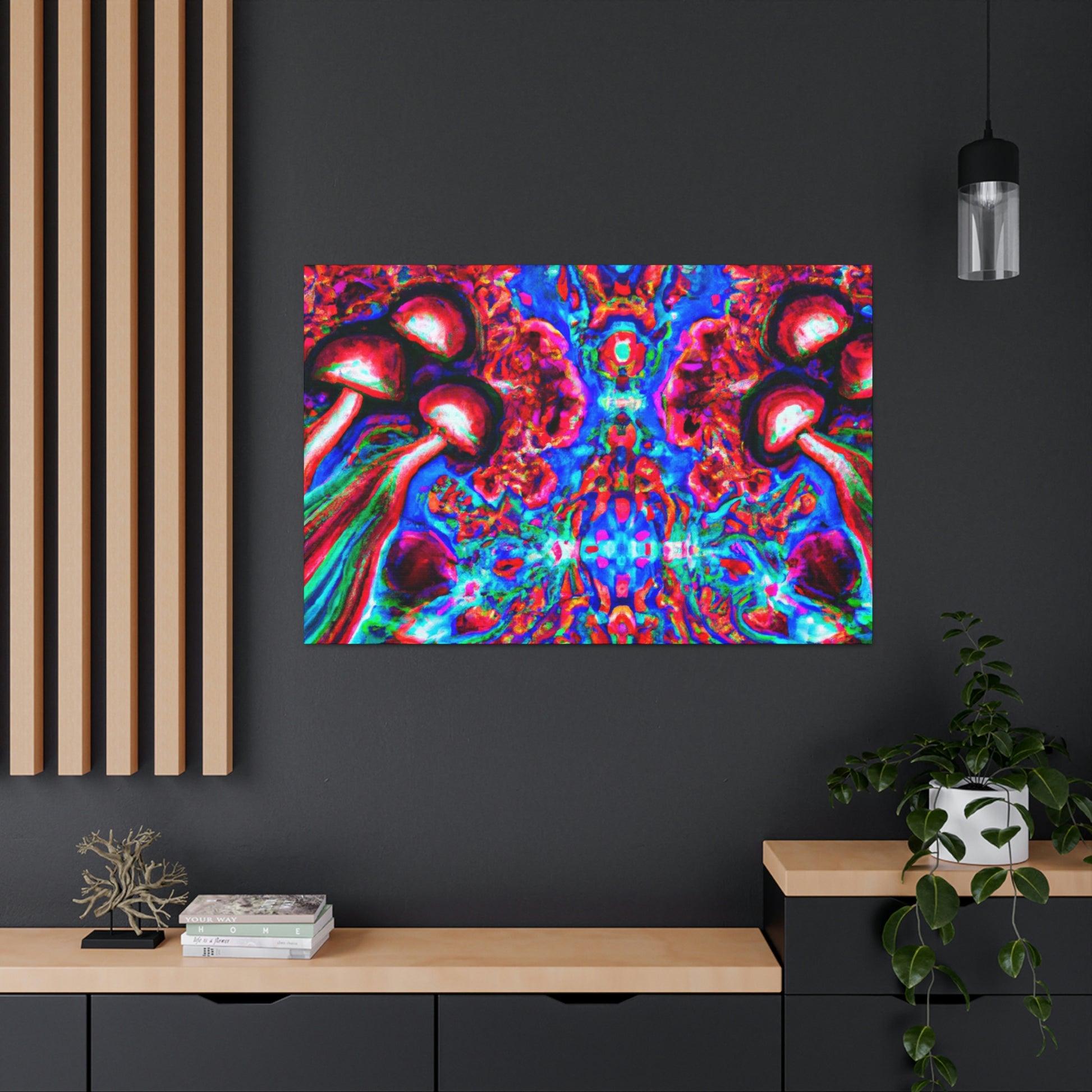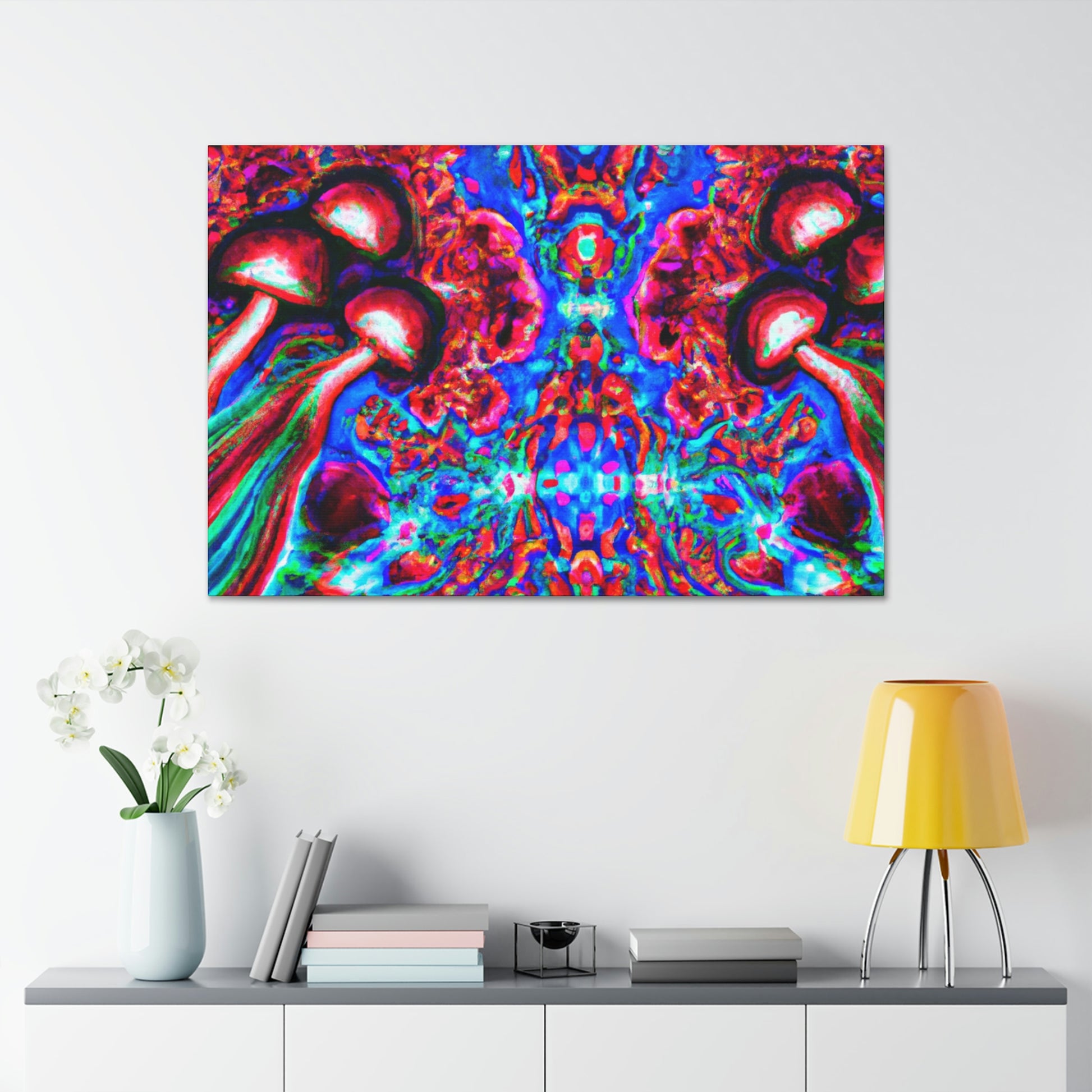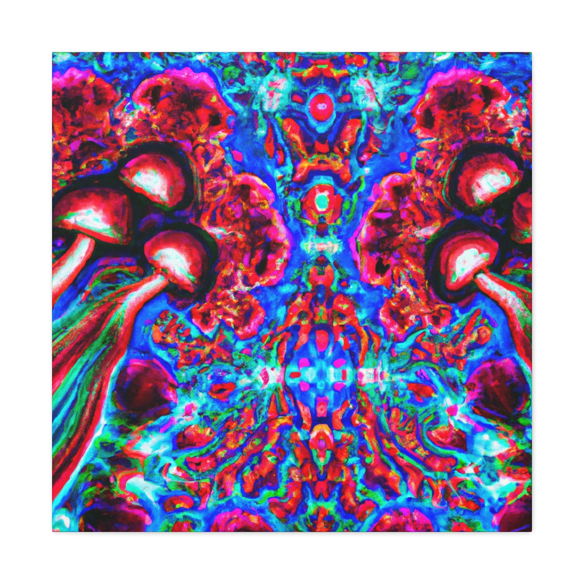 This canvas featuring trippy mushrooms, kaleidoscope patterns, abstract art and digital inks, packs a vibrant punch with its swirling details and unexpected color choices. The 3D angled lines make this art piece stand out and create a sense of dynamism. This eye-catching canvas is sure to be a conversation starter and bring some vibrant energy to your home. #trippy #mushroom #kaleidoscope #abstract #digitalart #vibrant #color #3dlines #wallsizedart #statementpiece #modernart