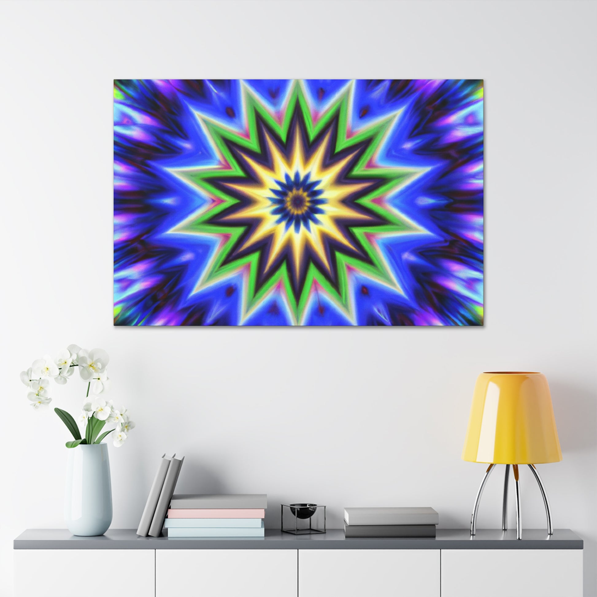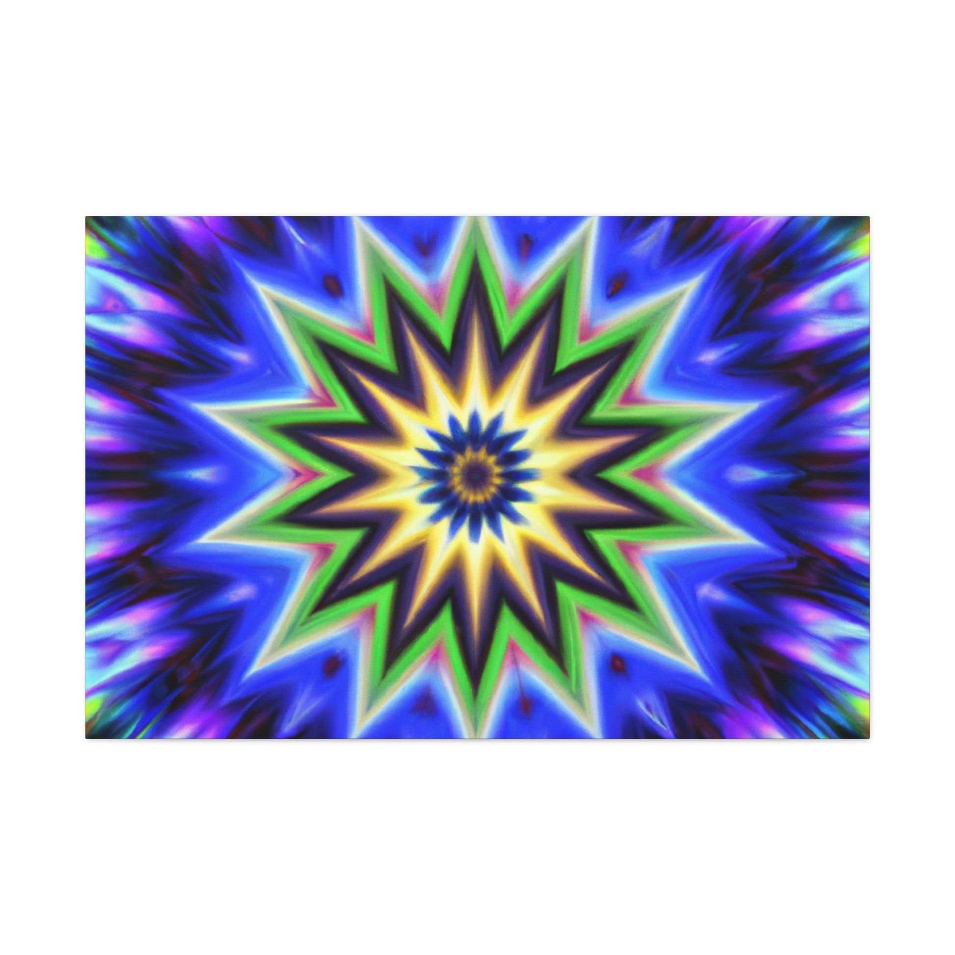 This vibrant Trippy Stars canvas is perfect for adding a captivating touch to any décor. This abstract, symmetrical digital art features kaleidoscope details and vivid hues. Printed on high-quality canvas, this bold artwork is sure to stand out. #trippystars #kaleidoscope #abstractart #digitalart #vibrantcolors #HD #symmetrical #wallart #canvas #colorfulart #artdeco