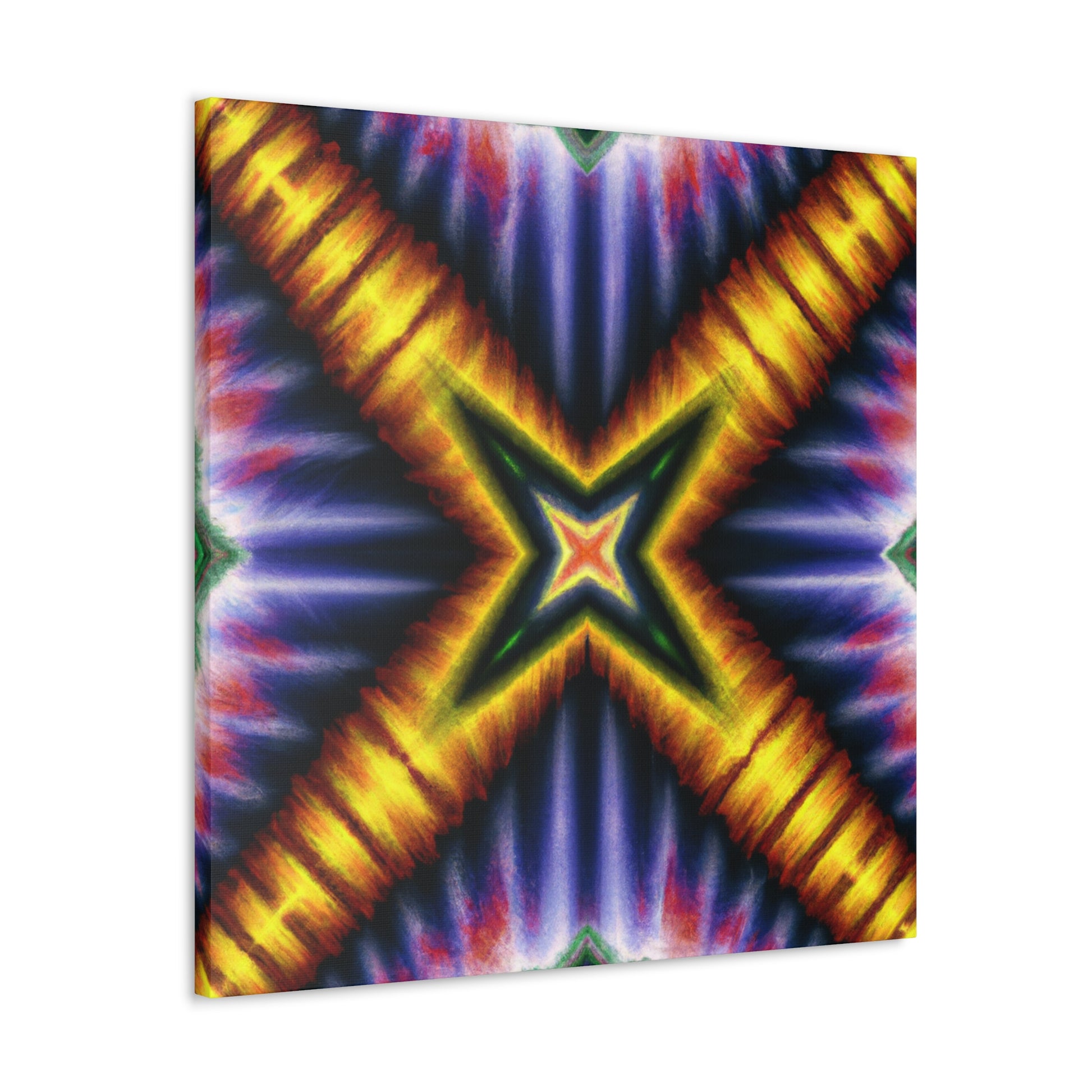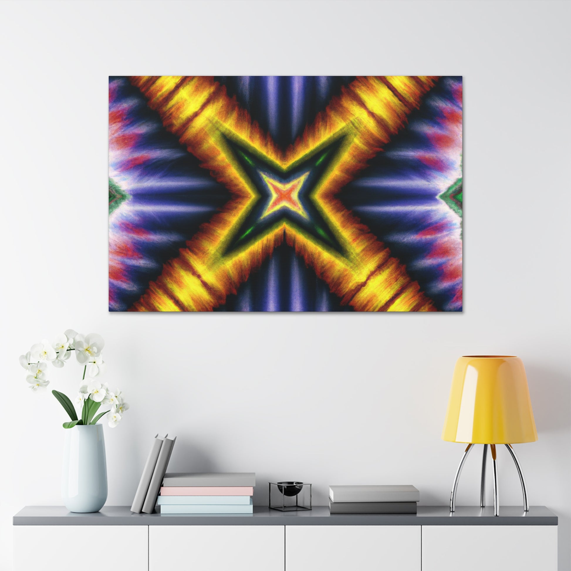 Brighten up your home with this canvas of trippy stars, kaleidoscope, abstract, digital art with vibrant colors. This HD art piece is symmetrical and will make any room come to life. With brilliant blues and yellows, this canvas creates a unique abstract vision. #Canvas #TrippyStars #Kaleidoscope #Abstract #DigitalArt #VibrantColors #HD #Symmetrical #HomeDecor #Art #Style