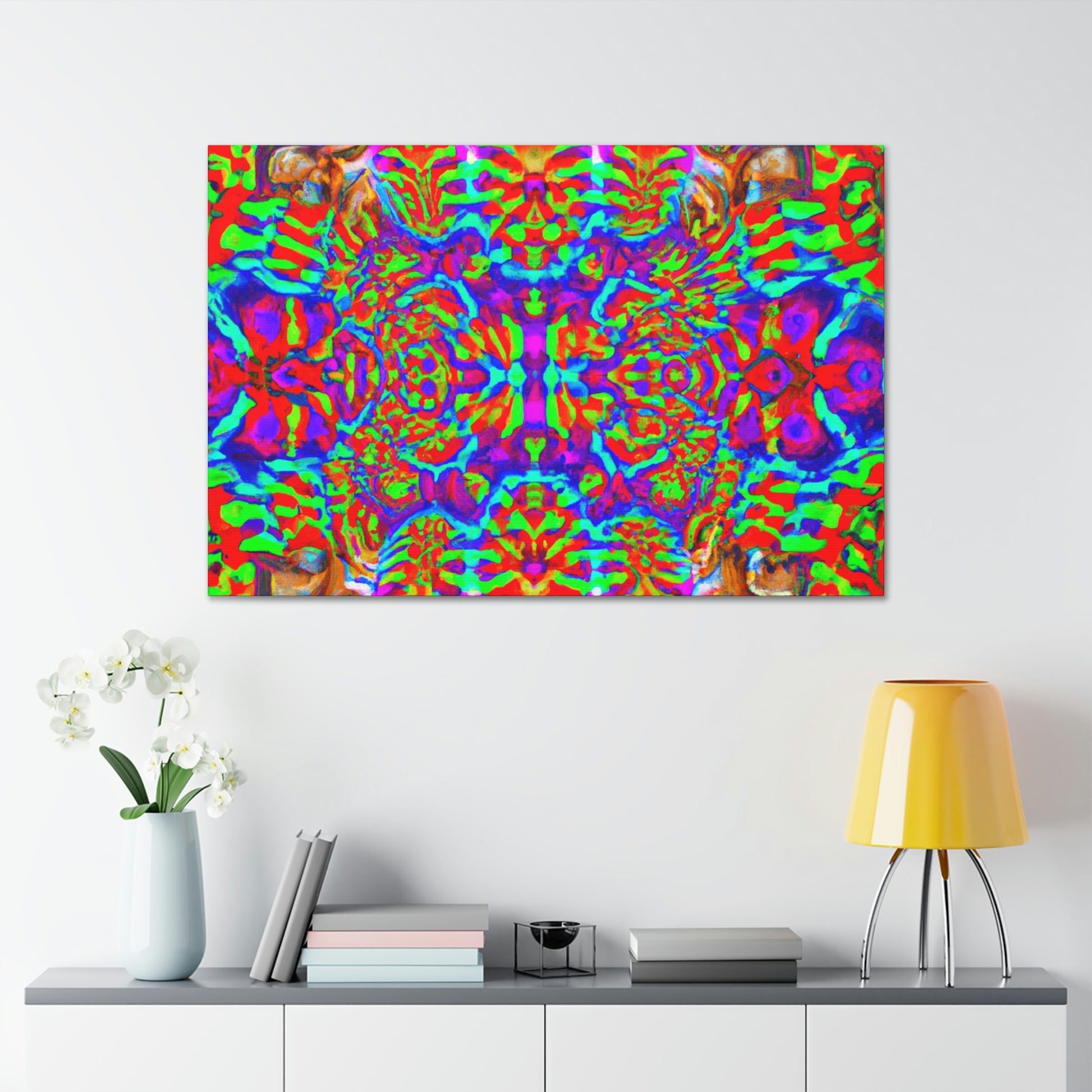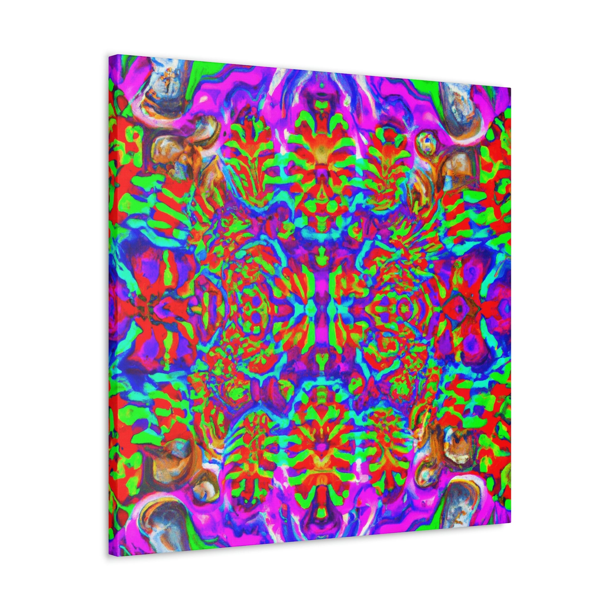 This vibrant canvas is an abstract work of art that is truly mesmerizing to look at. It features trippy mushrooms, dynamic kaleidoscope patterns, and striking 3D lines. The bold, digital colors blend together to create a unique and captivating piece of artwork. Hang it up to bring a stylistic edge and sense of creativity to any space! #abstractart #artforsale #canvasprint #mushrooms #colorfulart #vibrantart #digitalart #3Dlines #kaleidoscope #trippyart #perspectiveart