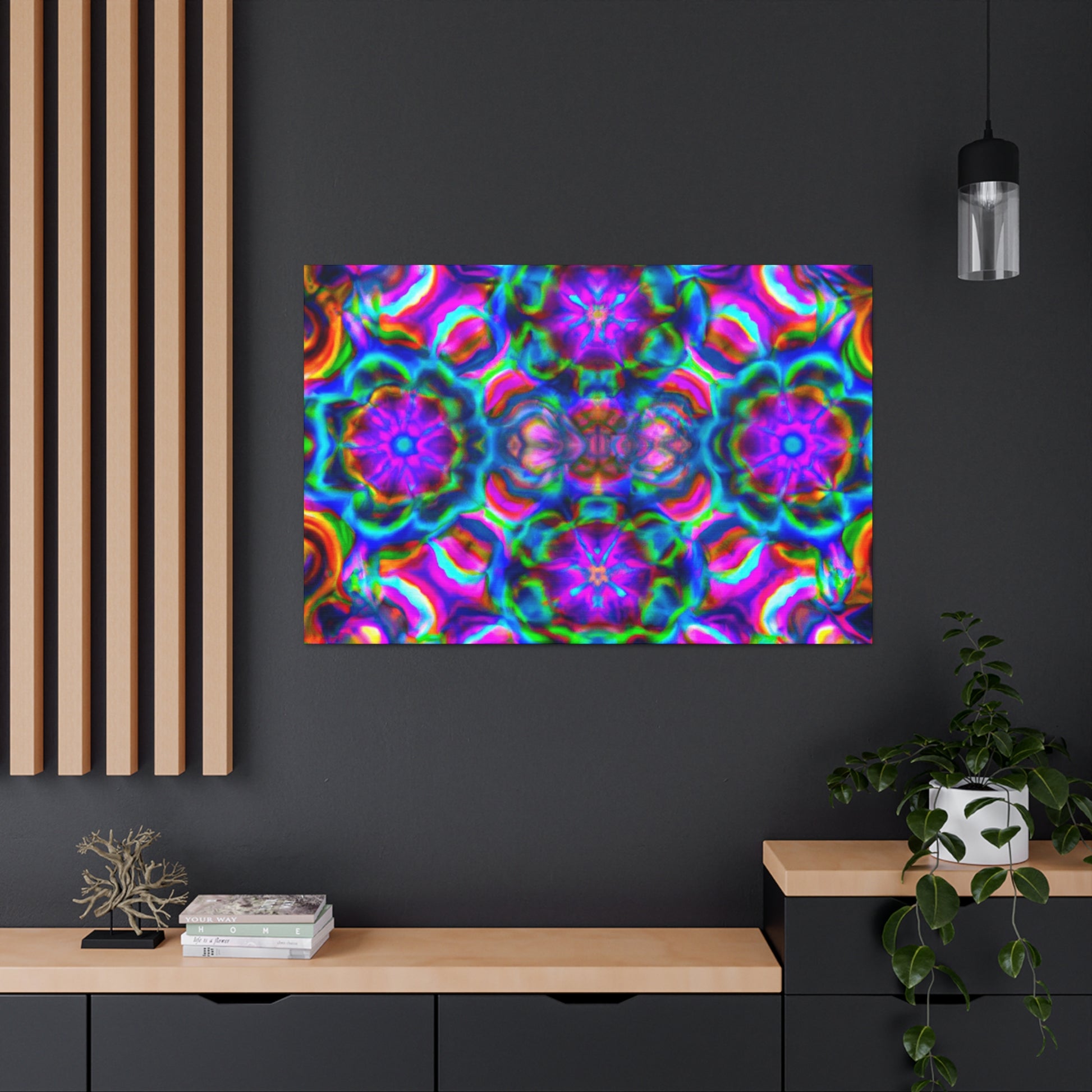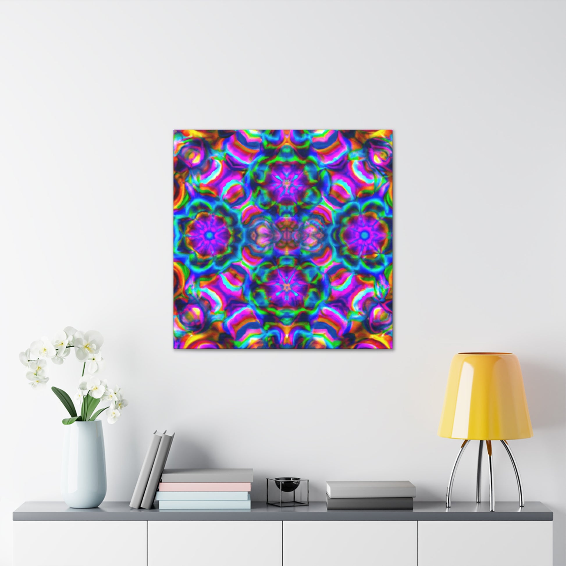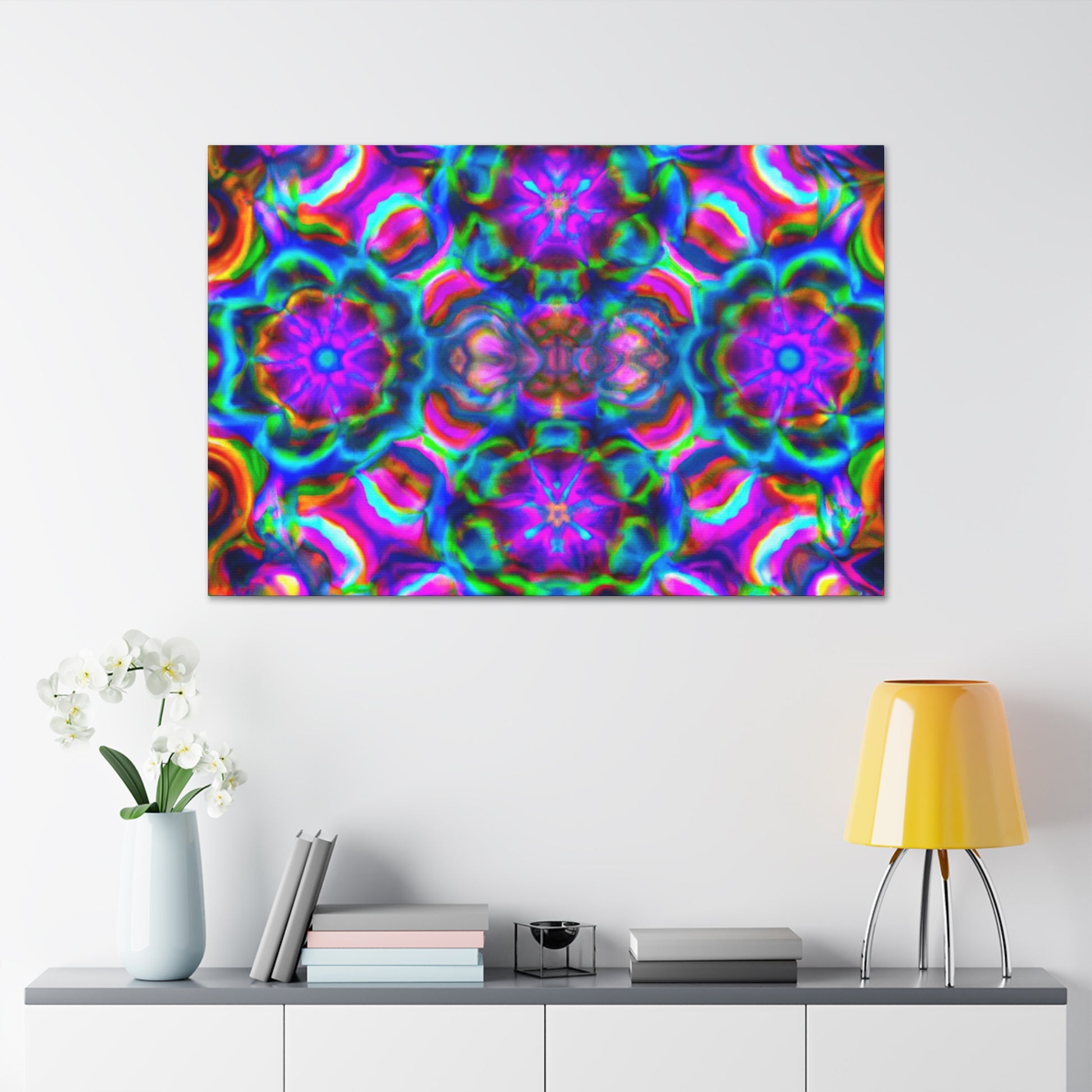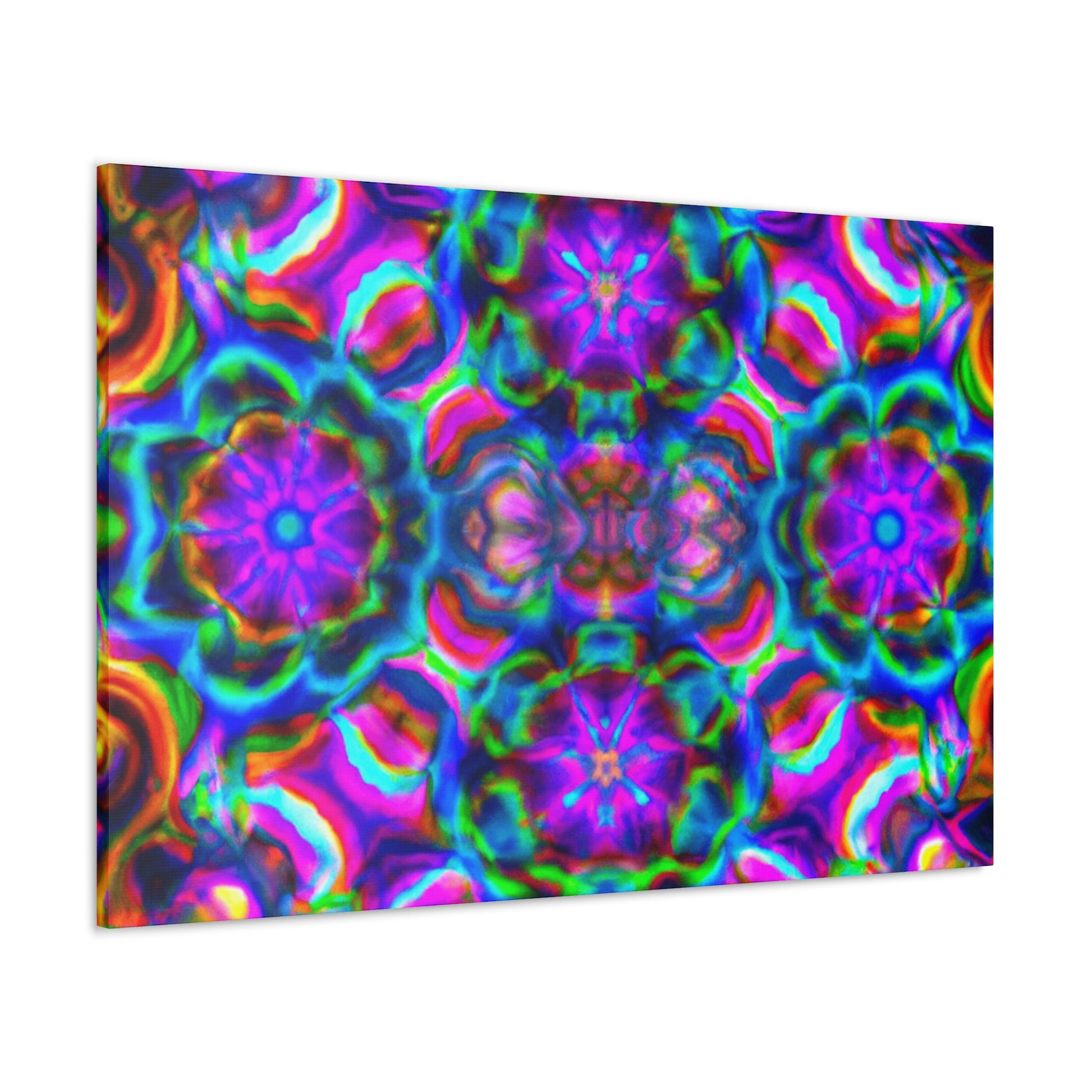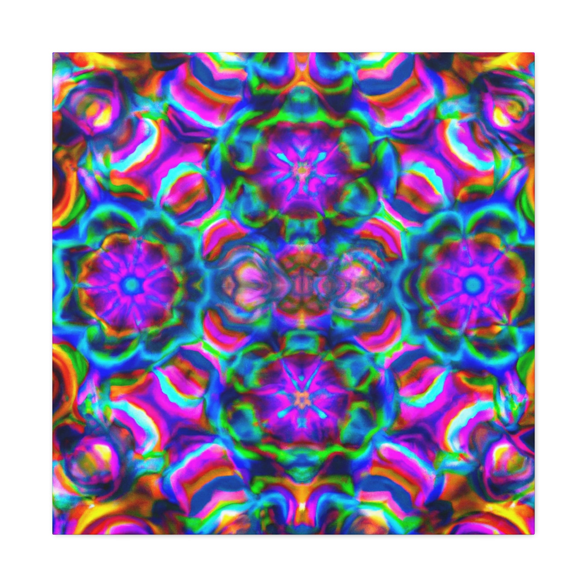 This original abstract digital art canvas is truly unique with vibrant colors, 3D lines, and a trippy mushroom kaleidoscope! Large and bold, it'll make a statement in any décor. Our canvas is printed on premium durable quality and is sure to last. Hang it and enjoy the captivating effects of this breathtaking piece of artwork. #canvas #originalart #trippy #mushroom #kaleidoscope #abstract #digitalart #vibrant #colorful #3Dlines #decor