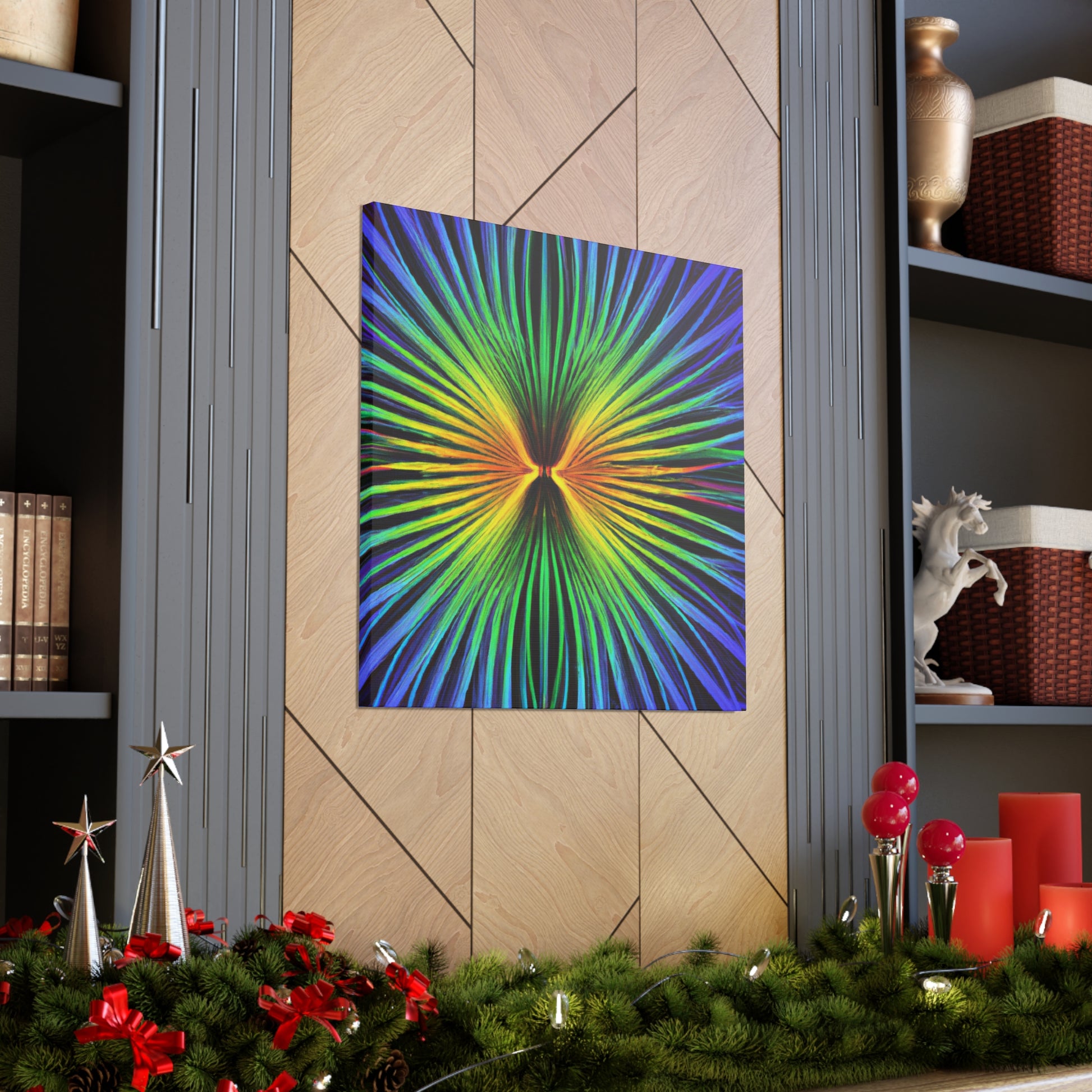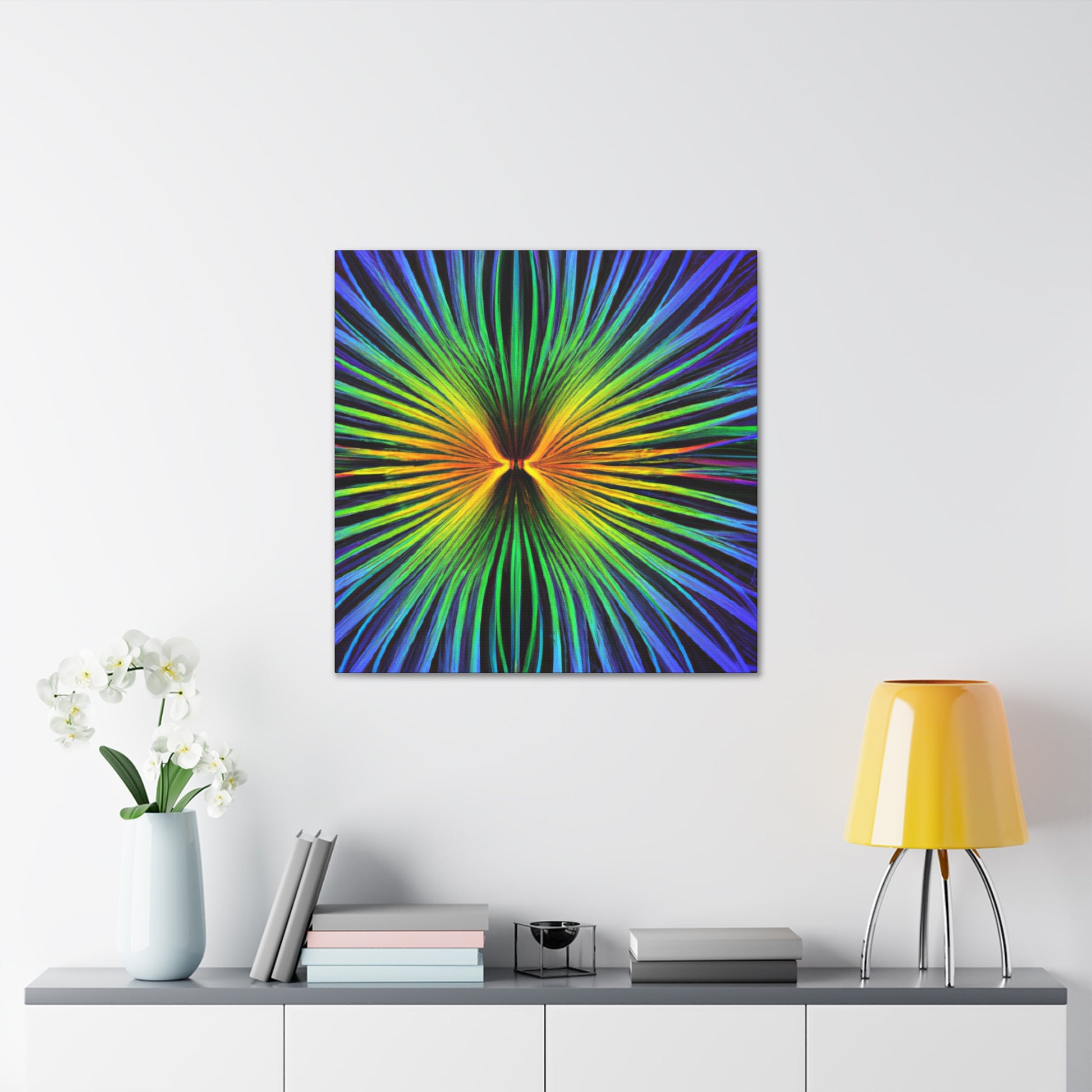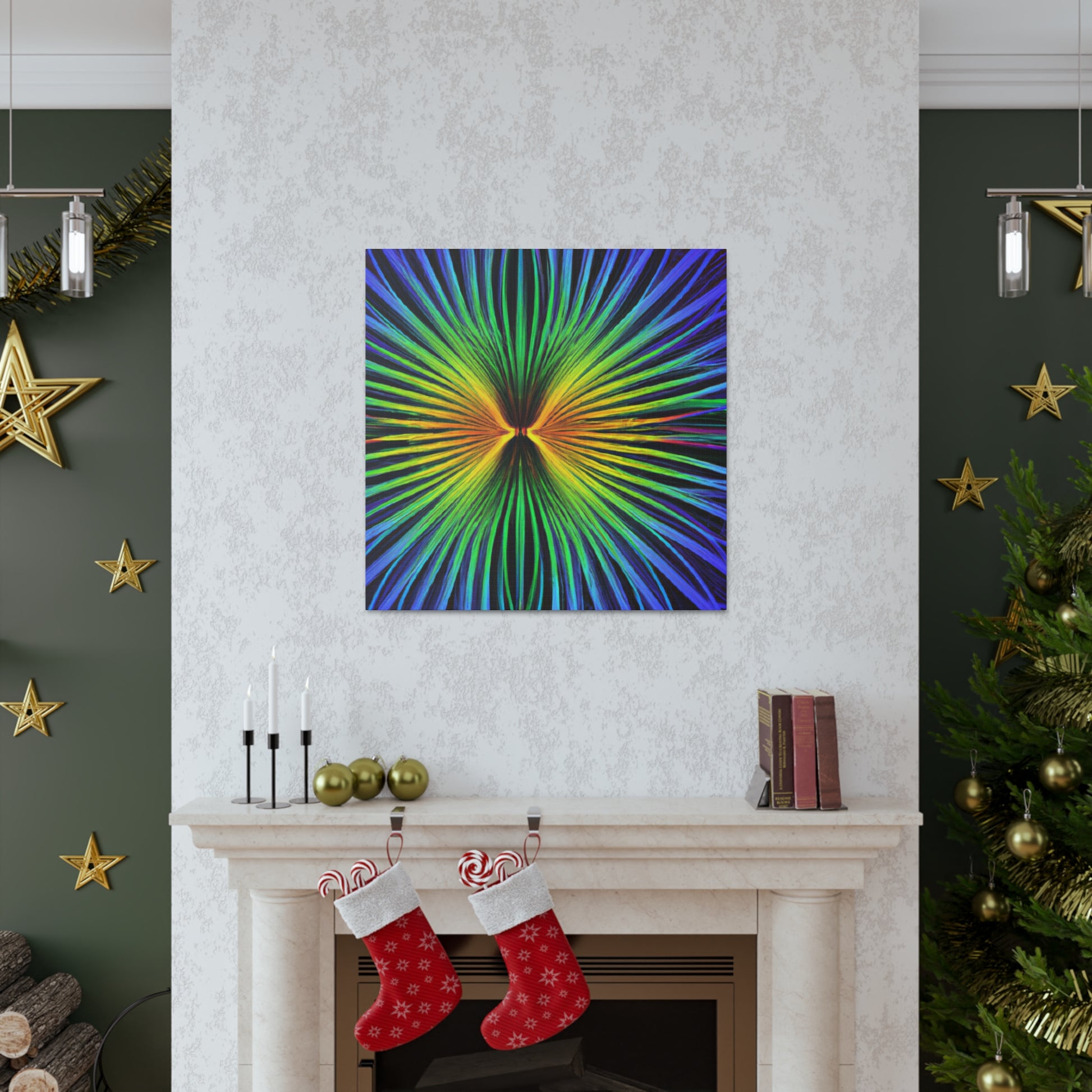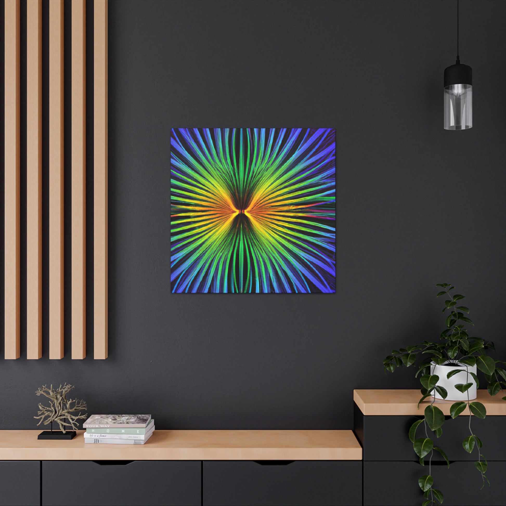 This canvas of vibrantly colored, trippy geometric palm leaves, kaleidoscope, abstract, and digital art is a feast for the eyes! With its 3D lines, fractal patterns and the energy of the colors, it will transport you to a realm of beauty and imagination. Hang this artwork in your space and watch it bring life and energy to the room. #abstractart #fractalart #palmleaves #artwork #digitalart #kaleidoscope #vibrantcolors #3Dlines #decorativeart #palmleaves #trippy
