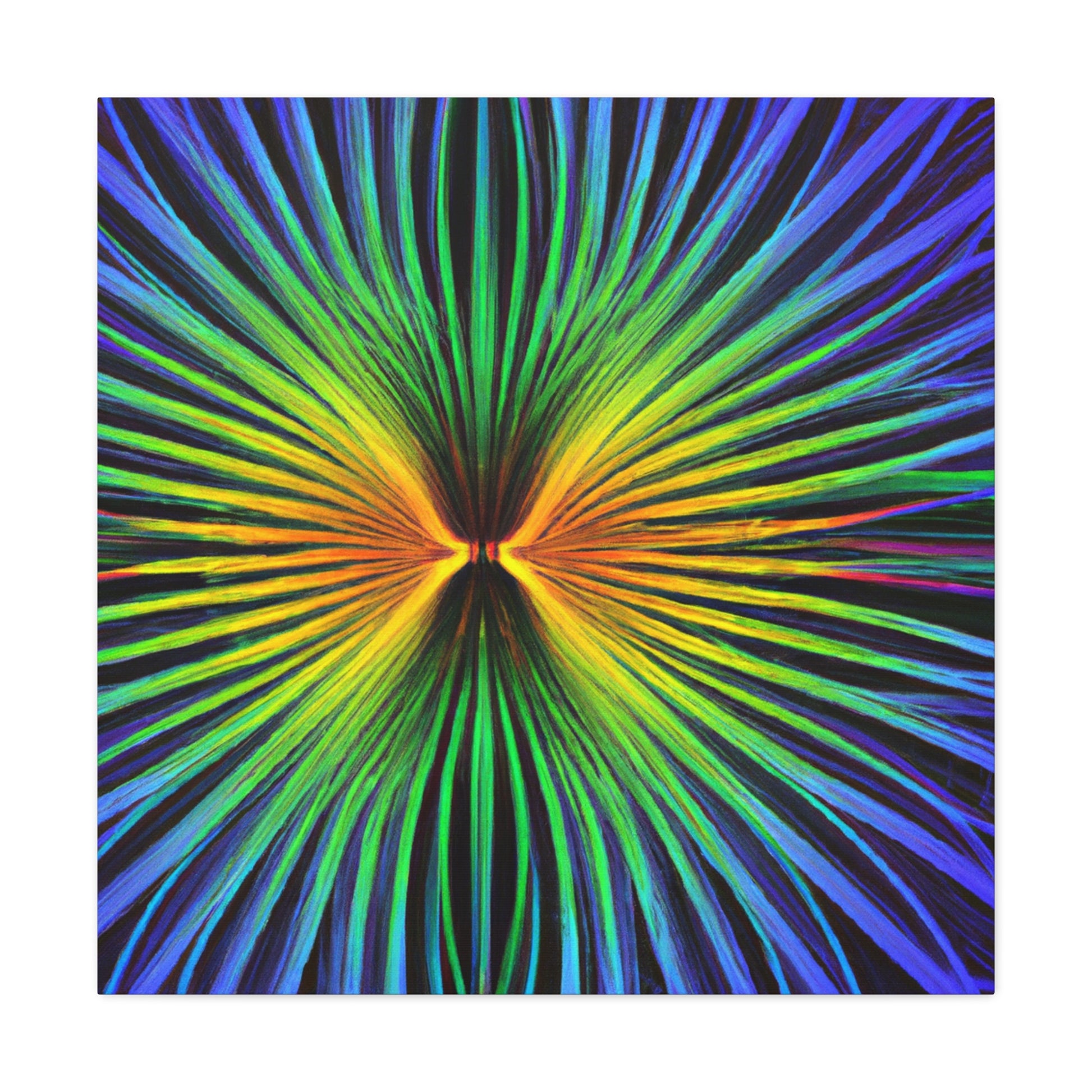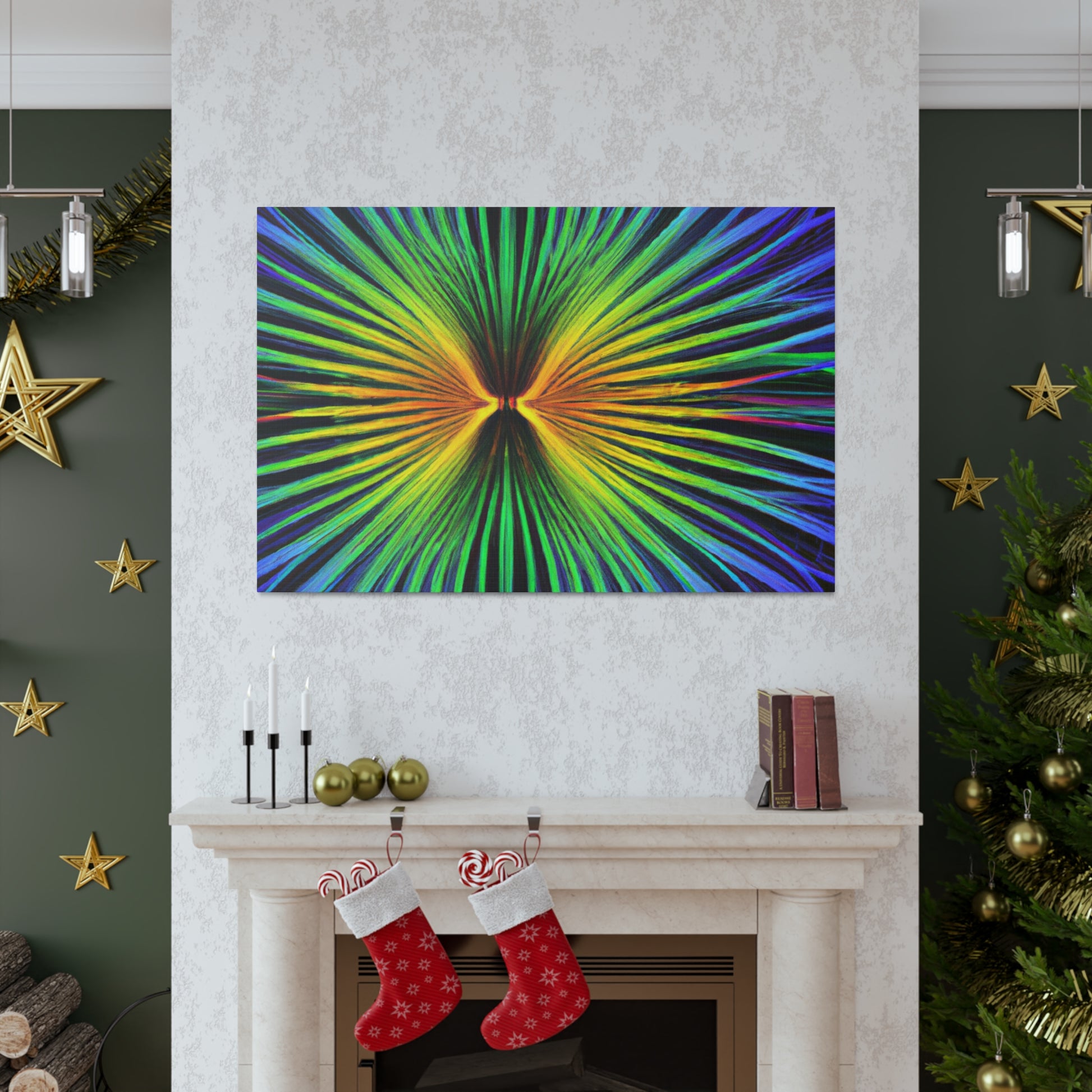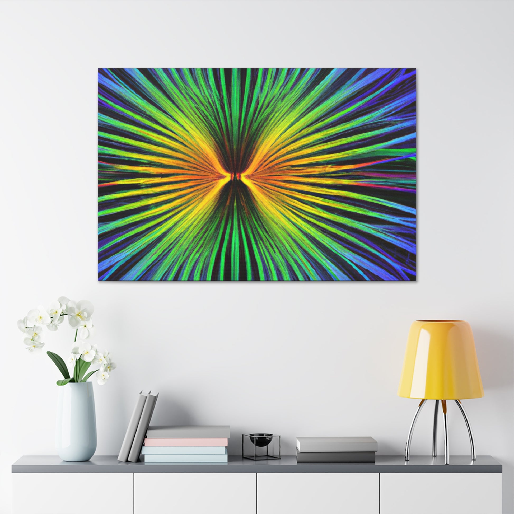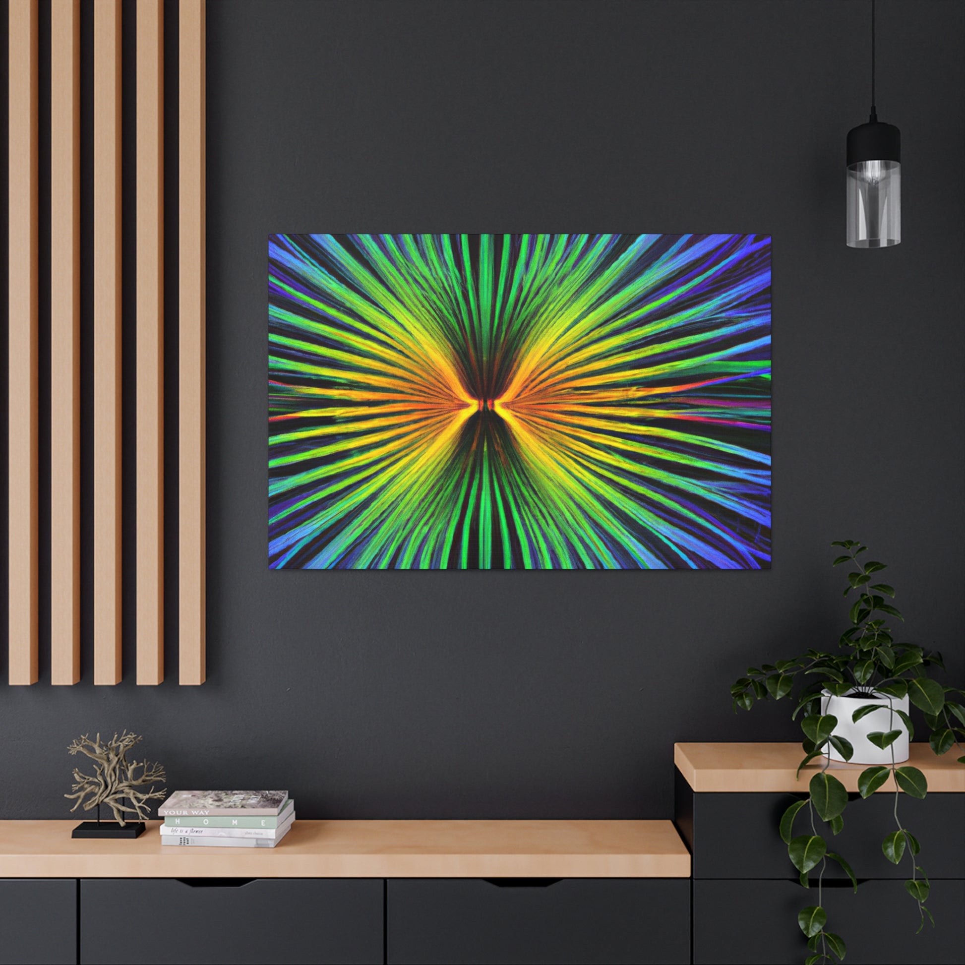 This canvas of vibrantly colored, trippy geometric palm leaves, kaleidoscope, abstract, and digital art is a feast for the eyes! With its 3D lines, fractal patterns and the energy of the colors, it will transport you to a realm of beauty and imagination. Hang this artwork in your space and watch it bring life and energy to the room. #abstractart #fractalart #palmleaves #artwork #digitalart #kaleidoscope #vibrantcolors #3Dlines #decorativeart #palmleaves #trippy