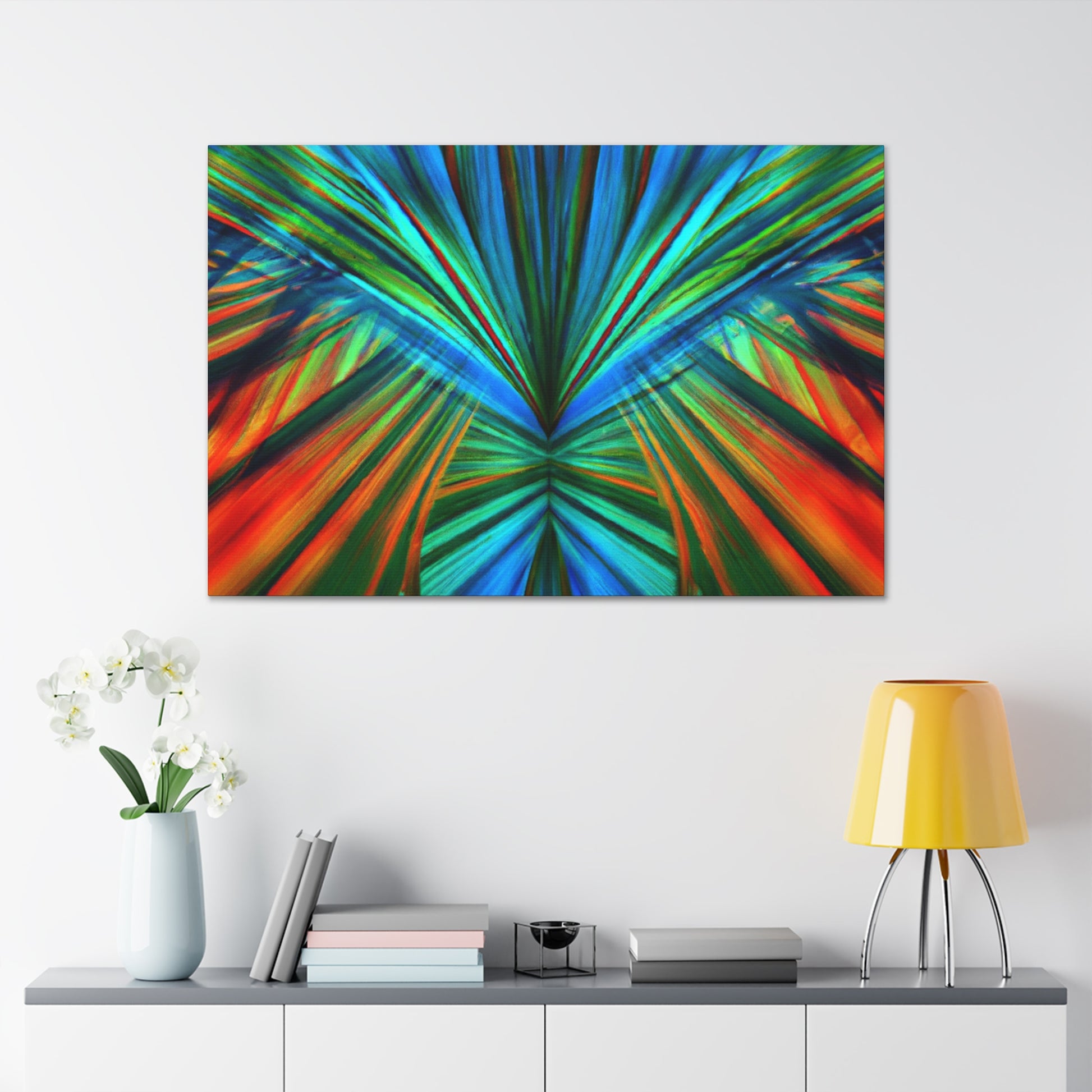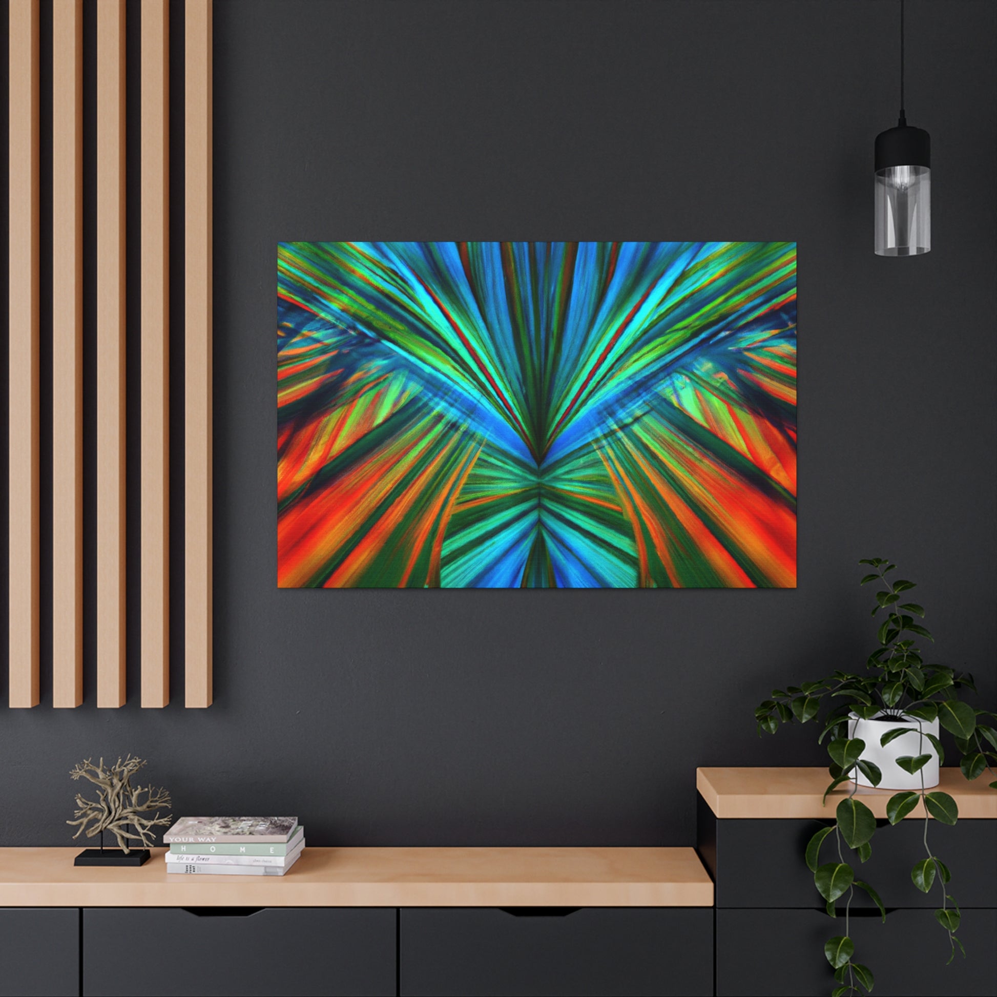 This vibrant canvas of Trippy Geometric Palm Leaves, Kaleidoscope, Abstract, Digital Art, 3D Lines, and Fractal is an eye-catching and unique piece of artwork. Enjoy the spectacle of a kaleidoscope, declaring your impressive artistic vision to the world. The mix of abstract, geometric shapes, vibrant colors, and 3D lines creates an entrancing effect that is bound to draw attention. #DigitalArt #Kaleidoscope #Abstract #TrippyGeometric #PalmLeaves #Fractal #3DLines #VibrantColors #UniqueArt #CanvasArt #ArtisticVision