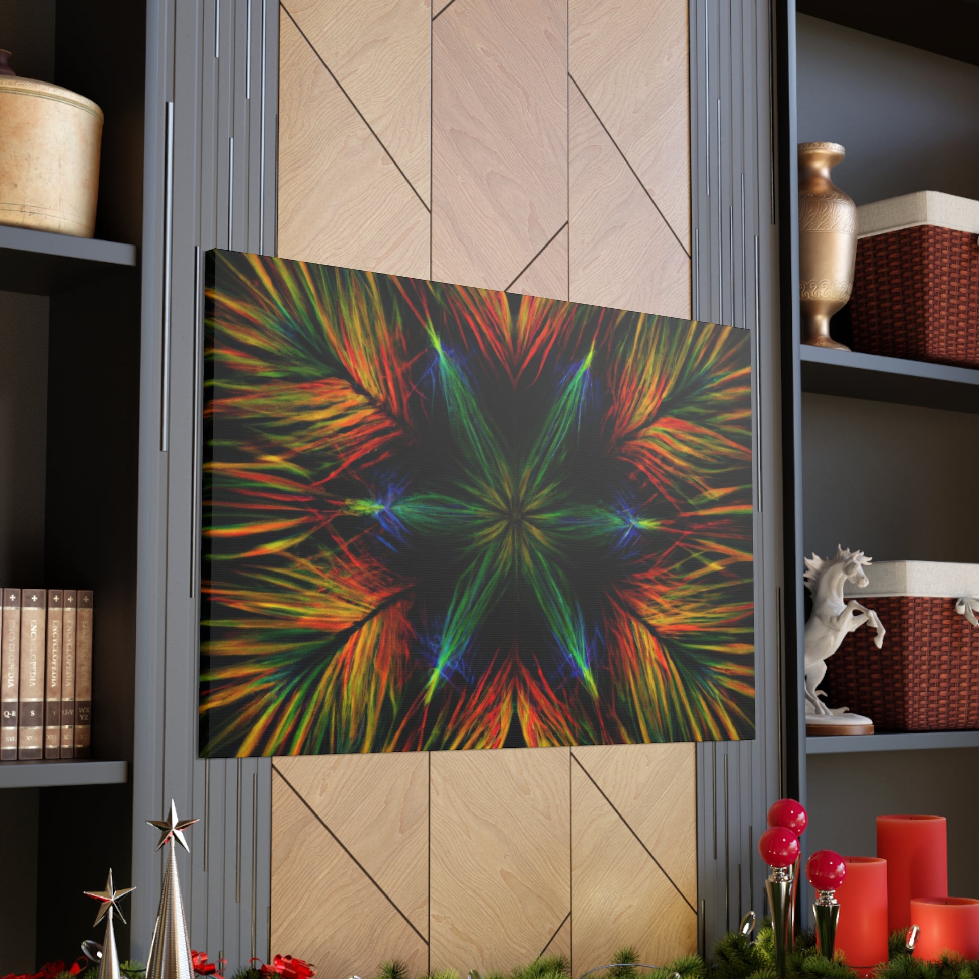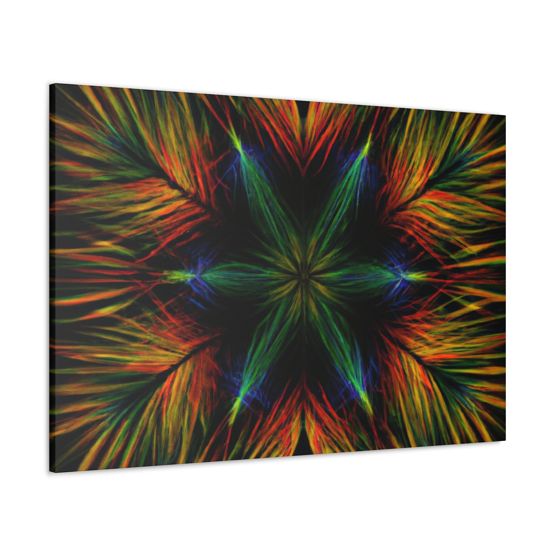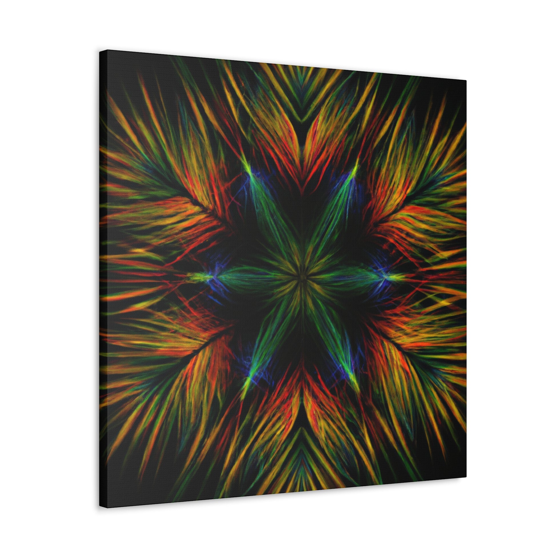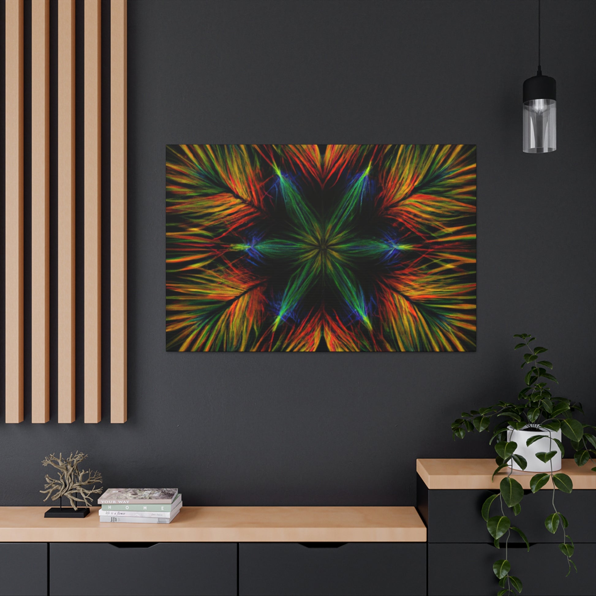 This canvas features a stunning psychedelic design of geometric palm leaves, 3D lines and geometric shapes creating a kaleidoscope of vibrant colors. Abstract art, digital art and fractal elements come together to deliver an amazing visual experience in any space. With its remarkable blend of colors and mesmerizing shapes, this canvas will create an inspirational atmosphere. #digitalart #abstractart #fractals #canvasart #kaleidoscope #psychedelicart #geometricart #3dlines #vibrantcolors #trippyart #futuristicart