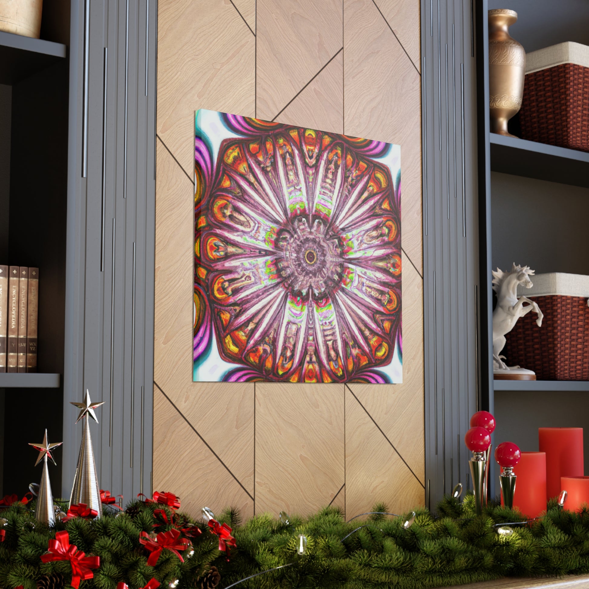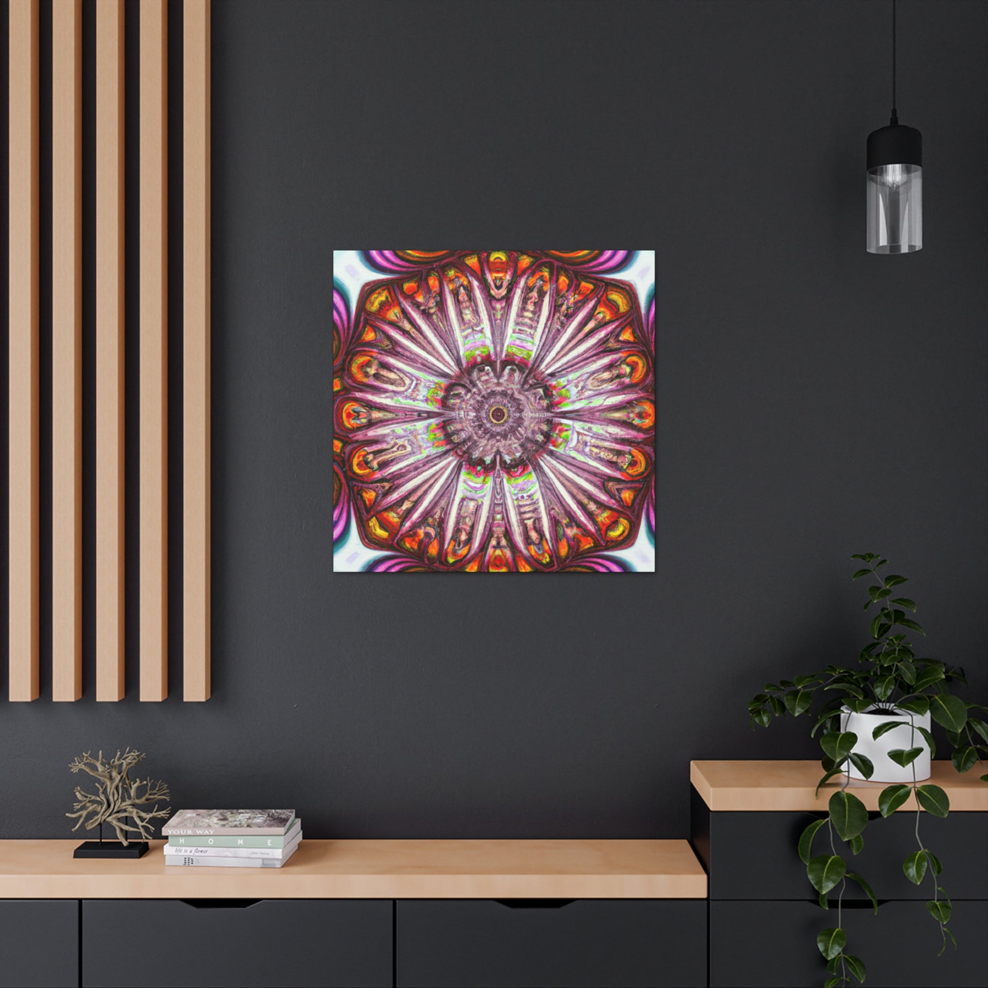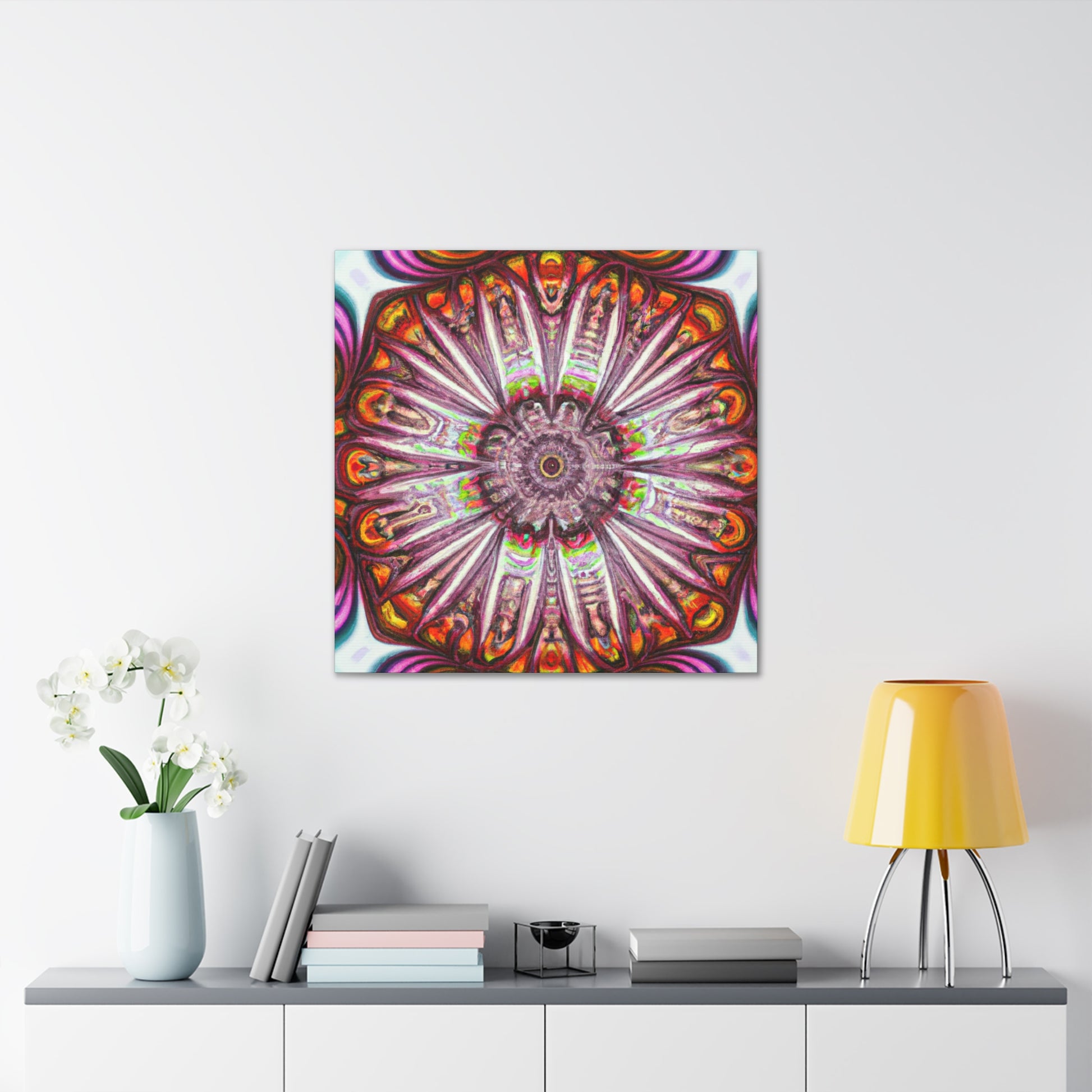 This abstract, digital canvas art displays vibrant colors through Trippy mushrooms, kaleidoscope, and 3D lines. Create a unique atmosphere in your home with this beautiful artwork. This eye-catching decor piece will bring a modern, yet creative side to any space! #abstractart #DIGITALART #3DLINES #VIBRANTCOLORS #KALEIDOSCOPE #TRIPPYMUSHROOMS #ARTDECOR #INTERIORDESIGN #ABSTRACTDESIGN #CREATIVEDECOR #INSPIRINGART