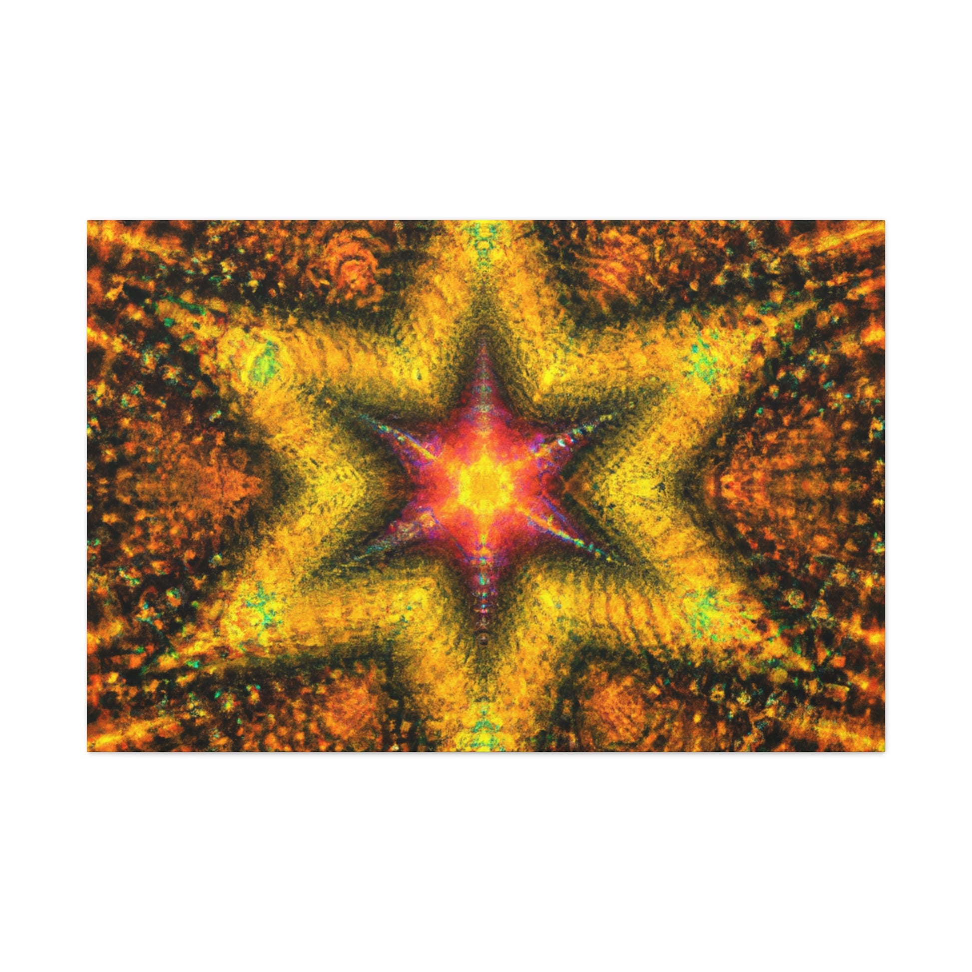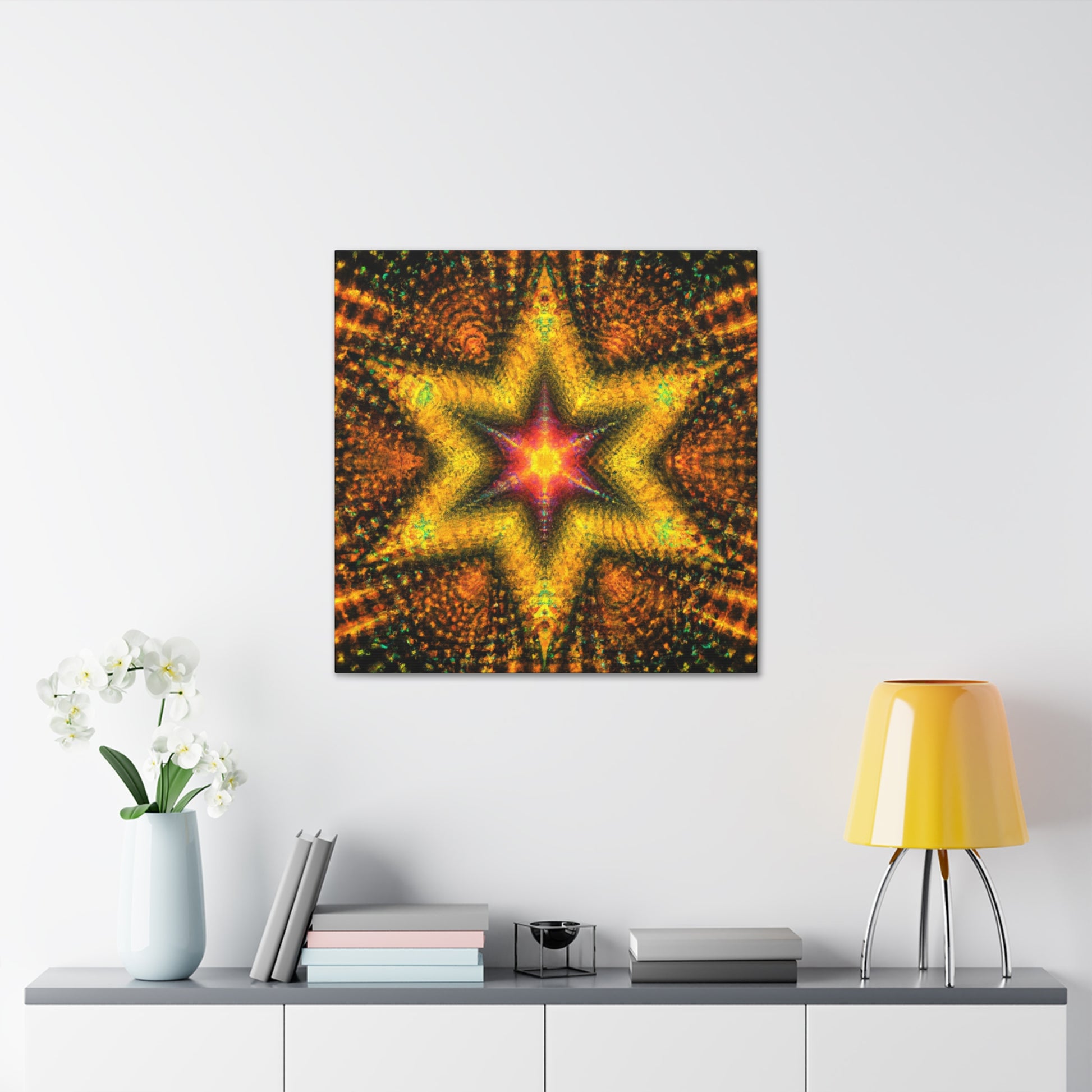 This abstract art is sure to captivate the viewer! Bright, vibrant digital colors bring out the detailed trippy stars and kaleidoscope effects. Eye-catching patterns found in this HD canvas will instantly draw the eye, making sure that this art never fails to impress. A symmetrical composition ensures this piece will be a great addition to any décor. #trippystars #kaleidoscope #abstractart #digitalart #vibrantcolors #HD #canvas #decor #symmetrical #gifts #homegoods