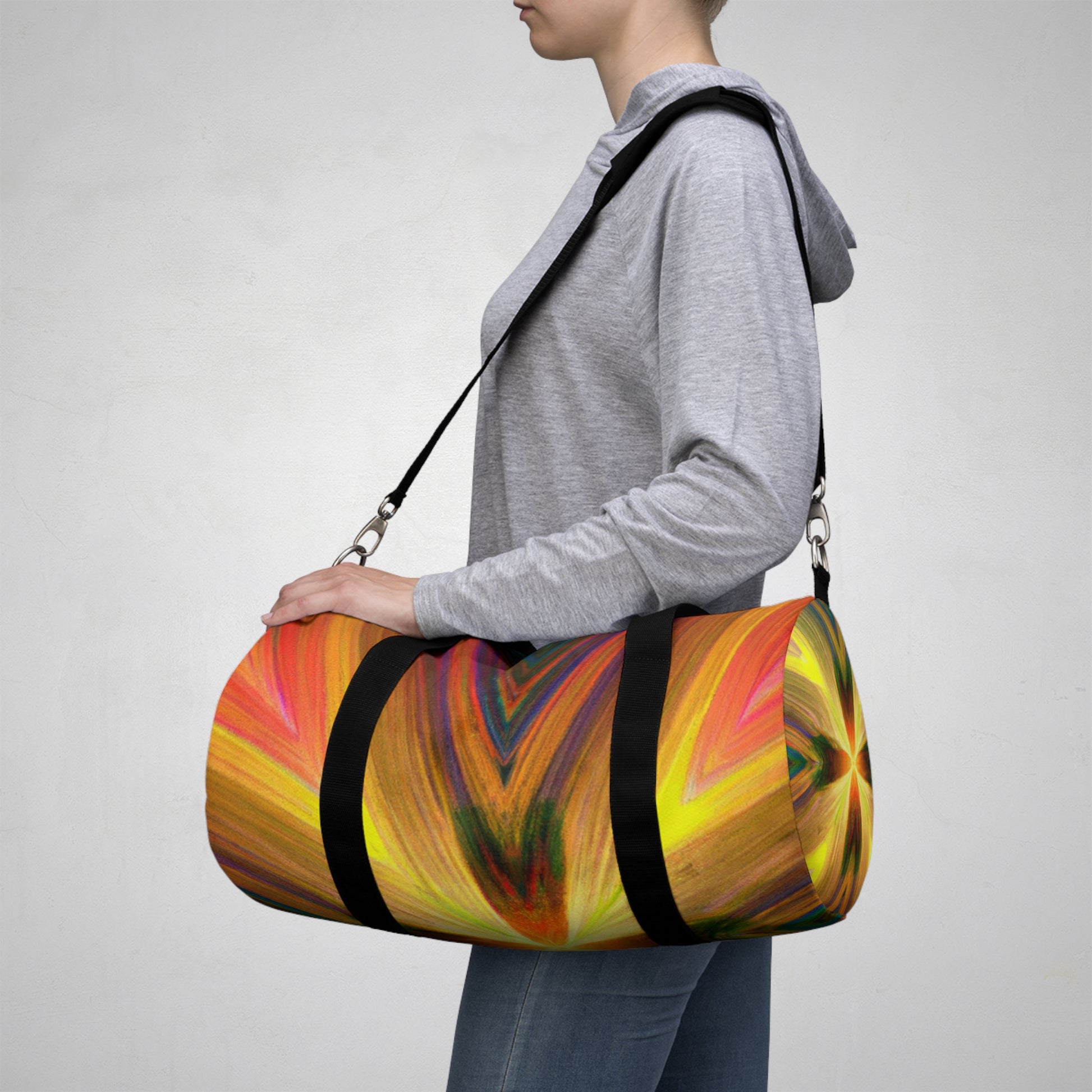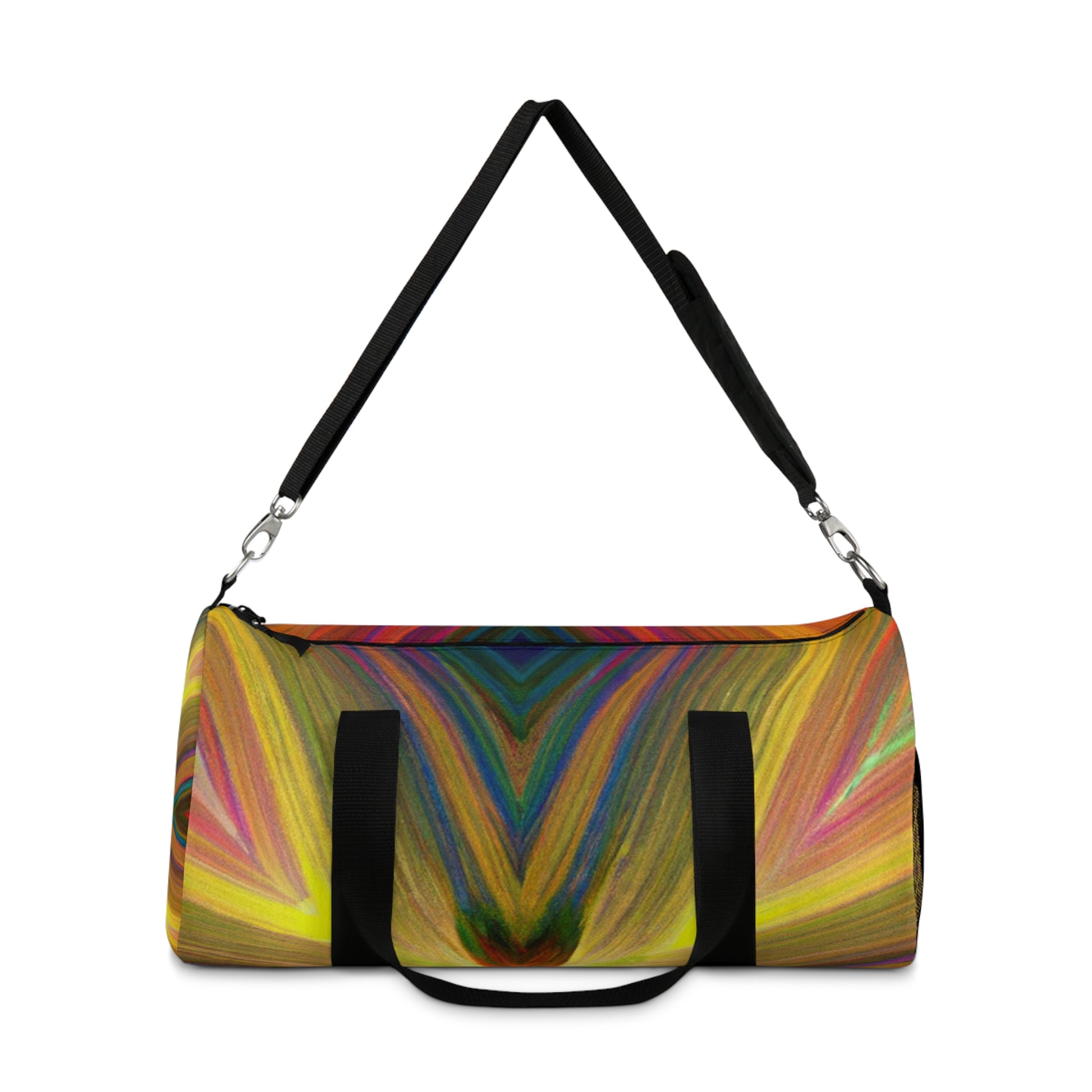 This stylish duffle bag features eye-popping trippy stars, a kaleidoscope of abstract, digital art, and vibrant colorful 3D lines that together make for a truly unique look. This duffle bag is great for any occasion and guaranteed to draw attention! #duffelbag #trendy #fashion #style #unique #unisex #digitalart #trippystar #kaleidoscope #abstract #vibrantcolors #3dlines #boho #bohostyle #bohemian #bags #accessories #travelbag #statementpiece #multicoloured #standout #shoppingbag #exciting #and #journey #travel #eye-catching #stylish #jazzy