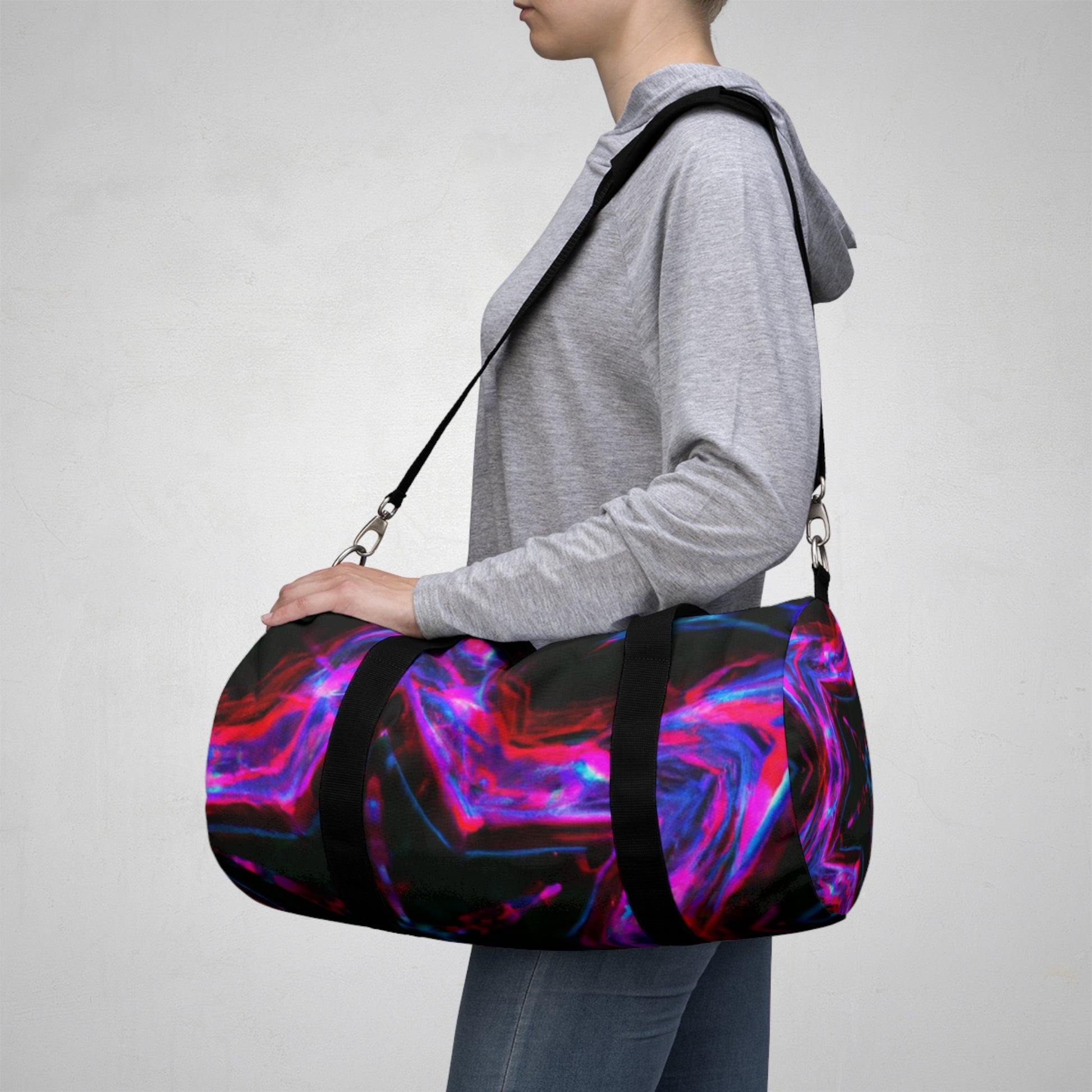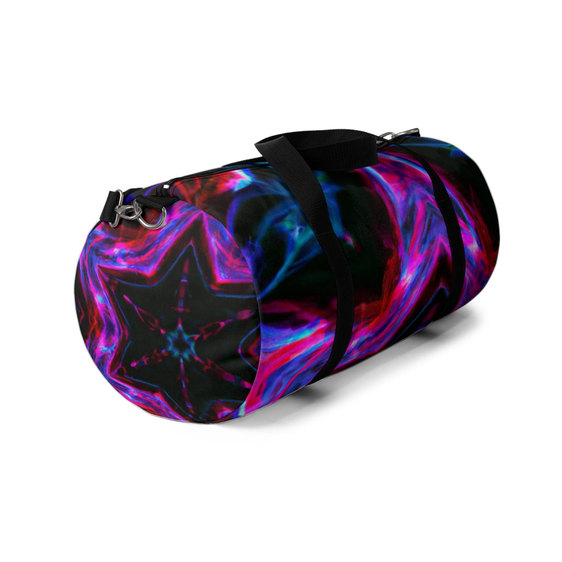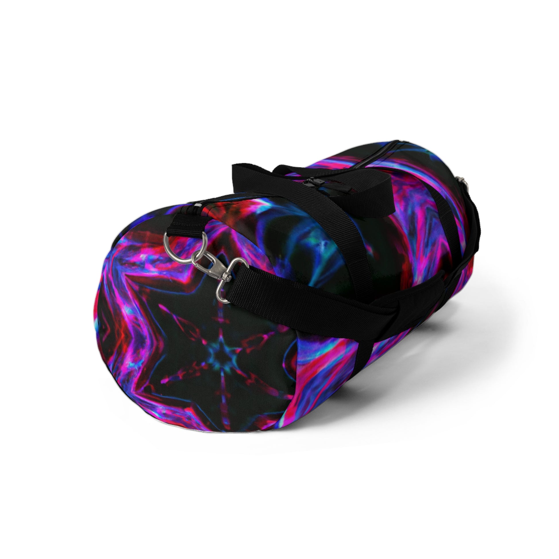 This dufflebag is all about vibrancy and boldness, featuring an eye-catching design of trippy stars, kaleidoscope, abstract, digital art, and vibrant colors accompanied by 3D lines. No other bag has a design quite like this - perfect for turning heads in all the right ways! #trippystars #kaleidoscopeart #abstract #digitalart #vibrantcolors #bagstyle #satchel #duffelbag #3Dlines #abstractprint #standoutstyle