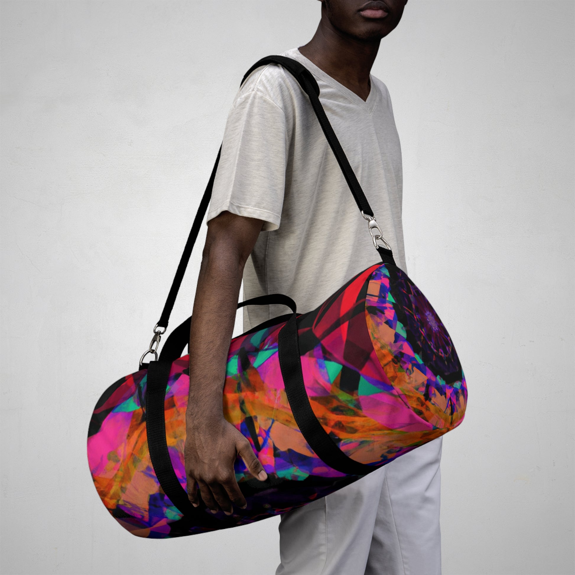 This one-of-a-kind dufflebag features a unique design that combines trippy stars, kaleidoscope, abstract, digital art, and vibrant colors, along with 3D lines to create a vivid, eye-catching design. Perfect for a stylish accent to any outfit, this bag is sure to add a touch of personality and flair to your everyday look. #dufflebag #unique #style #kaleidoscope #art #3D #digitalart #vibrant #stars #abstract #outfit #trippy #bag #fashionable #personalized #modern #creative #accessories #style #sporty #baglife #accessorize #statementpiece #streetstyle #fun #hipster #3Dlines #kaleidoscopeedesign #trendy #wowfactor