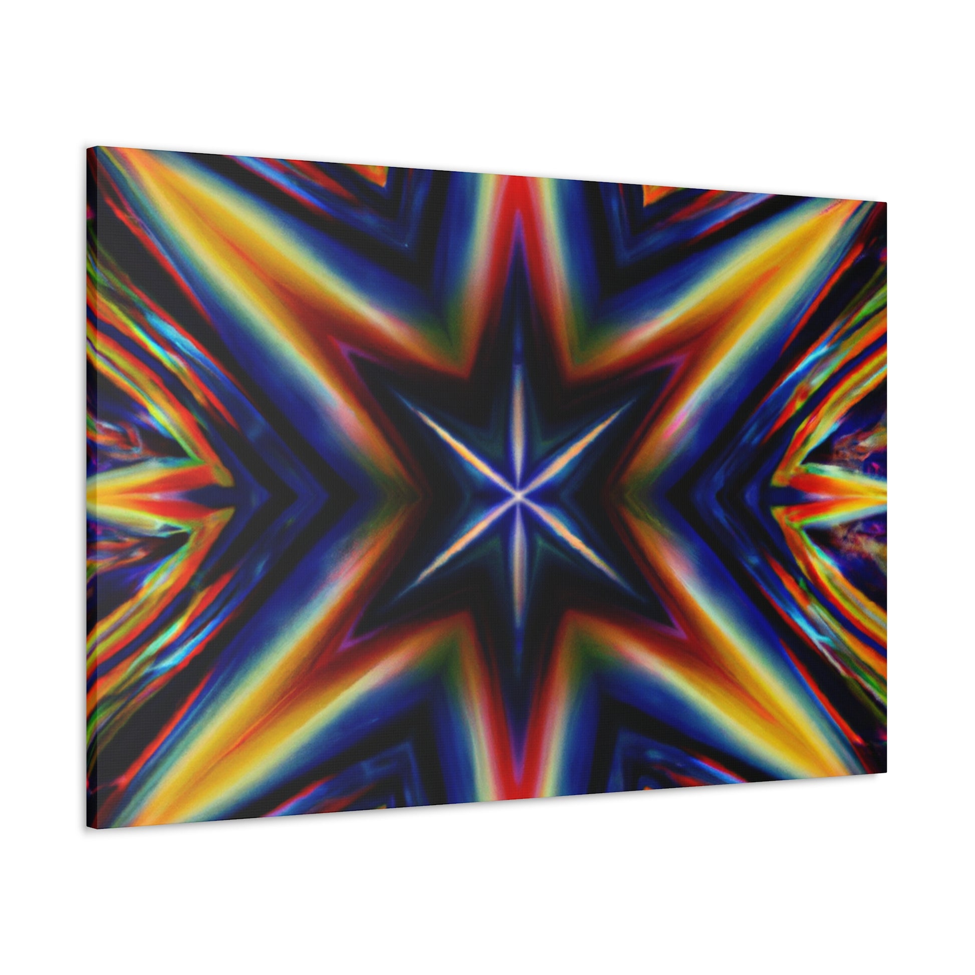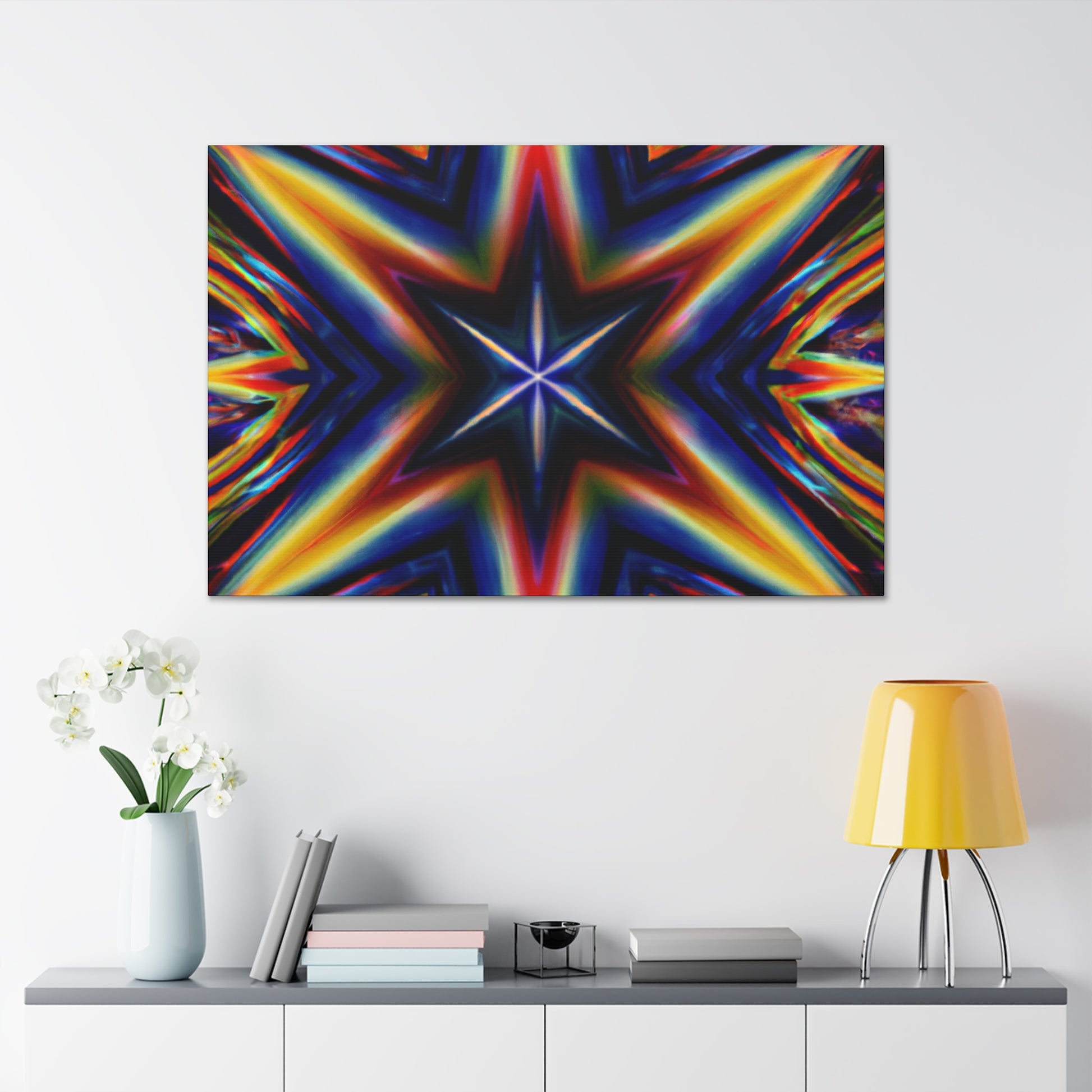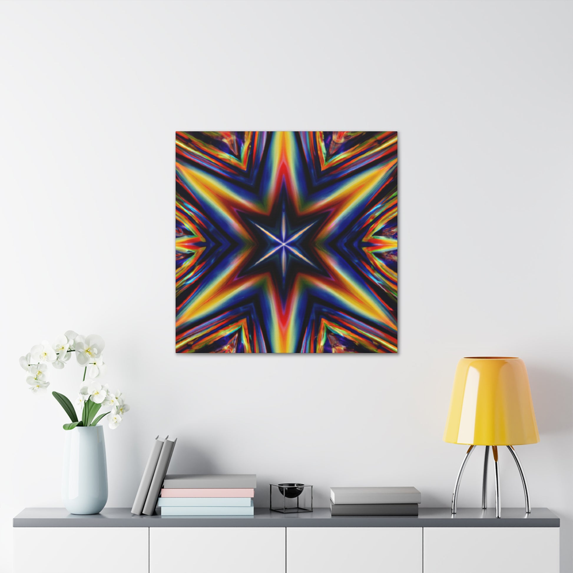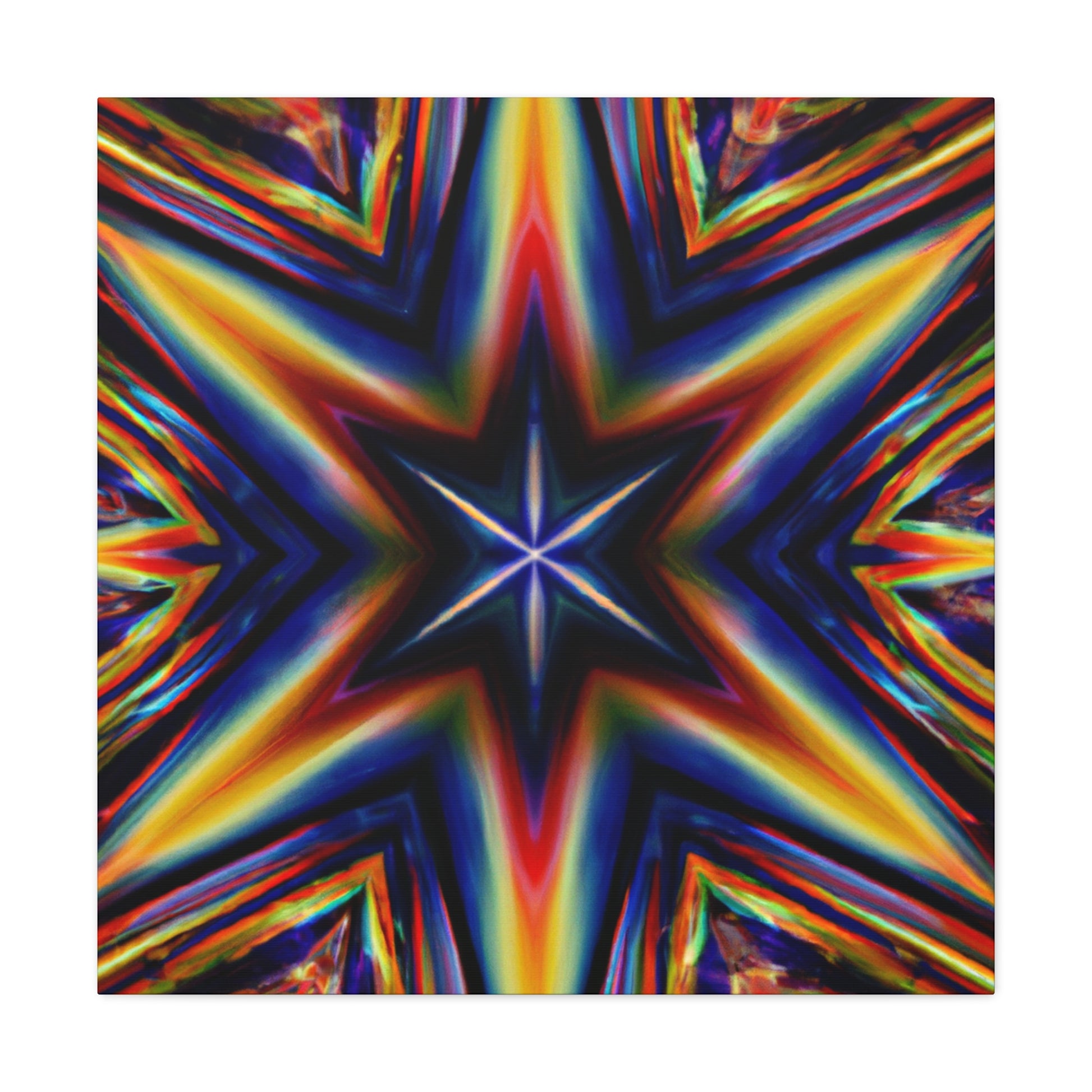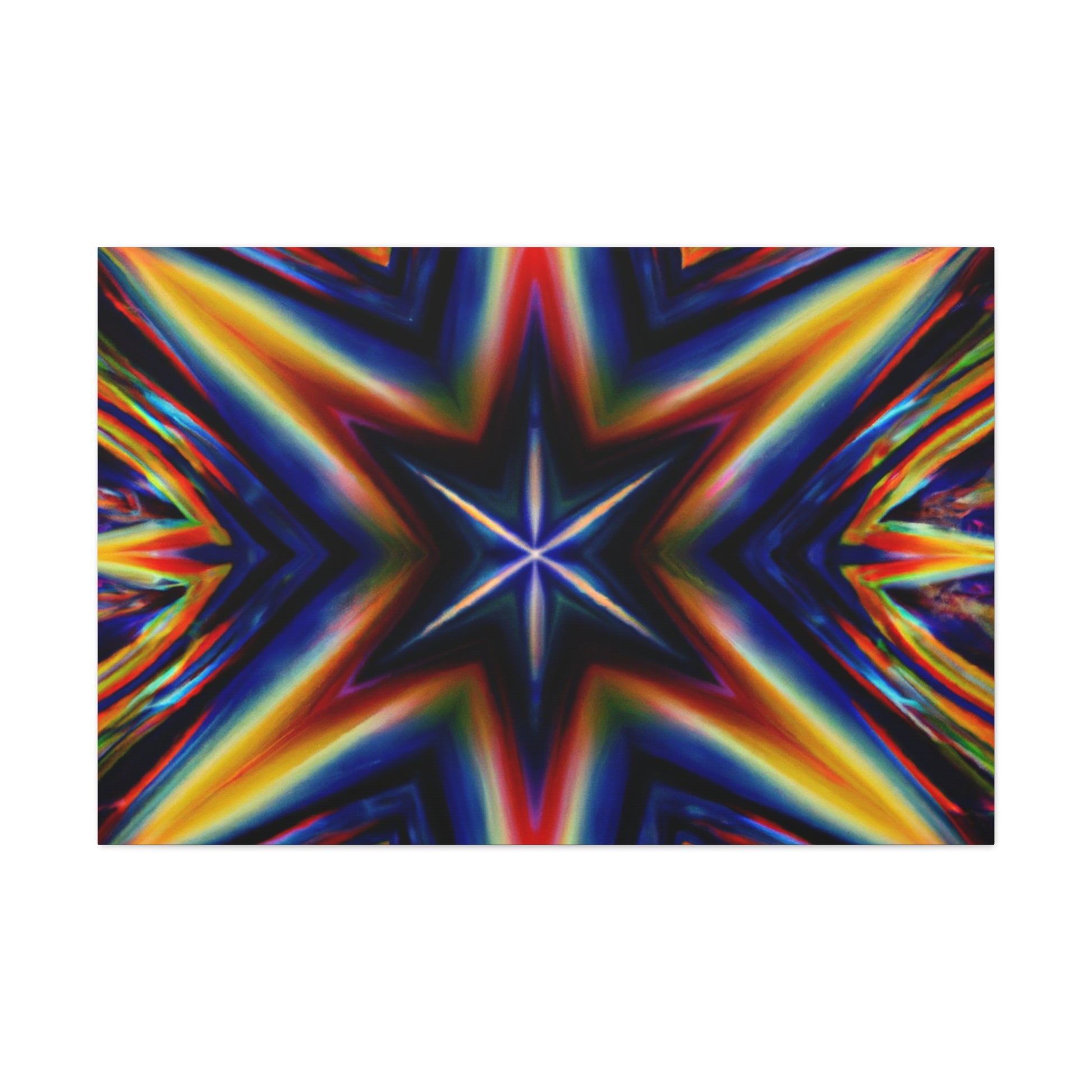 This unique canvas displays a stunning abstract art masterpiece of trippy stars, a kaleidoscope of vibrant colors, and symmetrical shapes in vibrant High Definition against a black canvas. The bold yet dreamy artwork encourages your imagination to explore the vast possibilities of shapes and colors. Hang this one-of-a-kind art to your walls and be mesmerized by its captivating display. #DigitalArt #TrippyImage #Symmetrical #Abstract #Canvas #VibrantHues #Kaleidoscope #HD #Stars #Dreamy #Mesmerizing