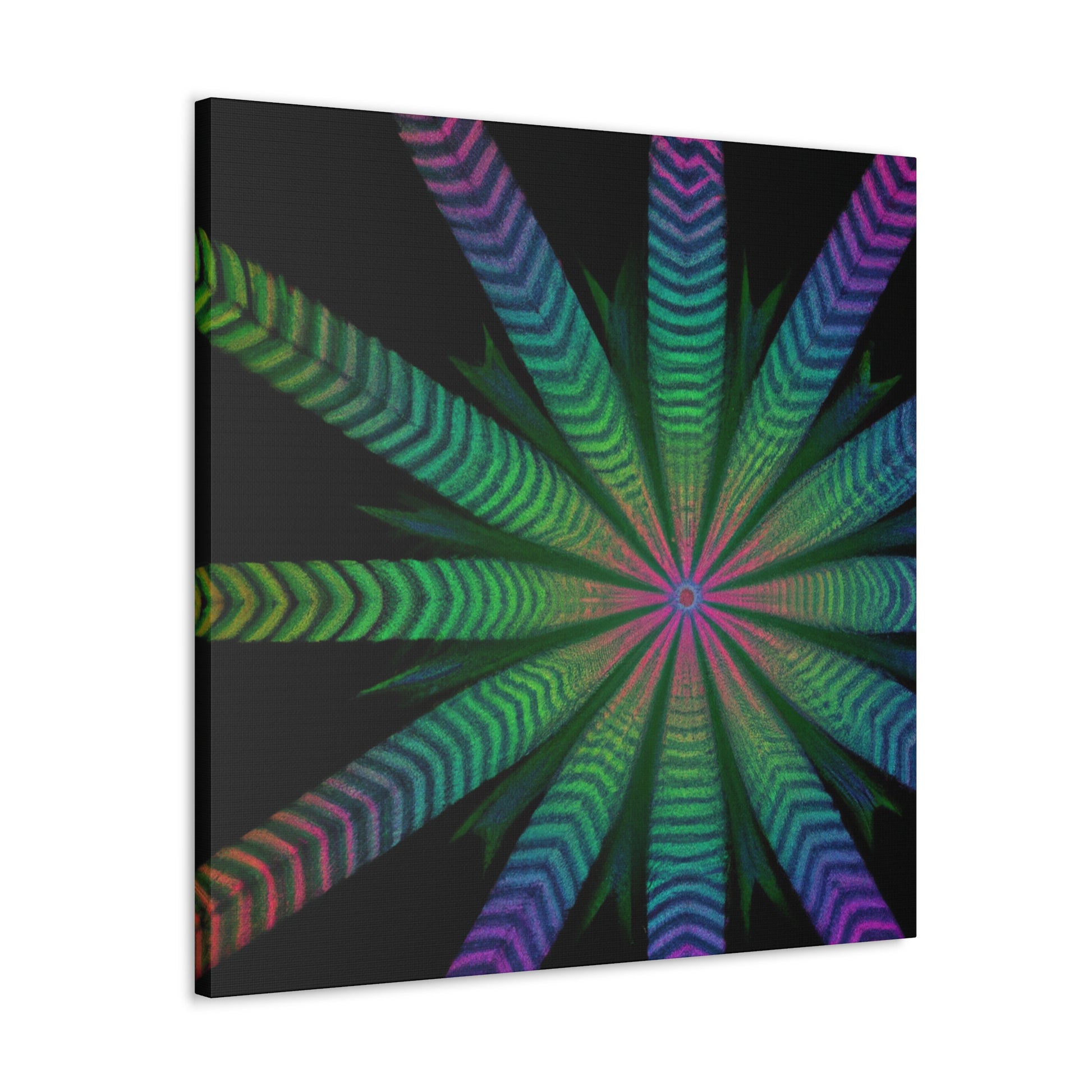 This vibrant and modern canvas captures the beauty and energy of abstract and digital art with its kaleidoscope of trippy geometric palm leaves, 3D lines, and fractal forms. Bright and eye-catching colors are sure to catch attention and brighten up any space. Perfect for those who appreciate the beauty of modern abstract art! #digitalart #AbstractArt #ModernArt #TrippyArt #PalmLeaves #FractalArt #VibrantColours #Kaleidoscope #3DLines #3DArt #ArtLover