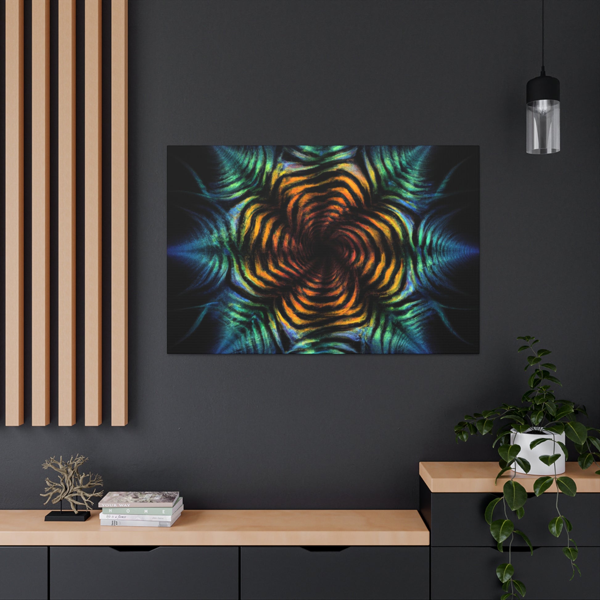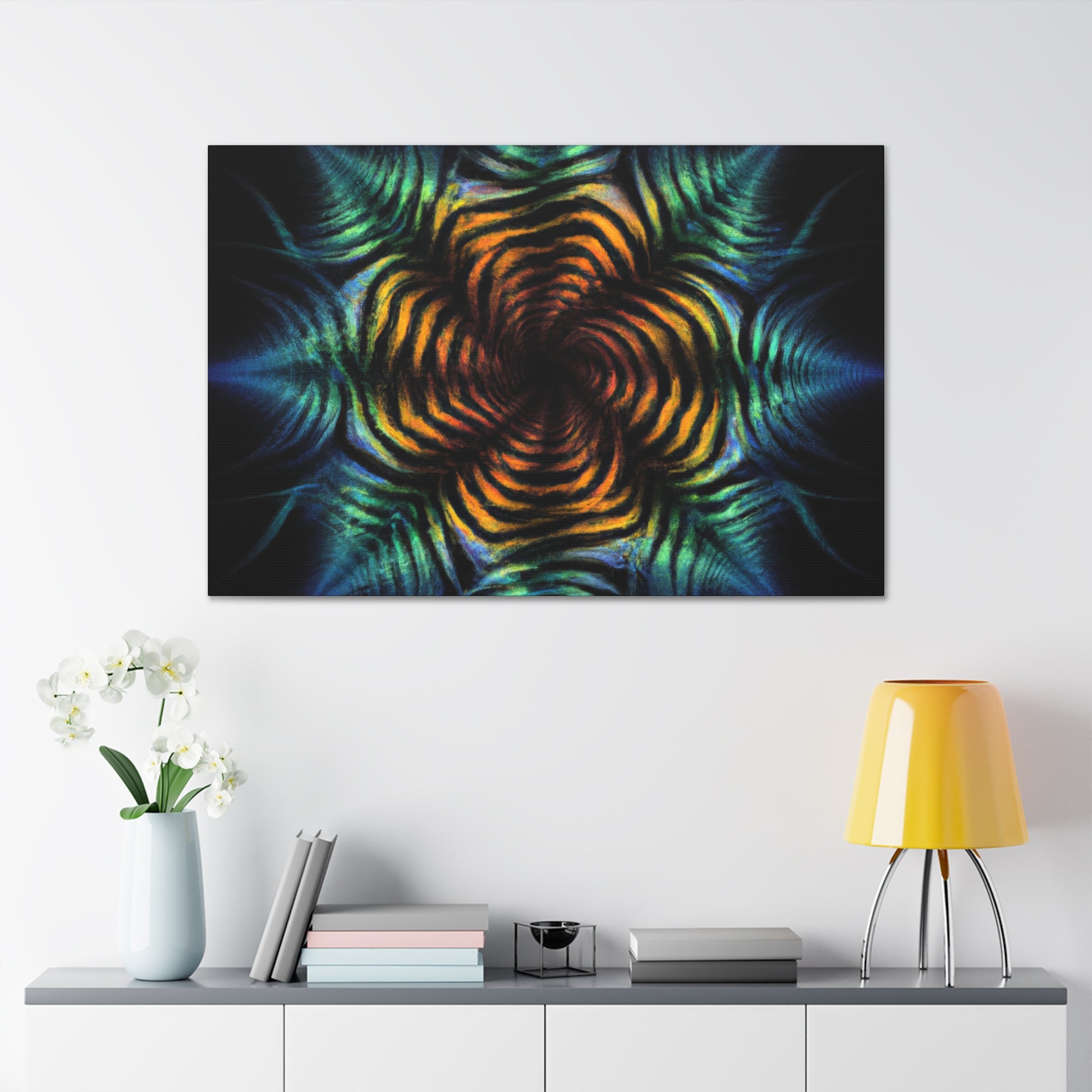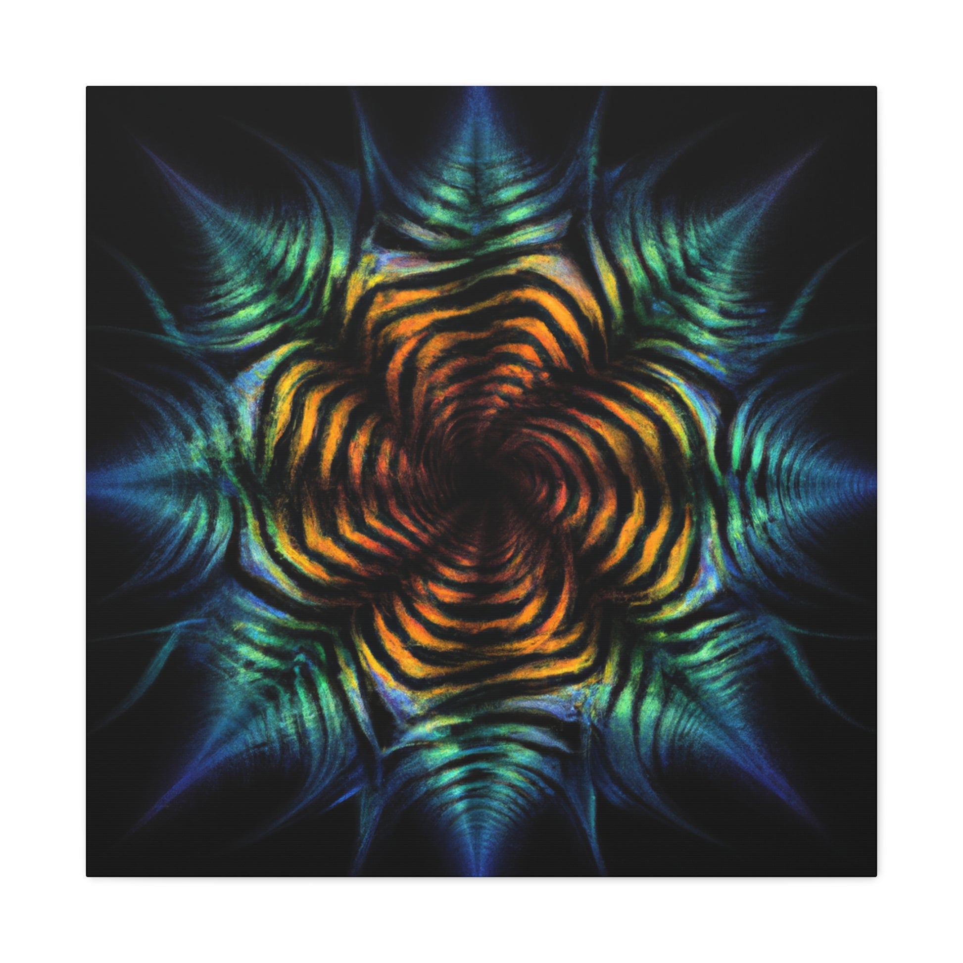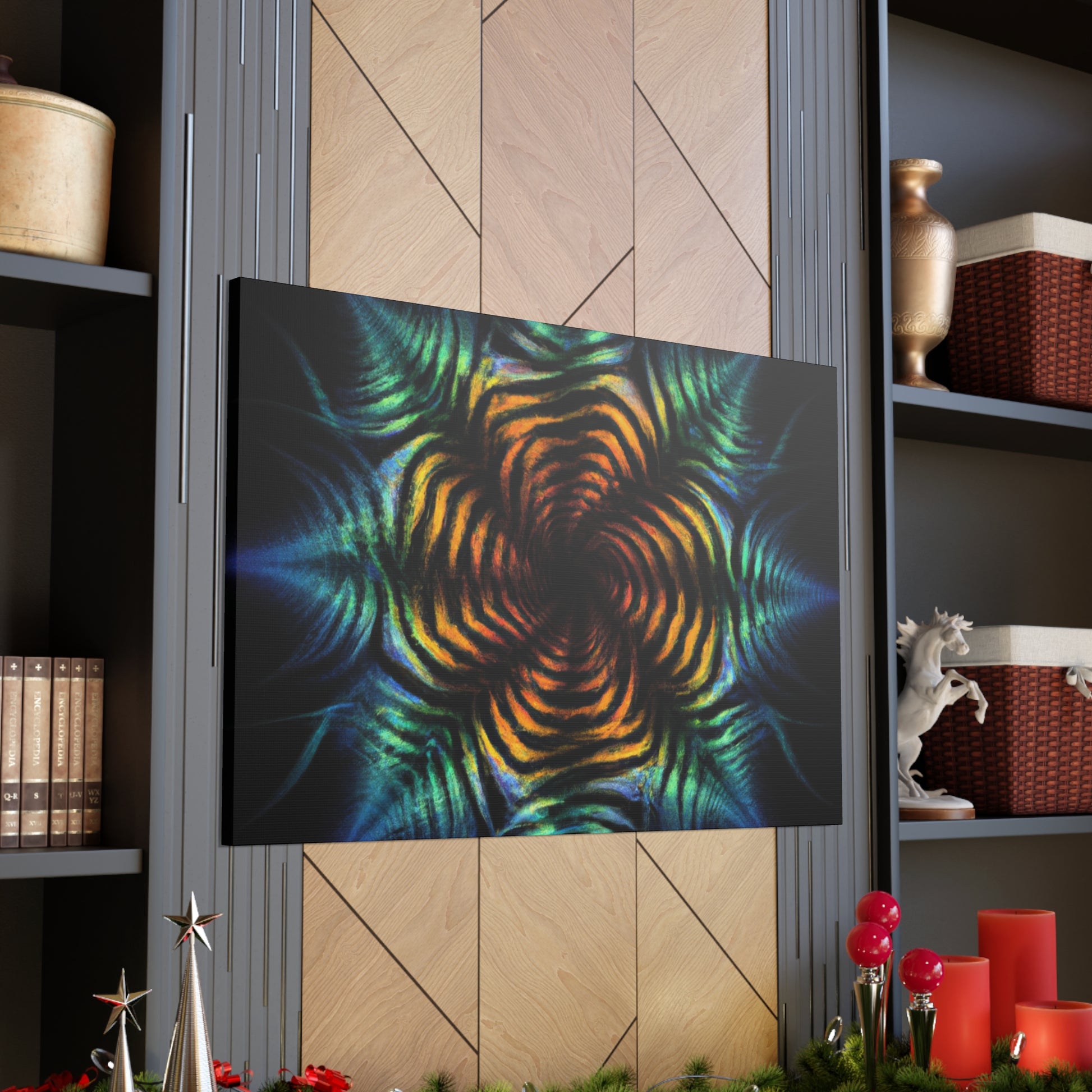 This breath-taking canvas features an intricate pattern of vibrant colors, bold 3D lines, and abstract fractals set over a kaleidoscopic, trippy palm leaves design. Its captivating geometric shapes evoke a sense of wonderment, and this digital piece of art is sure to infuse your living space with a sense of energy and creativity. #palmleaves #geometricart #abstractart #vibrantcolors #kaleidoscope #trippyart #3Dlines #fractalart #digitart #decorideas #creativeroom