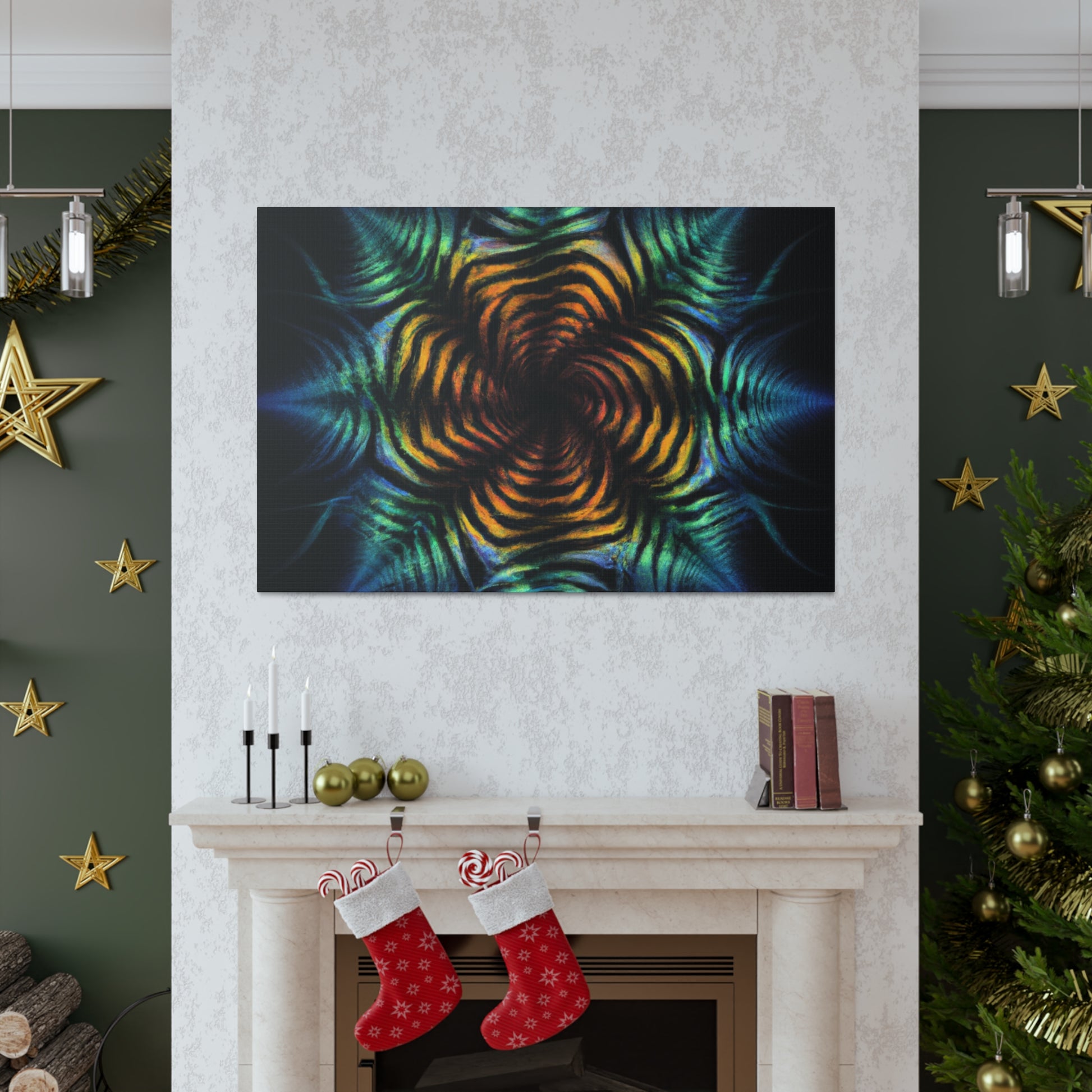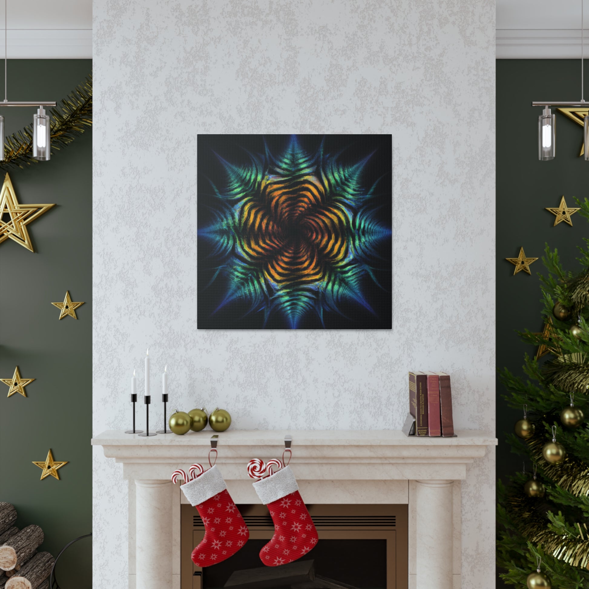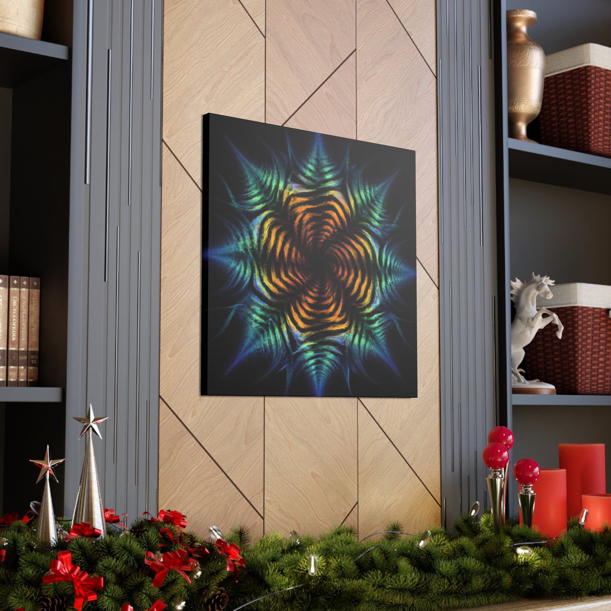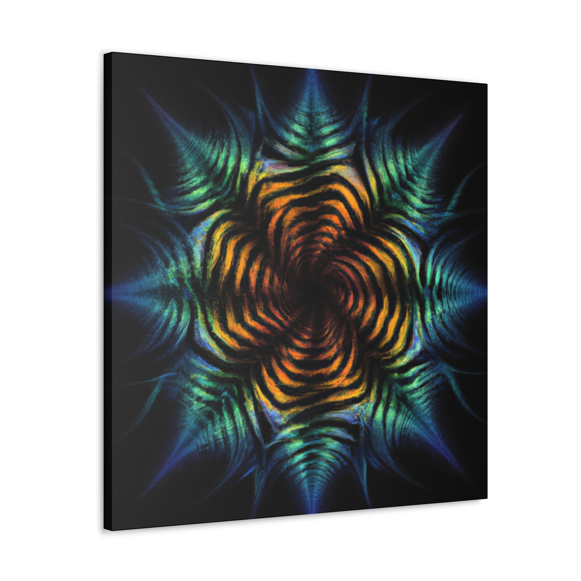 This breath-taking canvas features an intricate pattern of vibrant colors, bold 3D lines, and abstract fractals set over a kaleidoscopic, trippy palm leaves design. Its captivating geometric shapes evoke a sense of wonderment, and this digital piece of art is sure to infuse your living space with a sense of energy and creativity. #palmleaves #geometricart #abstractart #vibrantcolors #kaleidoscope #trippyart #3Dlines #fractalart #digitart #decorideas #creativeroom