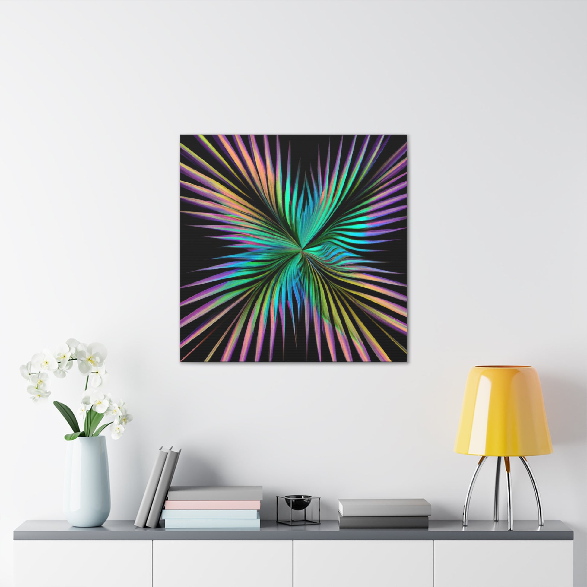 This beautiful canvas of Trippy geometric palm leaves, kaleidoscope, abstract, digital art, and vibrant colors is perfect to add a modern touch to your home. Experience the digital 3D lines, fractal, and rippling graphics to add drama and depth in a room. Refresh your eyes with the intricate designs and mesmerizing color palettes of abstract art. #Fractal #PalmLeaves #Kaleidoscope #AbstractArt #DigitalArt #VibrantColors #3DLines #HomeDecor #3DGraphics #TrippyGraphics #GeometricDesign