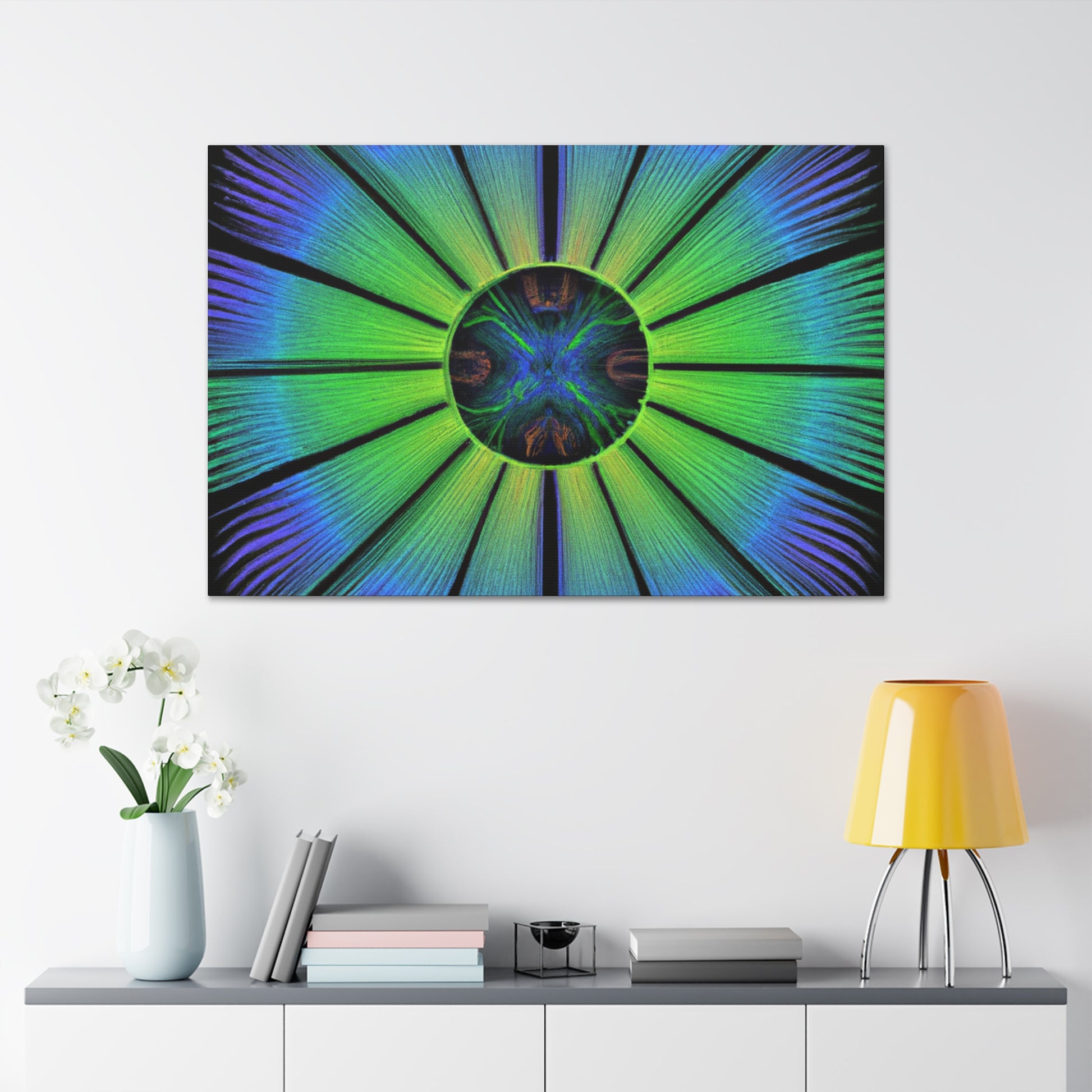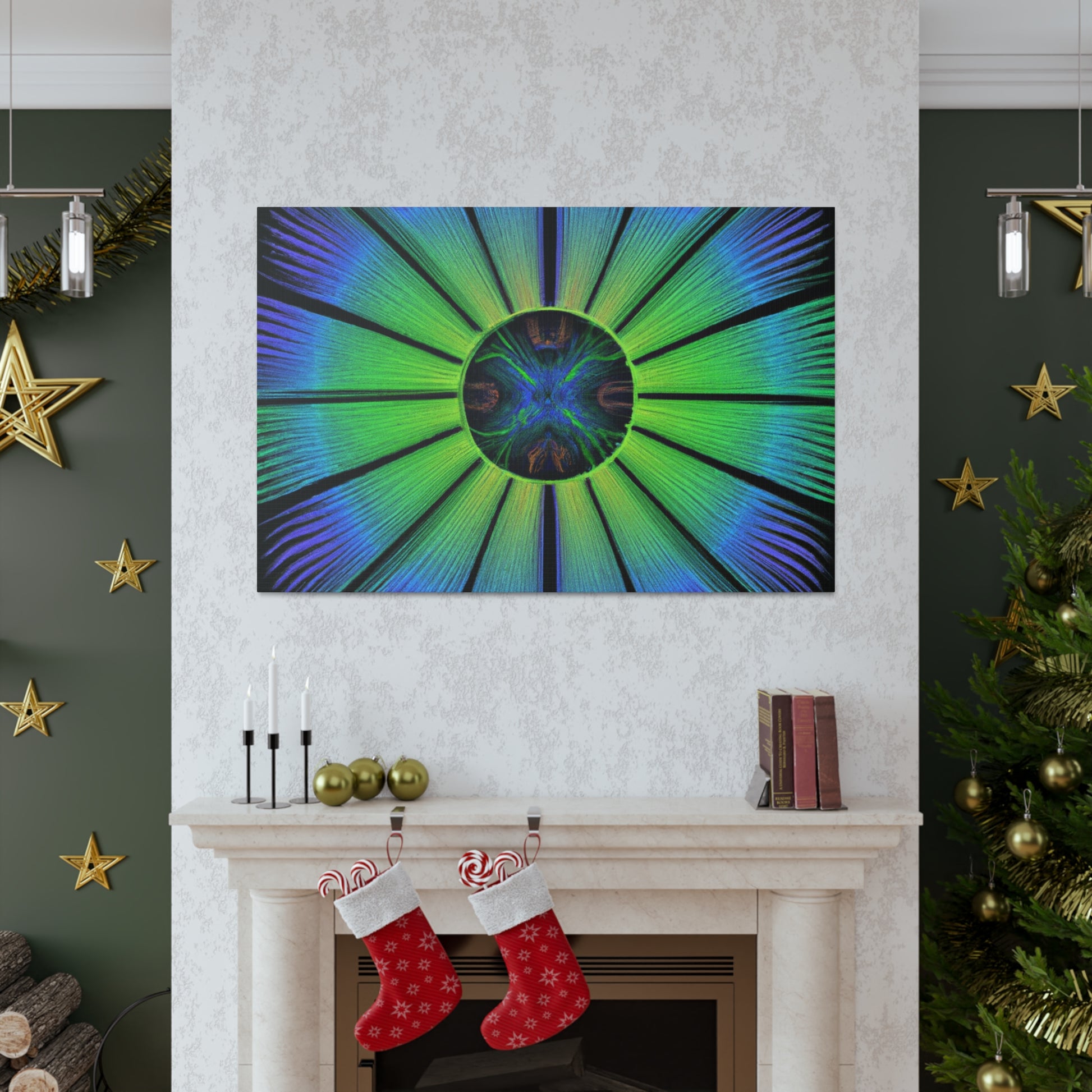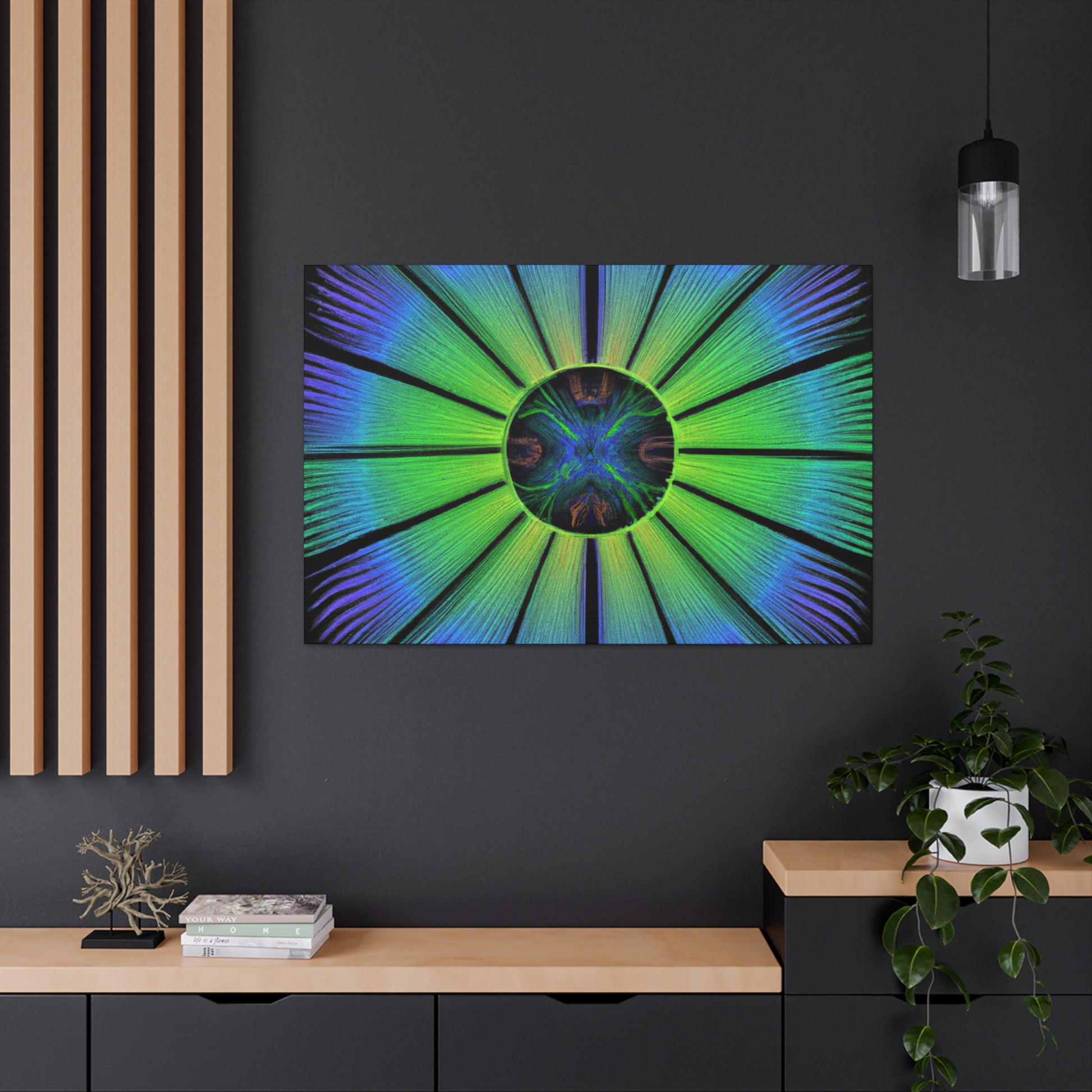 This is a high quality digital reproduction of brightly colored and vividly rendered Trippy Geometric palm leaves. Ideal for home and office decoration, this work of art features a kaleidoscope, abstract, digital art, 3D lines, fractal, and vibrant colors in a single image. Showcase this beautiful and unique canvas in any setting to lift the energy and stimulate conversation. #3Dlines #Fractal #TrippyGeometric #Abstract #DigitalArt #VibrantColors #PalmLeaves #Kaleidoscope #ArtCanvas #HomeDecor #OfficeDecor
