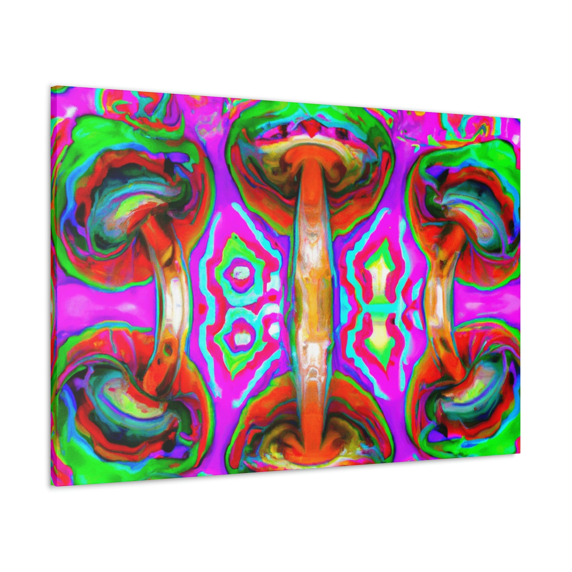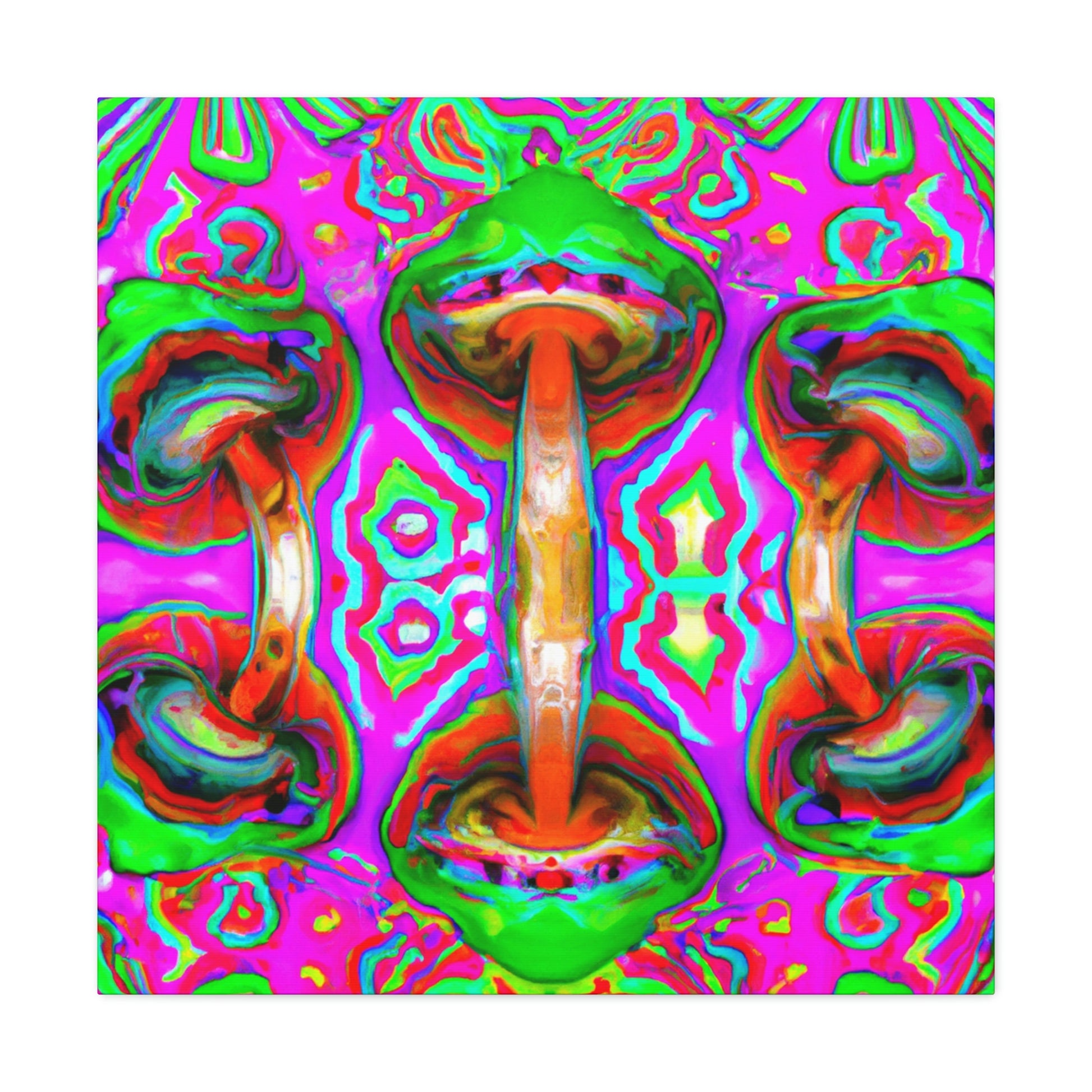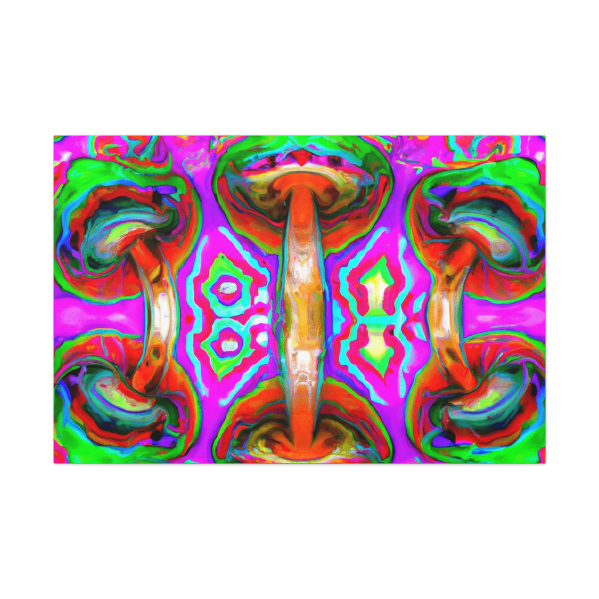 This one-of-a-kind canvas is sure to be a showstopper! Featuring trippy mushrooms, kaleidoscope, abstract, digital art, and vibrant colors, this painted masterpiece steps into the 3D realm of line art. Catch everyone's attention in any room with this trippy and electric visual accompaniment. #trippy #mushrooms #kaleidoscope #abstract #digitalart #vibrantcolors #3d #lineart #paintedmasterpiece #artdeco #uniquecanvas