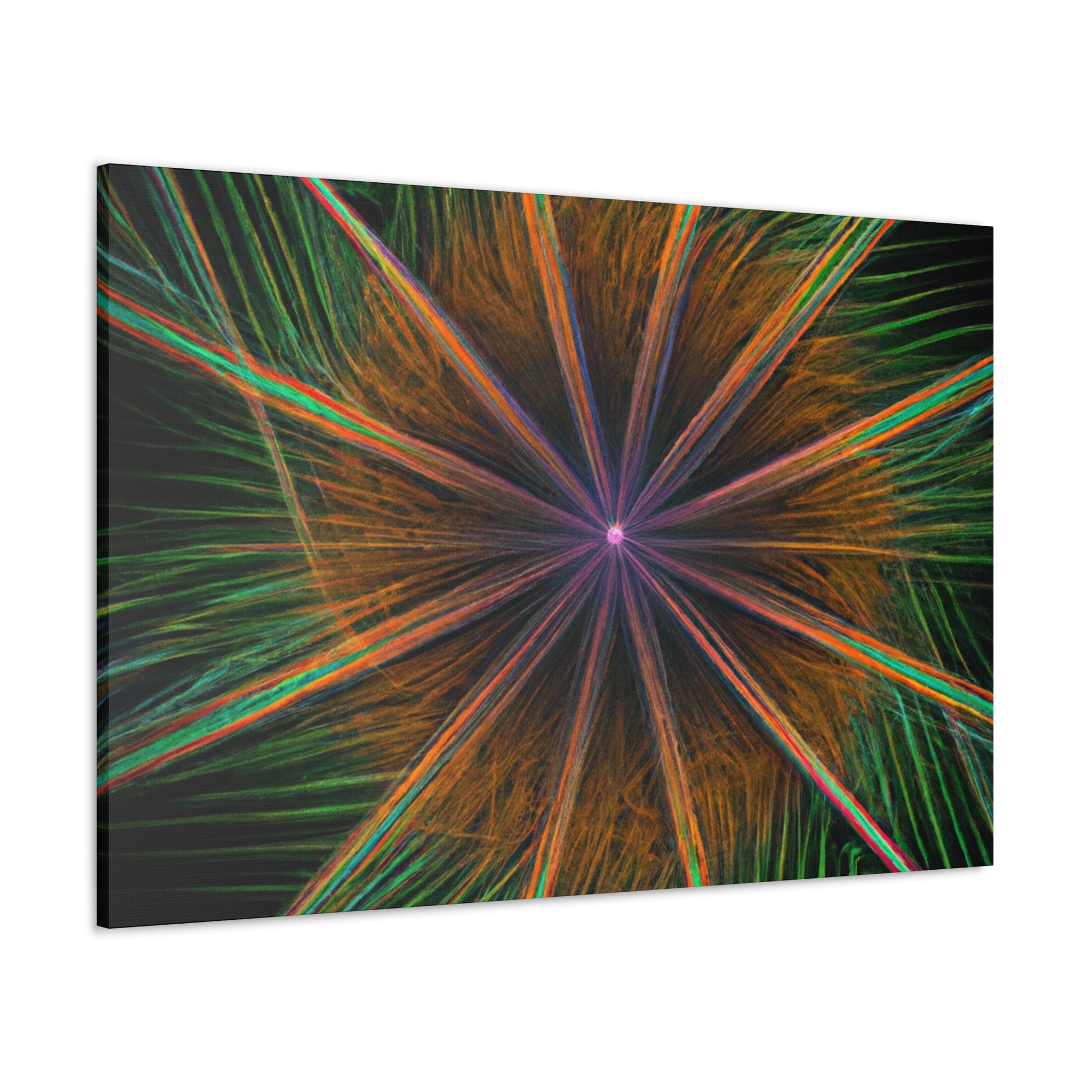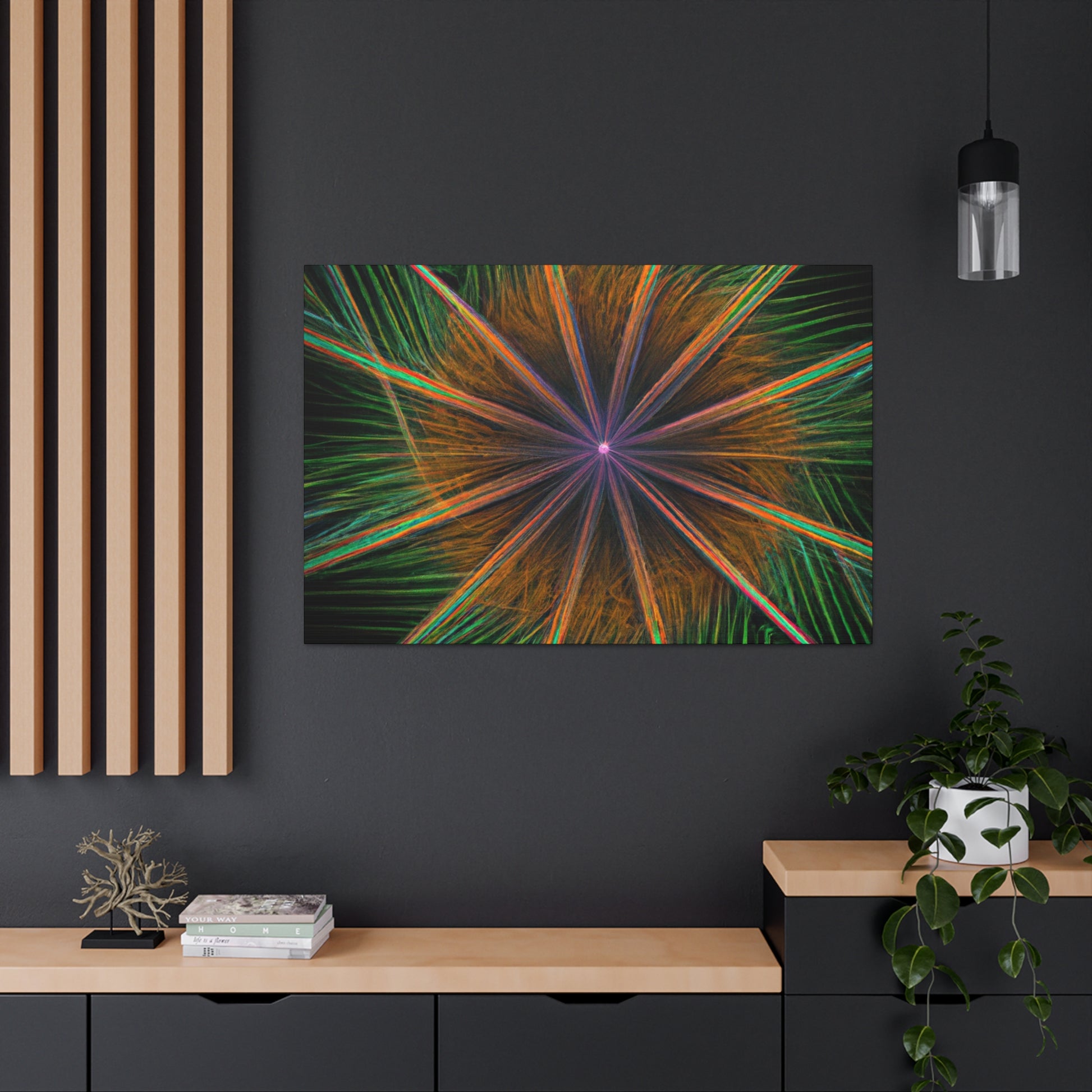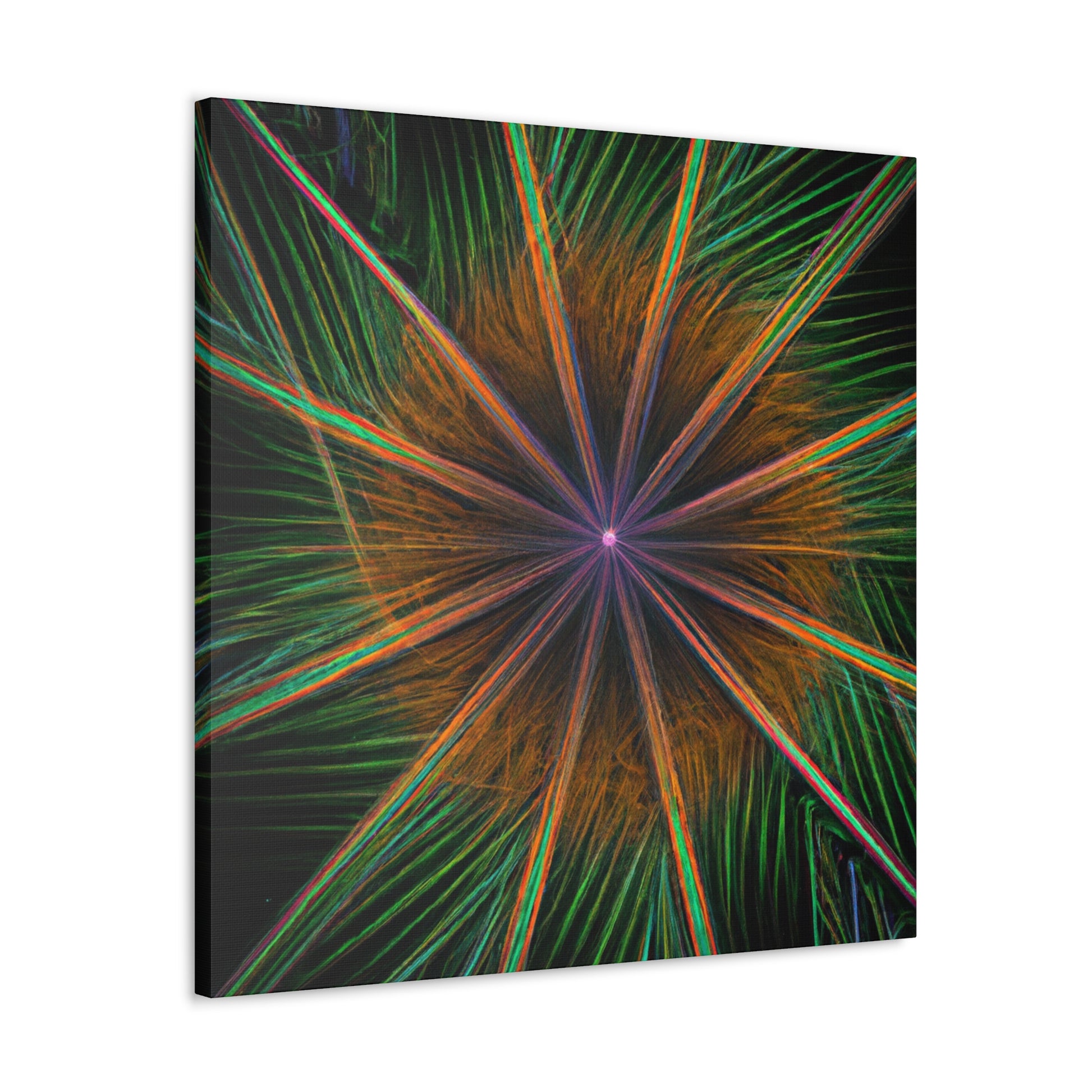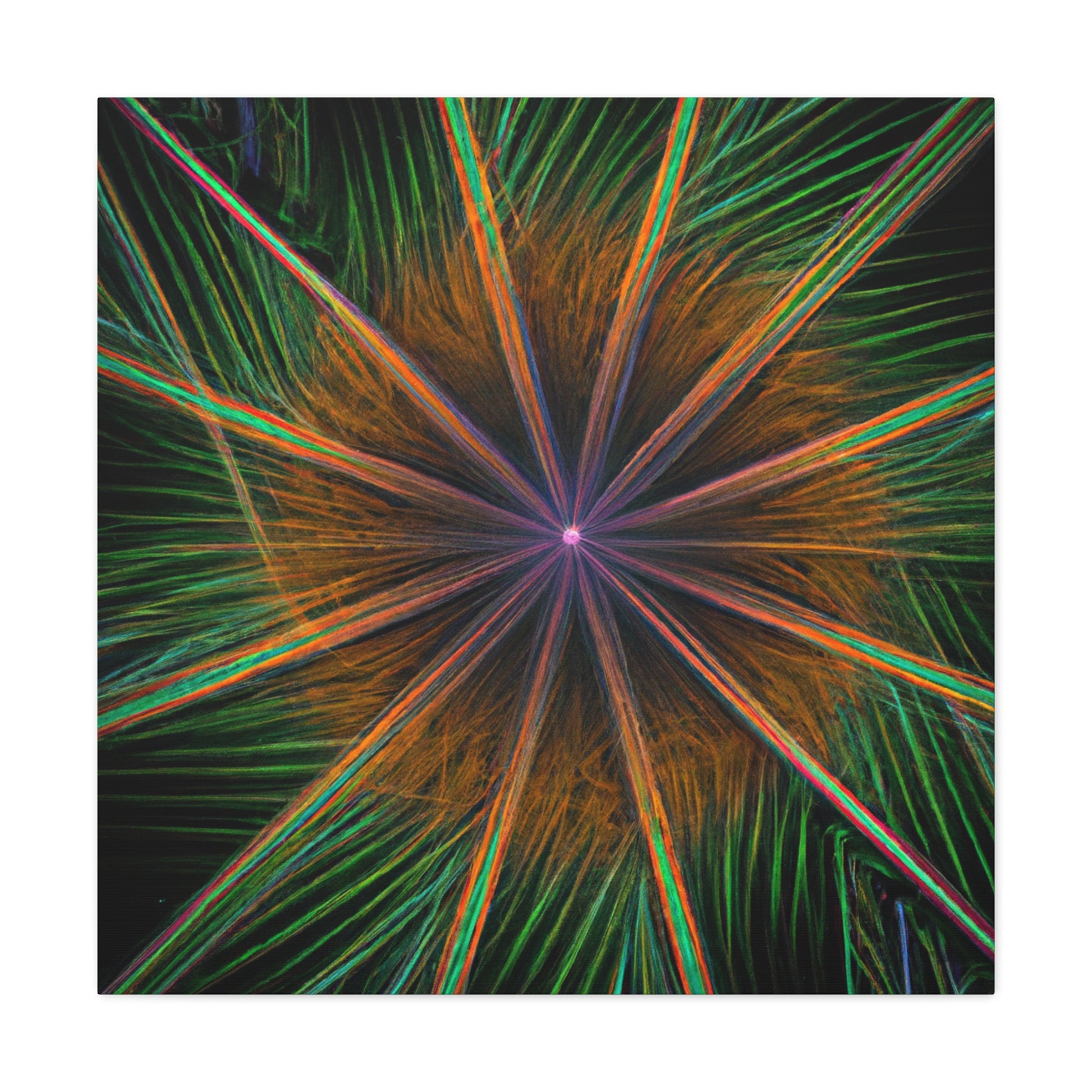 Be mesmerized by this modern art canvas featuring trippy geometric palm leaves, kaleidoscope, abstract, digital art, and vibrant colors with 3D lines, fractal. Bring a modern feel to any room in your home with this captivating piece. #abstractart #modernart #palmleaves #kaleidoscope #digitalart #vibrantcolors #3dlines #fractal #artdecor #canvasart #homedecor