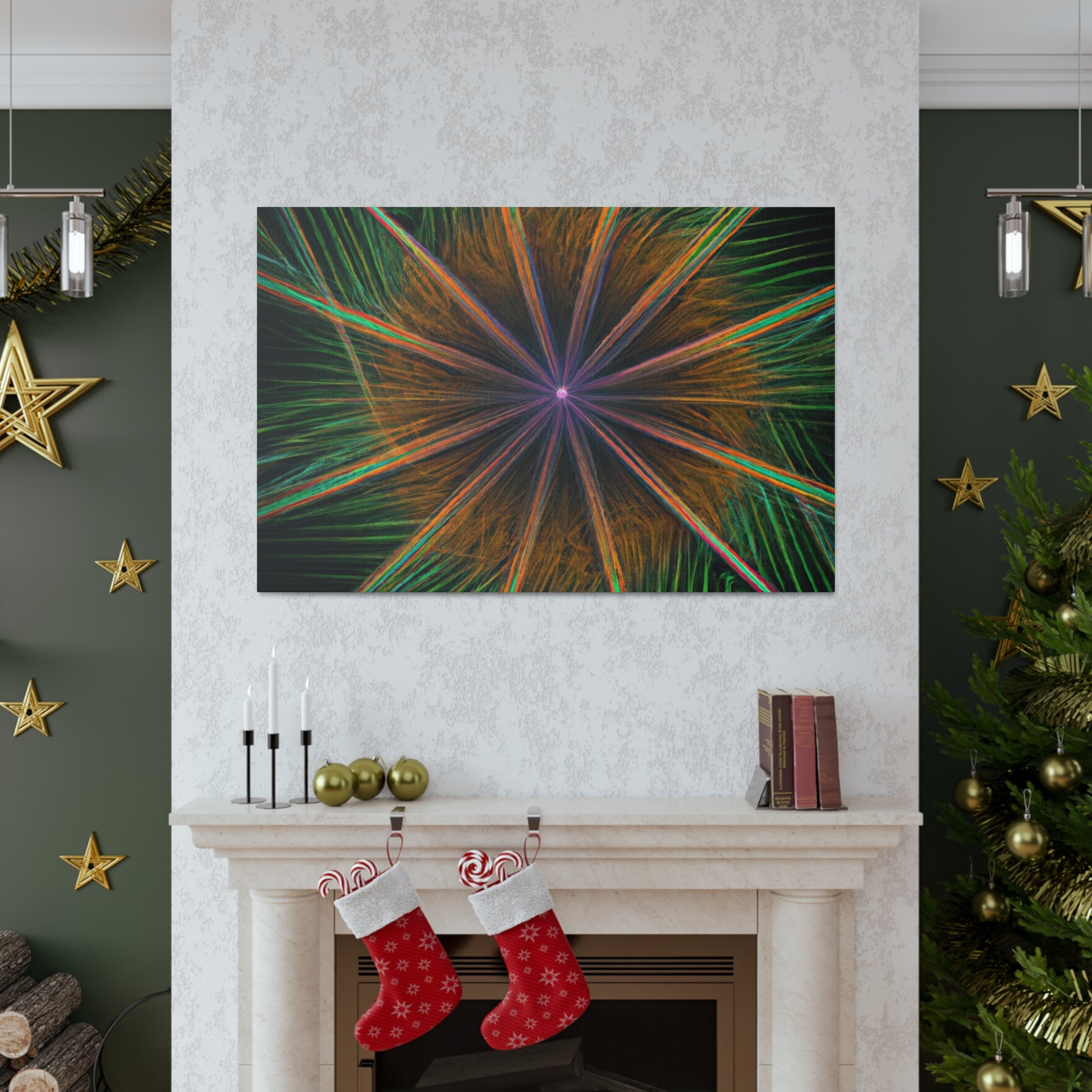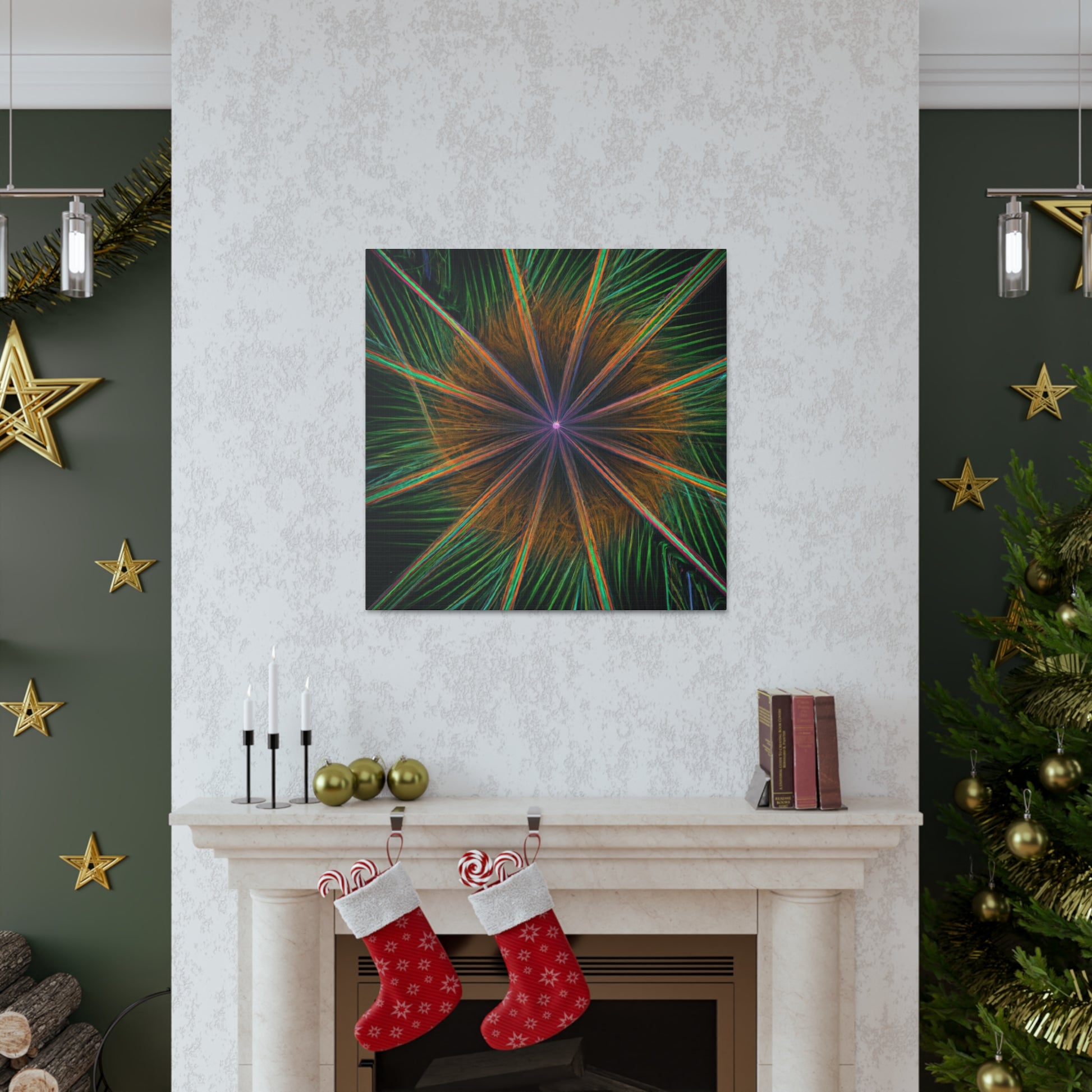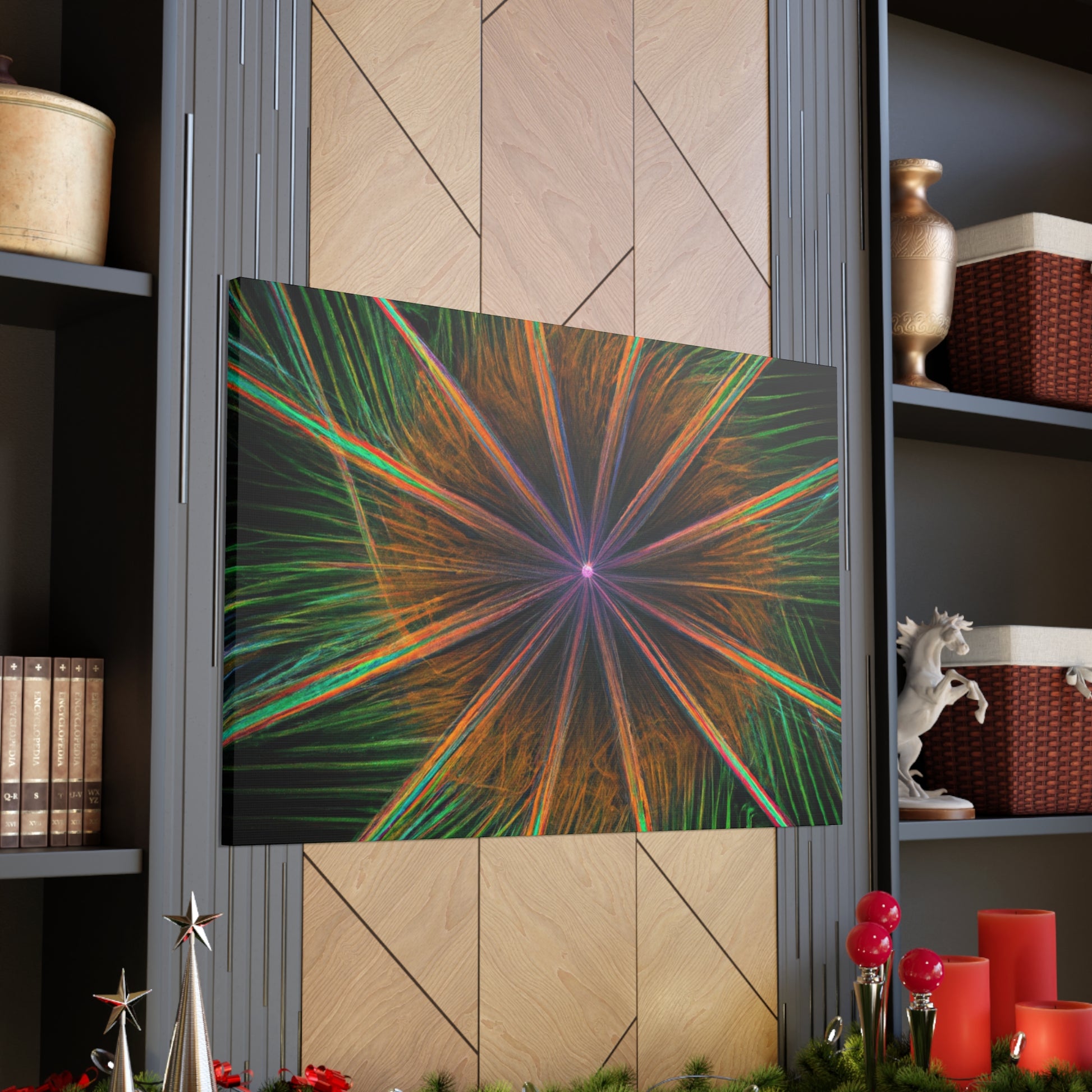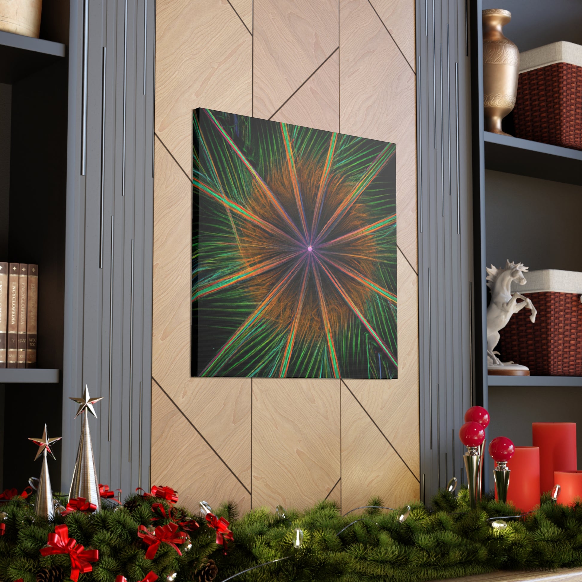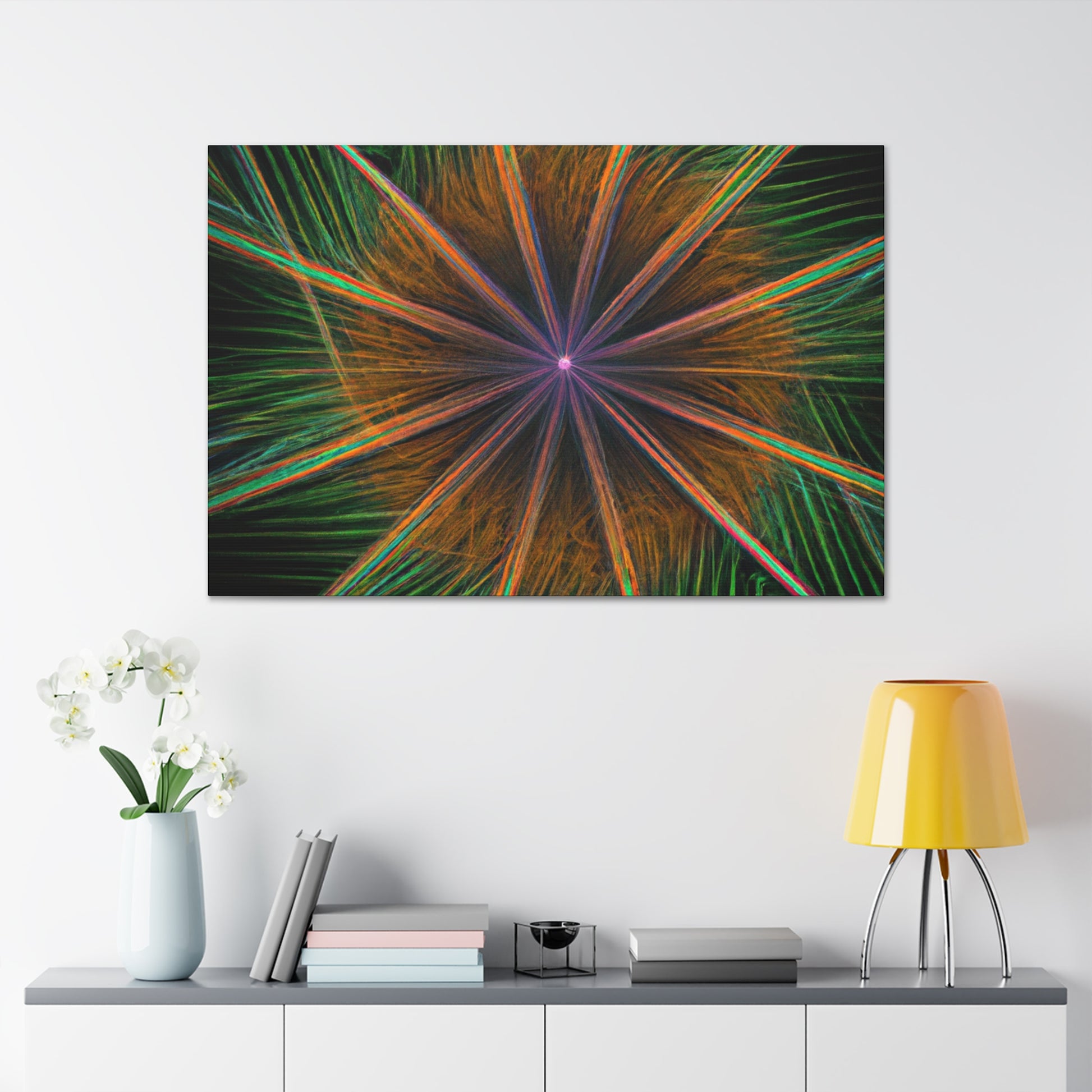 Be mesmerized by this modern art canvas featuring trippy geometric palm leaves, kaleidoscope, abstract, digital art, and vibrant colors with 3D lines, fractal. Bring a modern feel to any room in your home with this captivating piece. #abstractart #modernart #palmleaves #kaleidoscope #digitalart #vibrantcolors #3dlines #fractal #artdecor #canvasart #homedecor