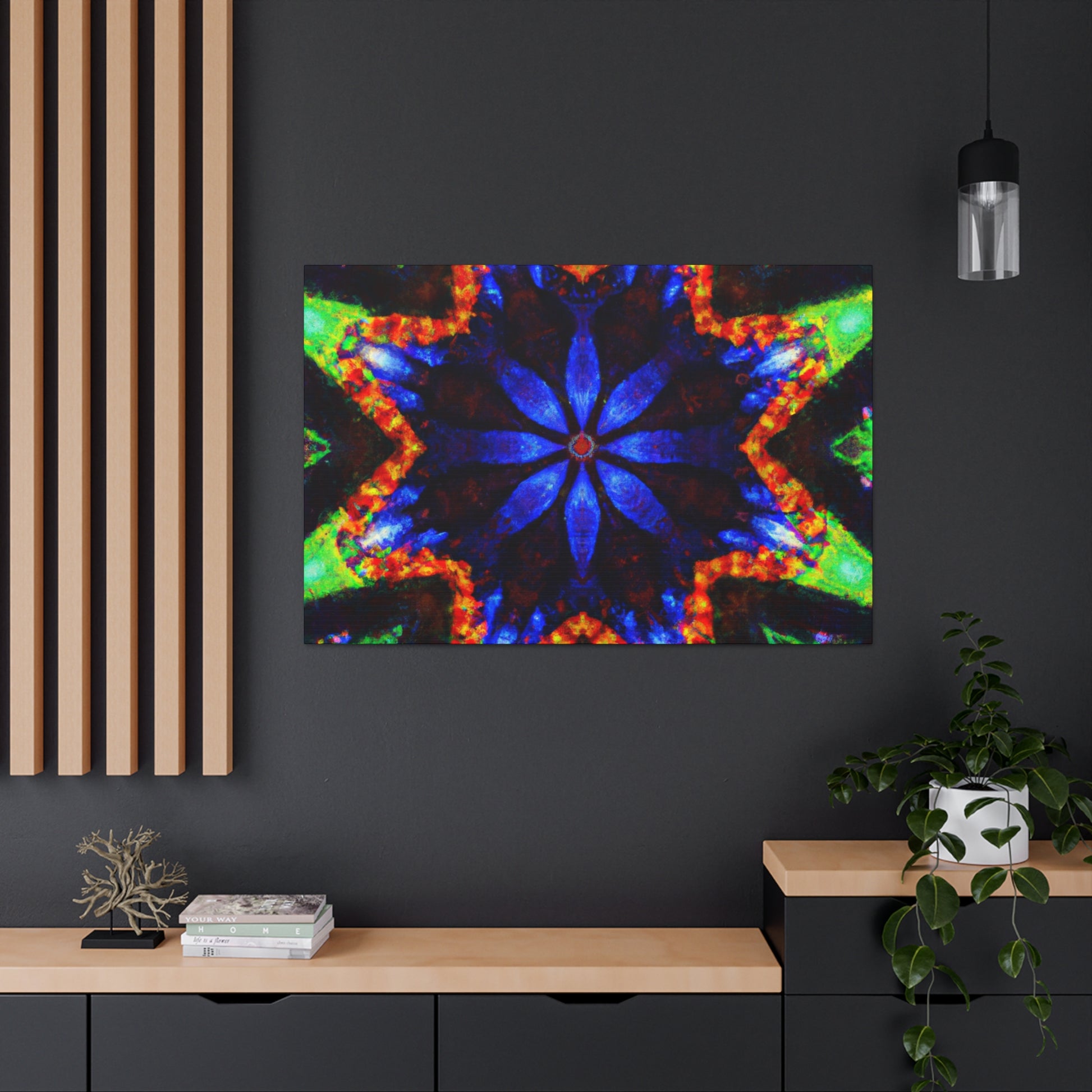 This digital art canvas is perfect for any vibrant and colorful wall decor. The HD image features abstract Trippy stars, kaleidoscope, and symmetrical designs, allowing your space to come alive with color. This art brings a positive and empowering energy, making it the perfect addition to your home. #walldecor #canvasart #digitalart #trippystars #kaleidoscope #abstractart #colorfulart #HDimage #symmetrical #vibrantcolors #positiveenergy