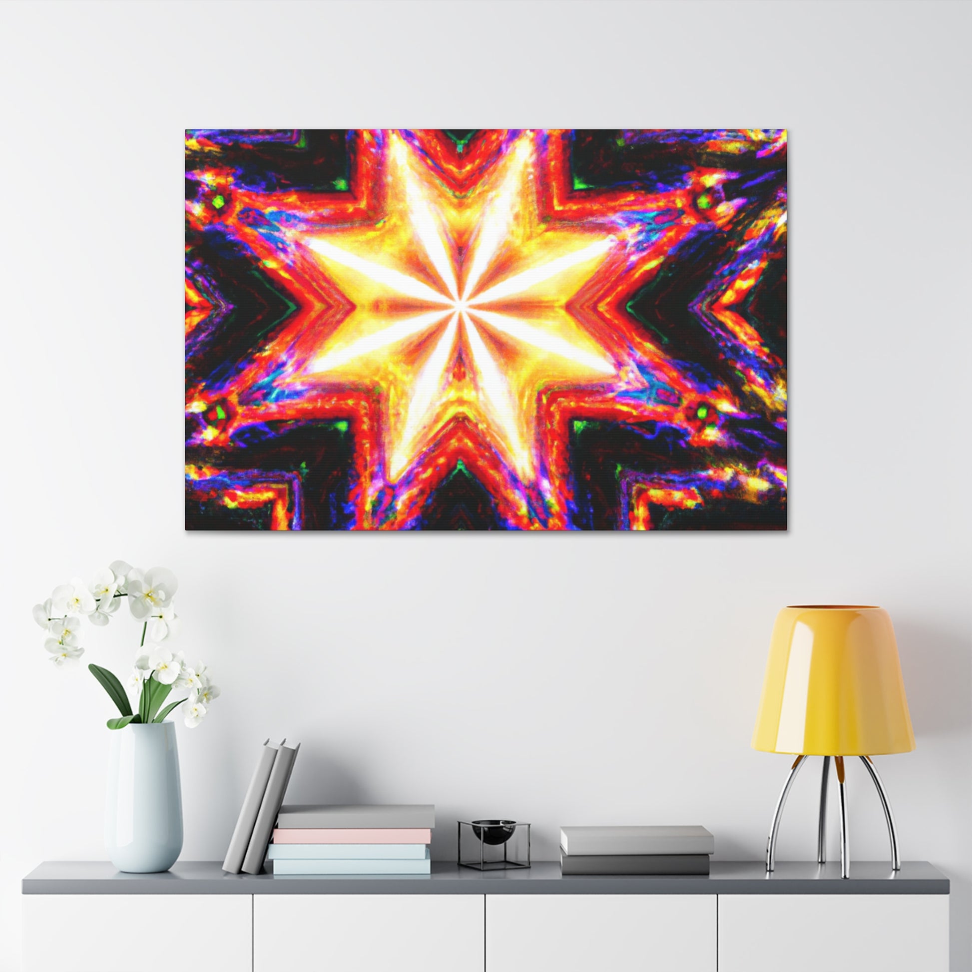This vibrant high definition digital artwork is an abstract, symmetrical canvas full of Trippy stars and kaleidoscope patterns. Rich and vibrant colors pop on this HD Print, creating a mesmerizing look for your wall. Perfect for living rooms, bedrooms, and any other space you want to make a statement in! #abstractart #digitalart #kaleidoscope #highdefinition #HD #patters #stars #vibrantcolors #abstract #symmetrical #trippy #hdprint
