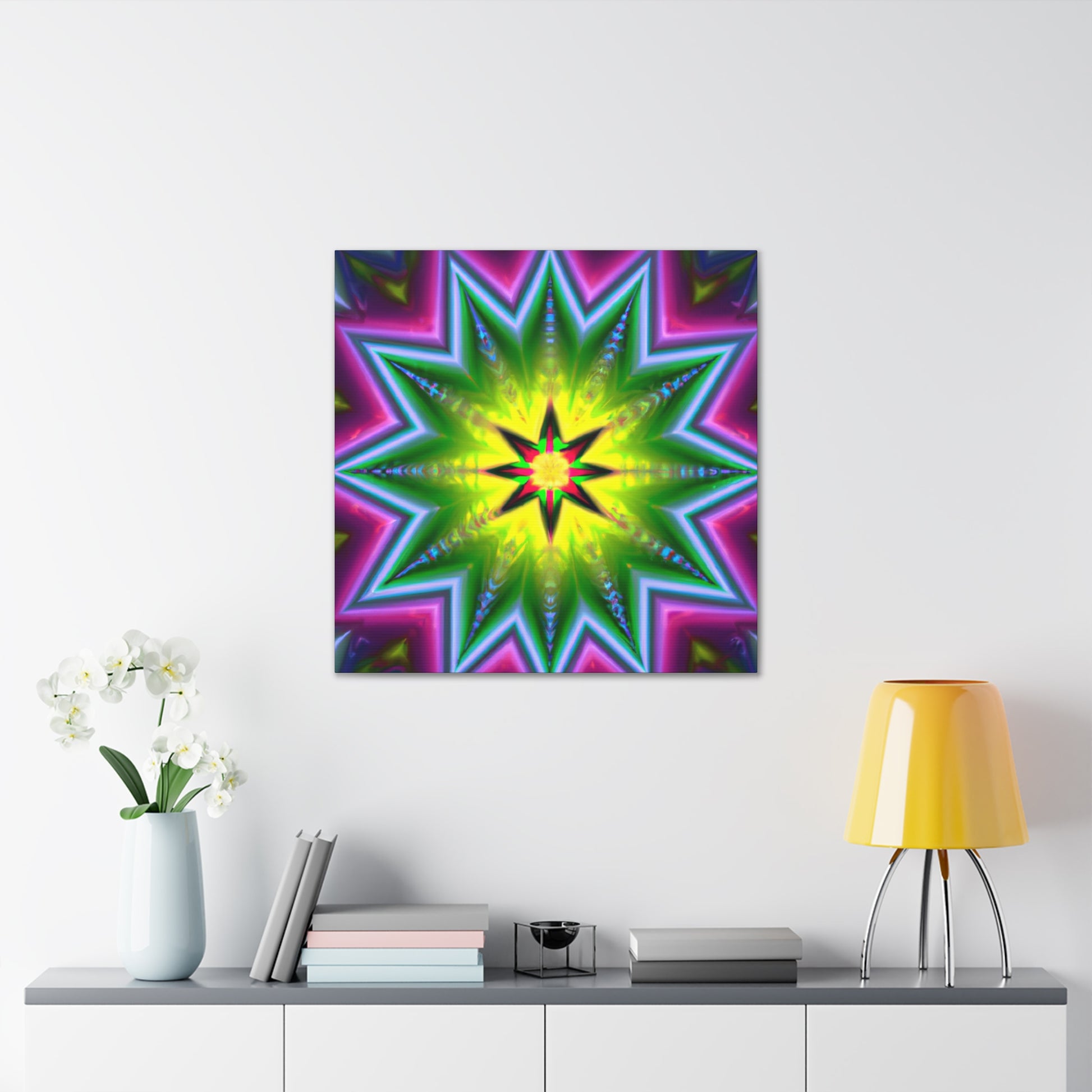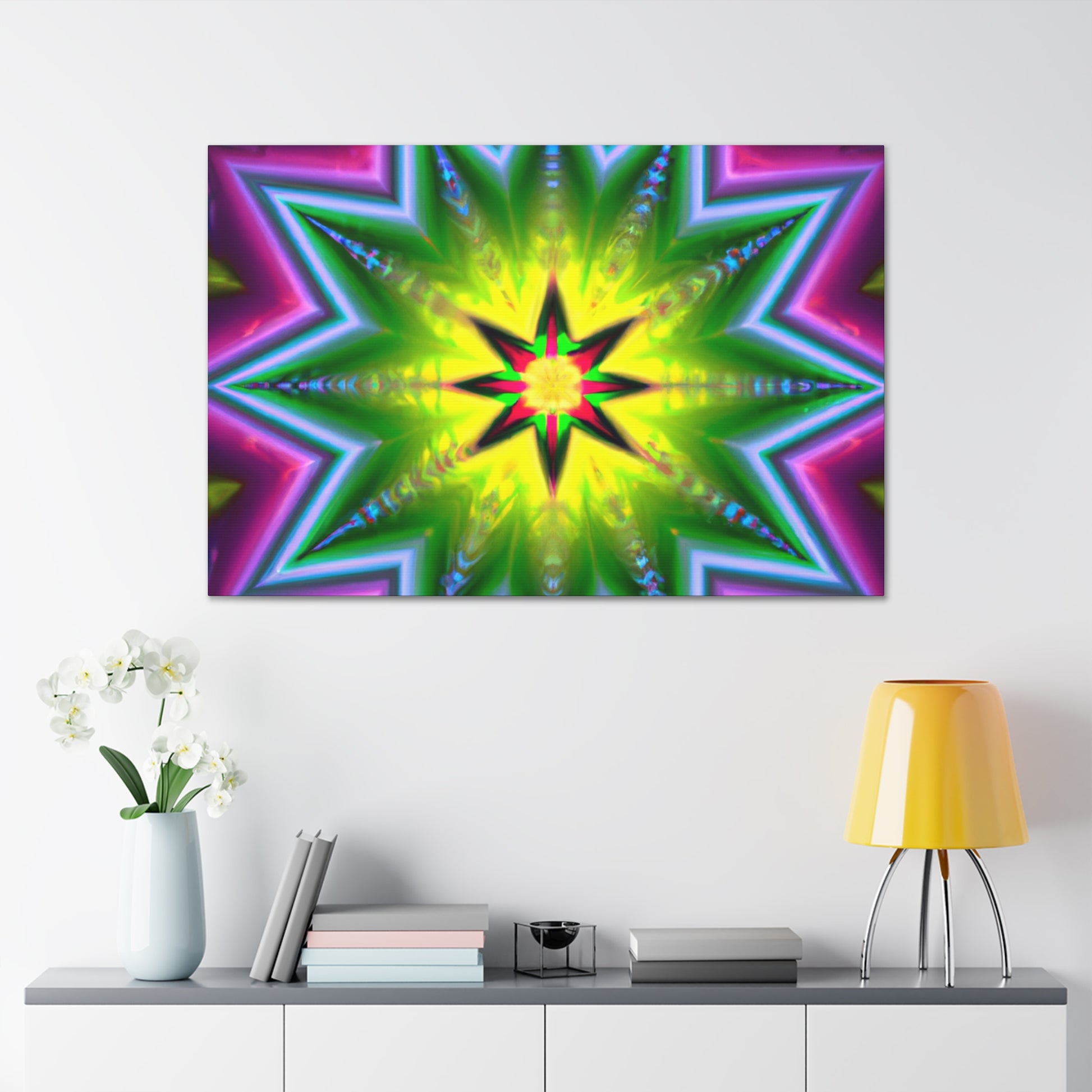 This digital canvas art is trippy yet stunning. With its vibrant colors and abstract art style, this HD design looks beautiful in your home. Whether it's displayed vertically or horizontally, its symmetrical stars and kaleidoscope are sure to be eye-catching. Let this unique canvas bring an extra sense of opulence and creativity to your space. #abstractart #digitalart #kaleidoscope #canvas #stars #symmetrical #vibrantcolors #HD #trippy #art #decor #homedecor