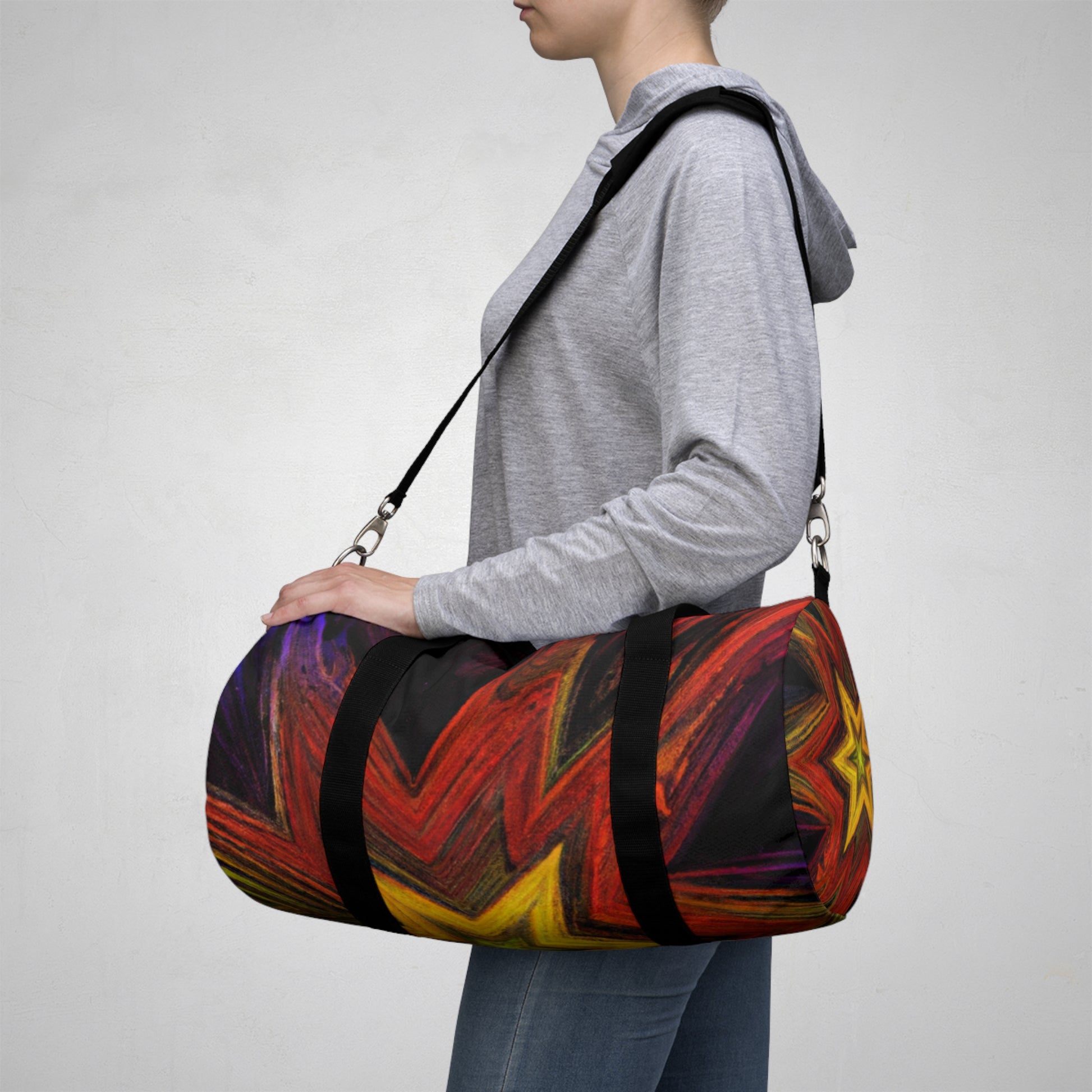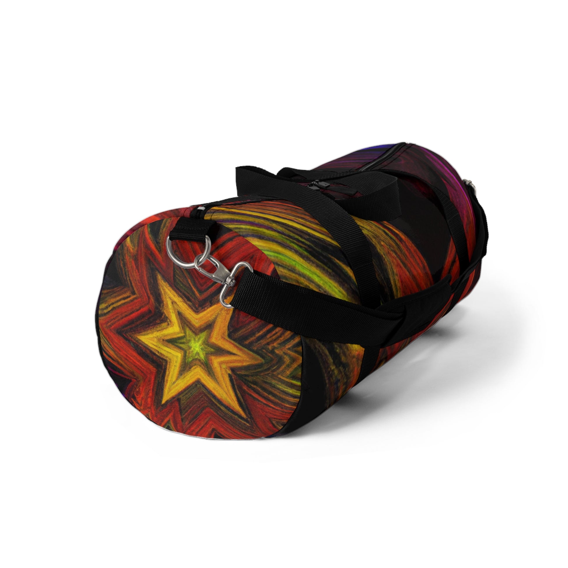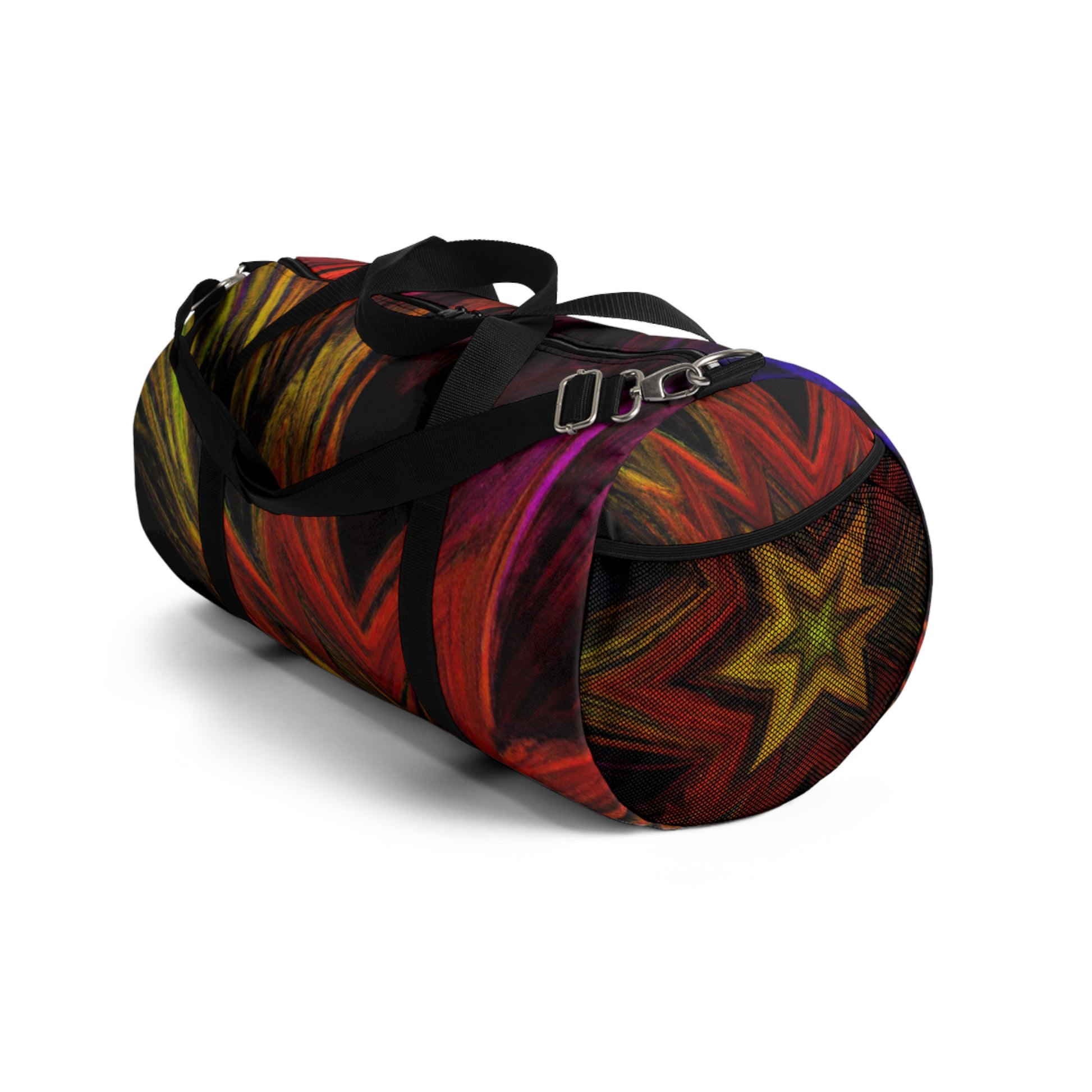 This dufflebag adds a fun and exciting element to any look! It's decorated with trippy stars, hypnotic kaleidoscope designs, abstract digital art and vibrant colors. Bold 3D lines complete the unique look. Whether you're packing for a weekend away or going to the gym, you can be sure your style will never be out of this world! #dufflebag #travelbag #3Dlines #kaleidoscope #digitalart #vibrantcolors #style #unique #trippystars #abstract #digitalart #travelinstyle #kaleidoscopedesigns #threedimensionallines #psychedelic #fun #weekendgetaway #travelbag #trippy #vibrant#multicolored #cool #fashionista #bold#luxurious #exciting #travel #outofthisworld