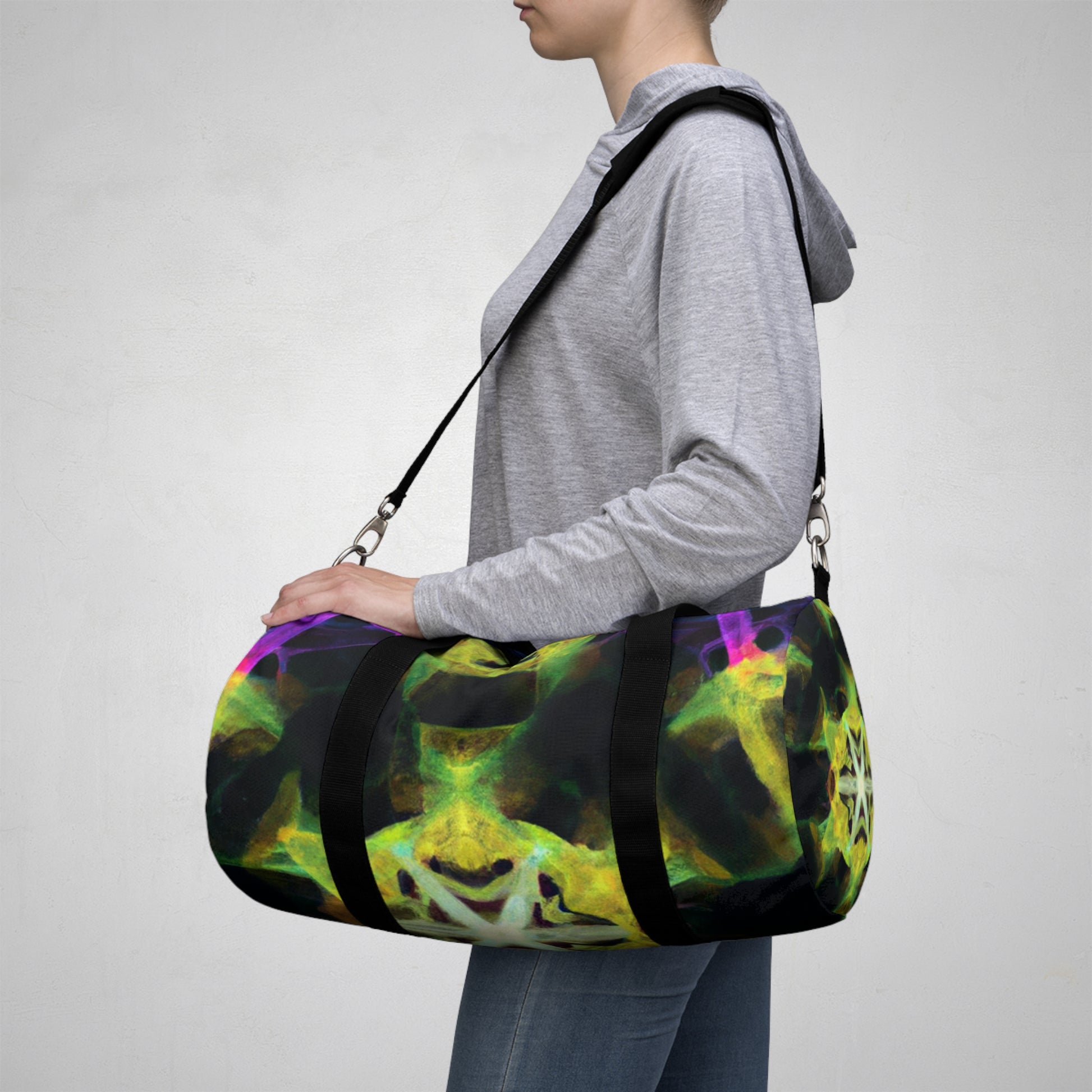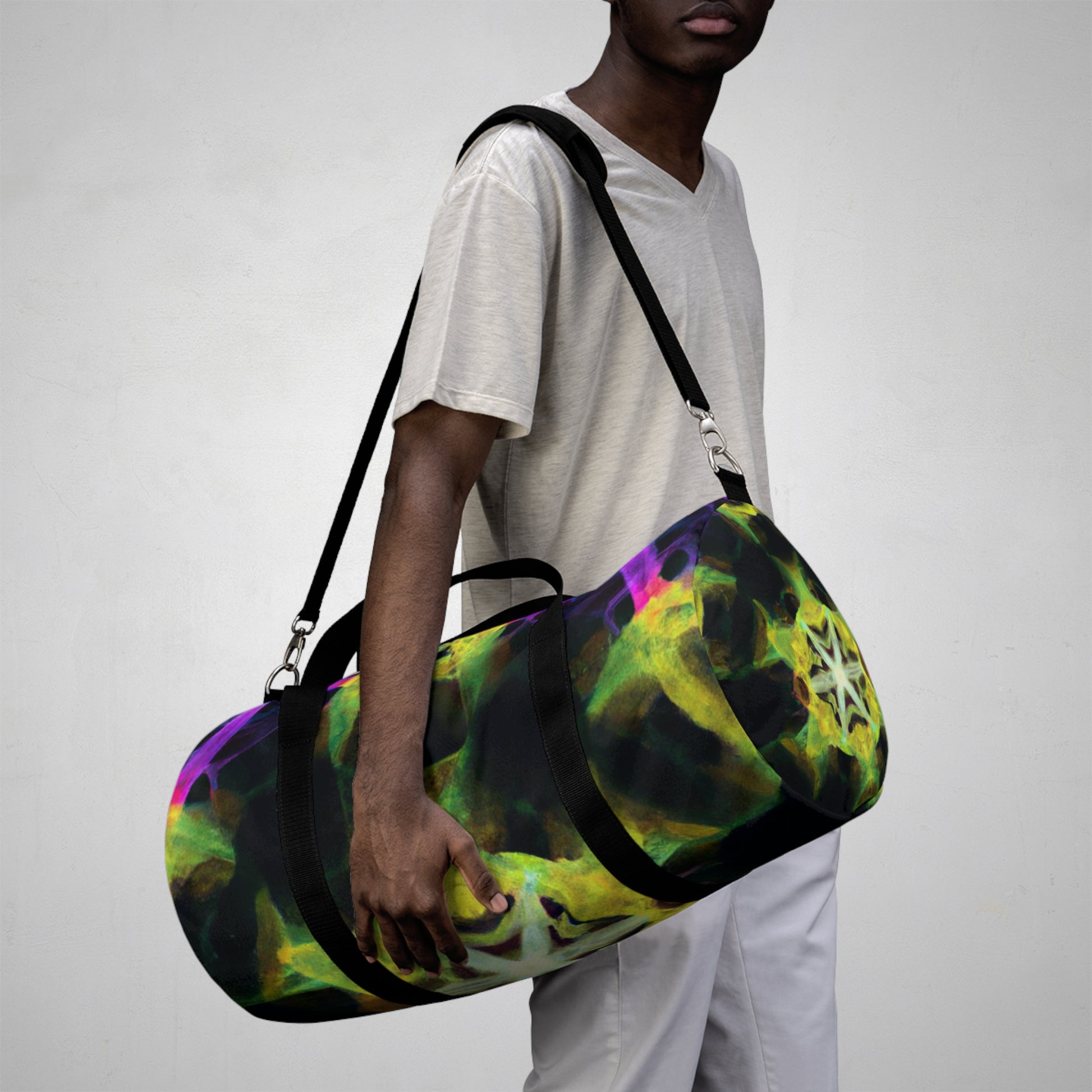 This dufflebag is the perfect accessory for the adventurous. Featuring unique trippy stars, kaleidoscope, abstract, digital art, and vibrant colors with bold 3D lines designs, it will make a statement no matter where you go! Show off your style and express your individuality with this amazing bag. #dufflebag #baggage #travelaccessories #trippystars #kaleidoscope #abstractart #digitalart #vibrantcolors #3Dlines #styleaccessories #adventureaccessories #streetwear #bagsforsale #geometricdesigns #uniquepatterns #durablematerials #versatilelooks #boldlooks #trendyoutfits #streetstyle #casualoutfit #durablematerials #vibrancy #luxuriouslooks #statementbags #trendybag #adventurousjourney #westernstyle