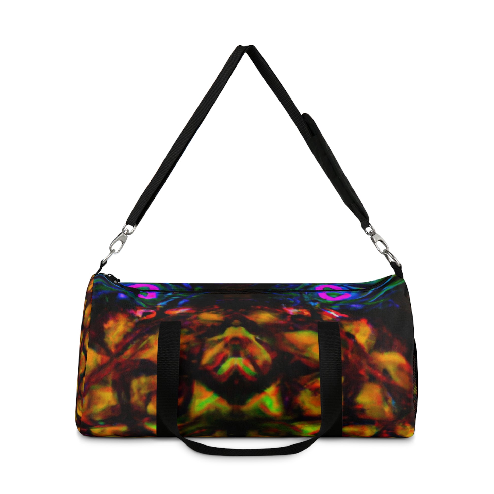 This unique duffle bag is sure to turn heads! With trippy pineapple, kaleidoscope, abstract, digital art, and neon colors in HD, this duffle bag stands out. Show off your style and impact the world with this statement piece that has a special and distinct design. #dufflebag #pineapple #kaleidoscope #abstract #digitalart #neoncolors #HD #statementpiece #unique #stylish #special #style #impacttheworld #trippy #expression #impactful #colorful #showlove #californiacool #dreambig #travelinspired #getcreative #expressyourself #bolddigitalart #vibrantcolors #hdstatement #hdstyle #hdexpression #hdsummer