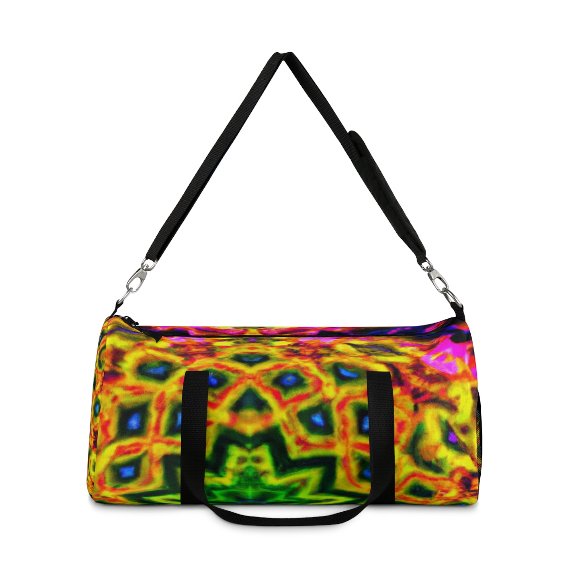 Step up your style with this dazzling neon, abstract, digital art duffel bag! Lined with trippy pineapple, kaleidoscope, and HD designs, it is sure to stand out from the rest. From the gym to the mall, the beach to the party - this bag takes you everywhere you need to go in style. #style #neon #duffelbag #pineapple #kaleidoscope #abstract #digitalart #HD #fashion #party #beach #gym #cute #vibrant #unique #trippy #exotic #colorful #luxury #bold #bags #travel #designs #fun #durable #accessories #giftideas #basecampbags