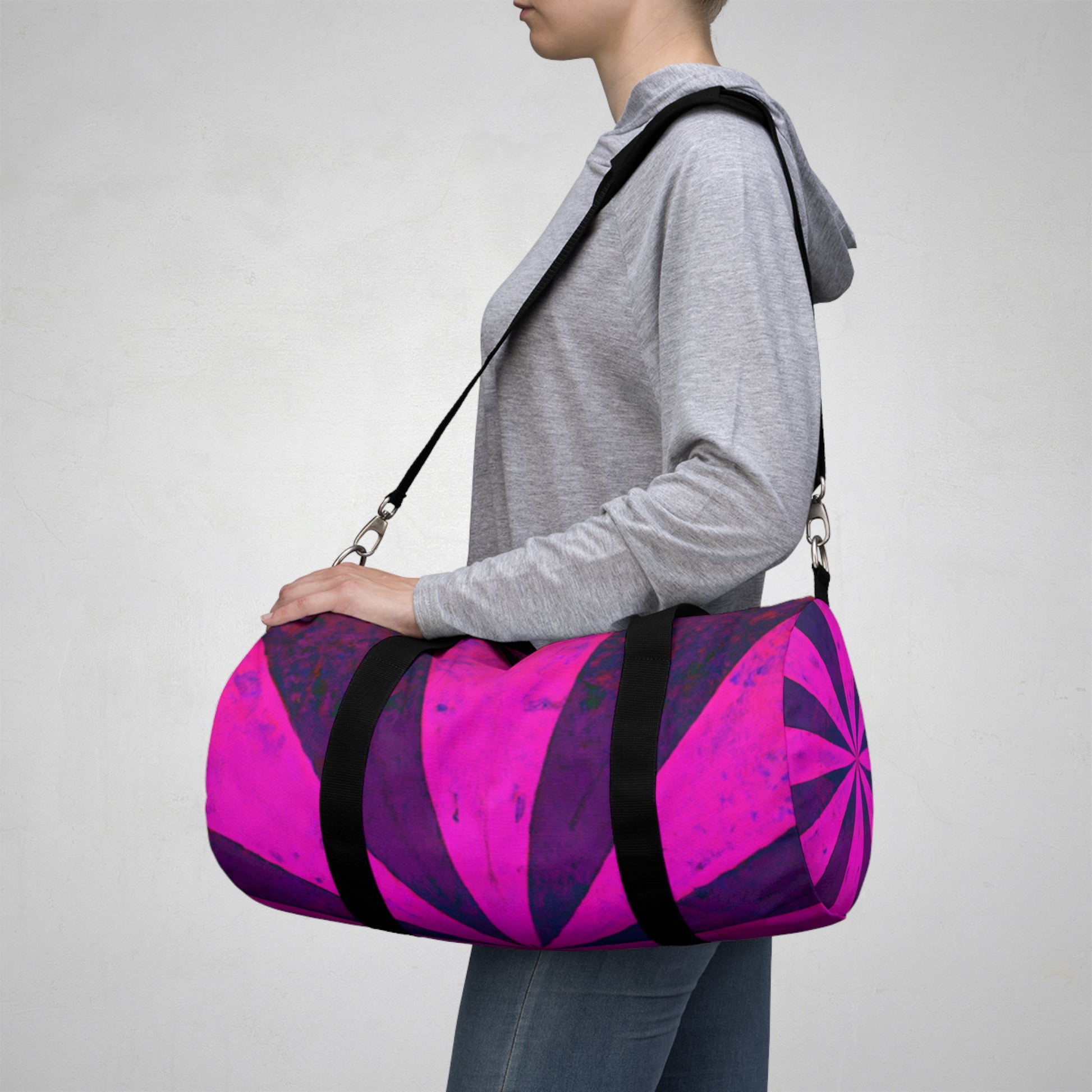 This duffle bag is perfect for anyone looking for a chic way to express their uniqueness! Its striking design features trippy stars, kaleidoscope, abstract, digital art, and vibrant colors, all combined with 3D lines to create an eye-catching and stylish look. Perfect for carrying anywhere, it's sure to turn heads and get people talking. #dufflebag #bags #travel #style #vibrant #kaleidoscope #stars #abstract #digitalart #3D #statementpiece #expressyourself #trendy #unique #standout #rave #trippy #colorful #pickmeup #create #trending #carry #transport #musthave #fashionable #styleitup #walkingstyle #walkwithstyle #designs