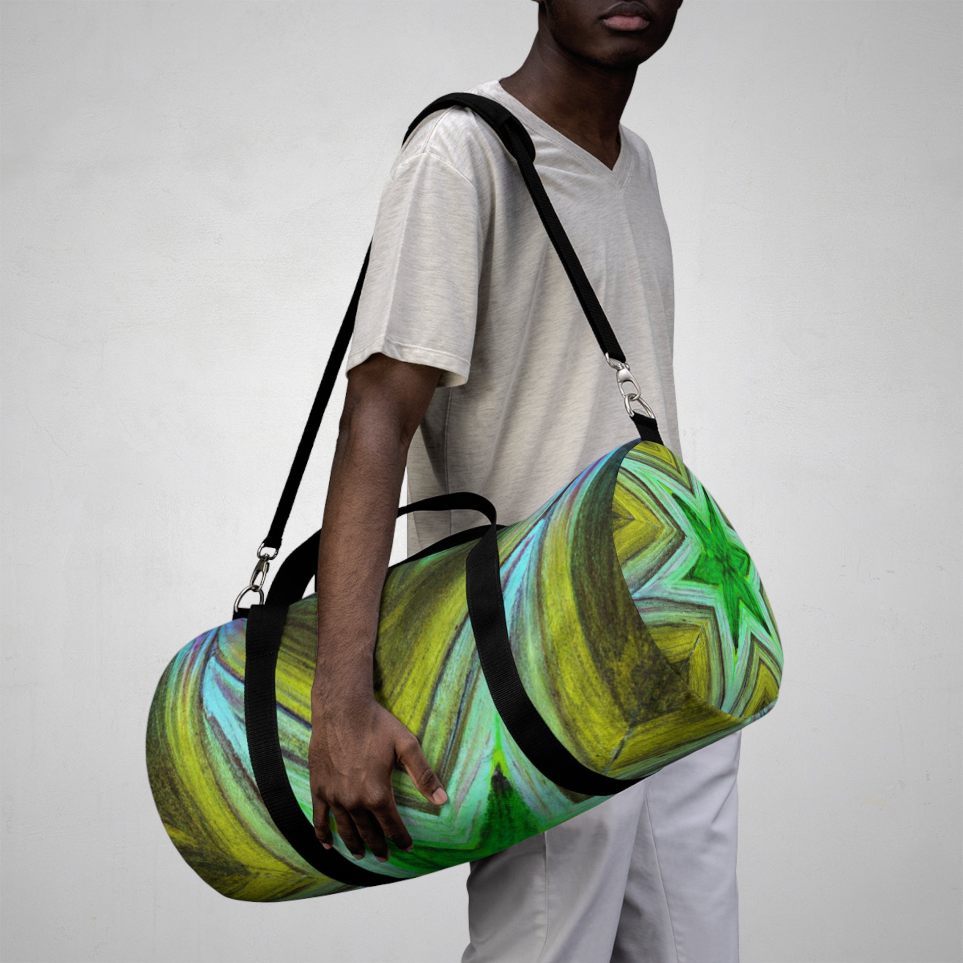 This eye-catching dufflebag is perfect for any adventure! It features bright, vibrant colors and innovative 3D lines designs in a mix of trippy stars, kaleidoscope and abstract digital art. All this combined creates a unique and stylish look perfect for your on-the-go lifestyle. #dufflebag #style #vibrant #trippystars #kaleidoscope #abstract #trippy #3Dlines #digitalart #art #colors #innovative #perfect #adventure #voguish #travel #winner #fitlifestyle #trendy #bold #attractive #catchy #stunning #unique #stylish #on-the-go #lifestyle #bright #durable