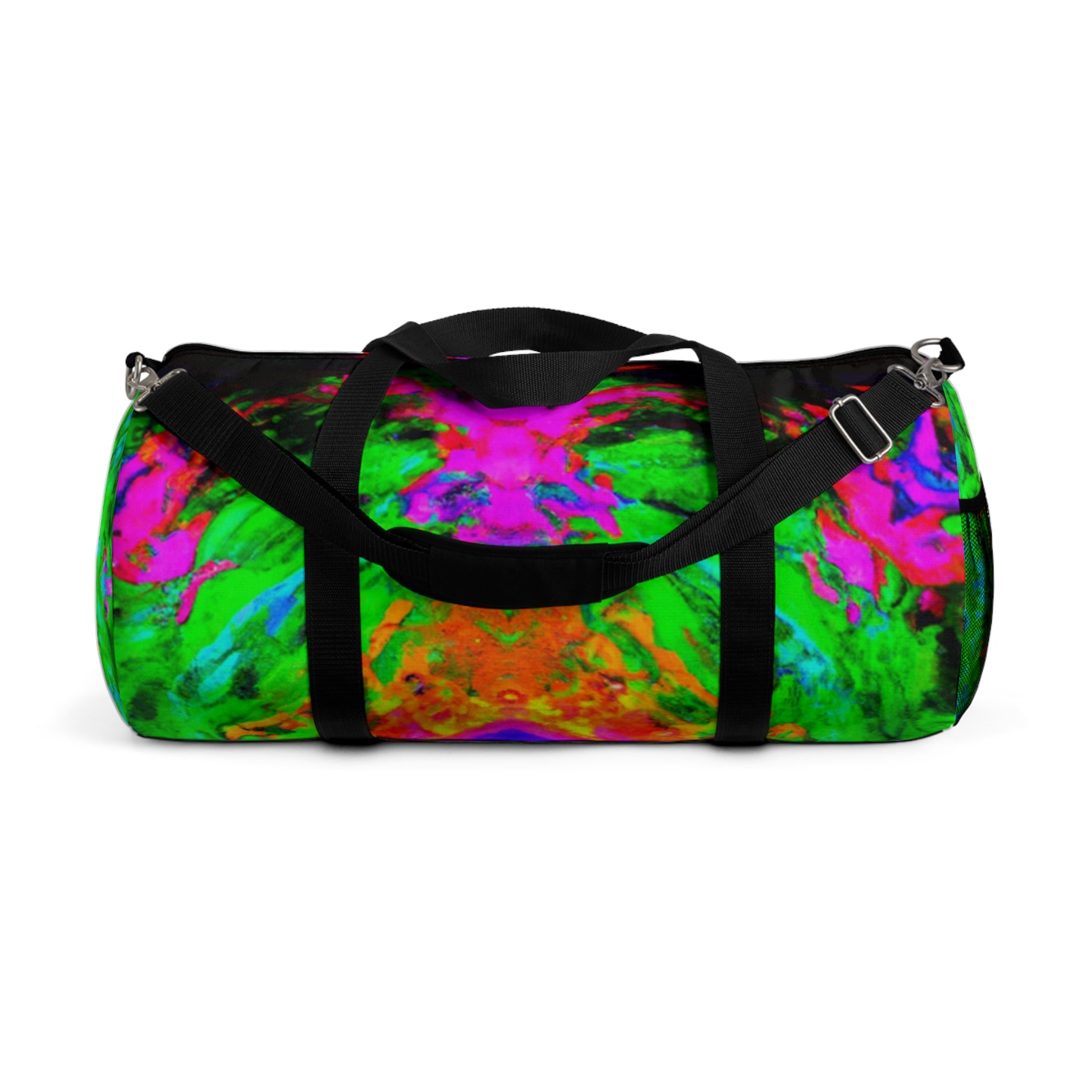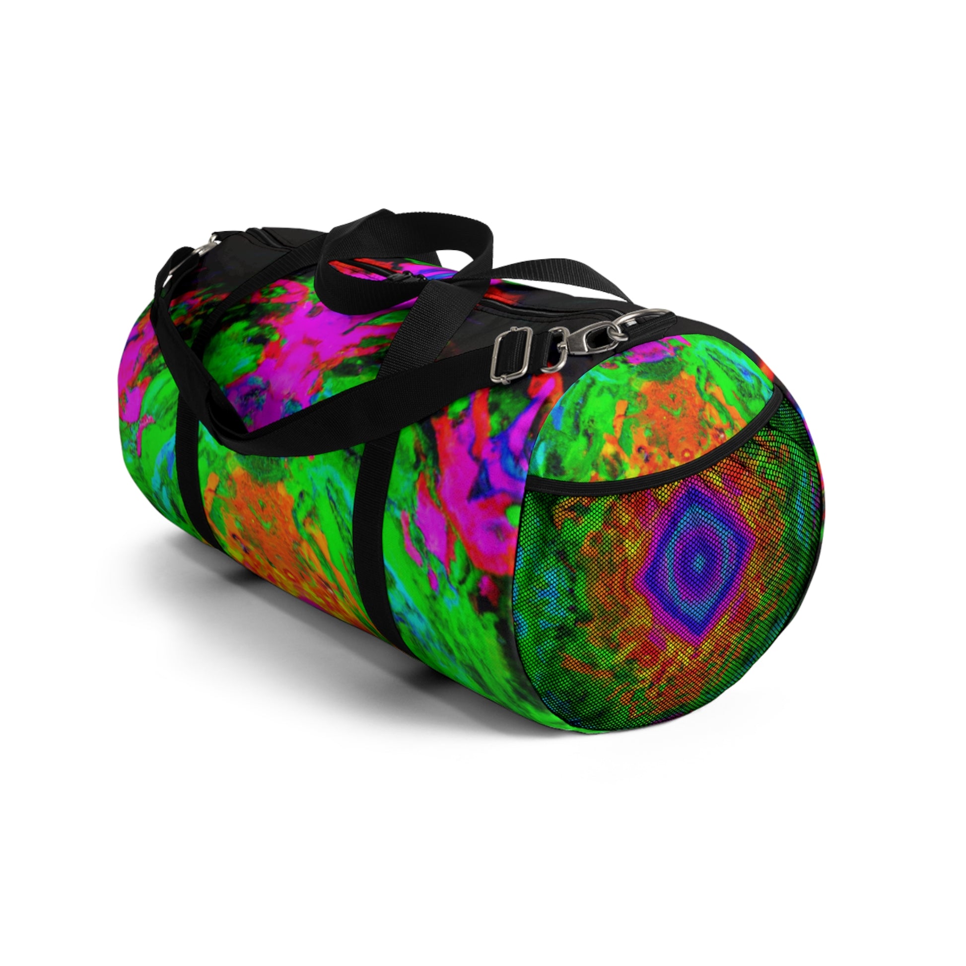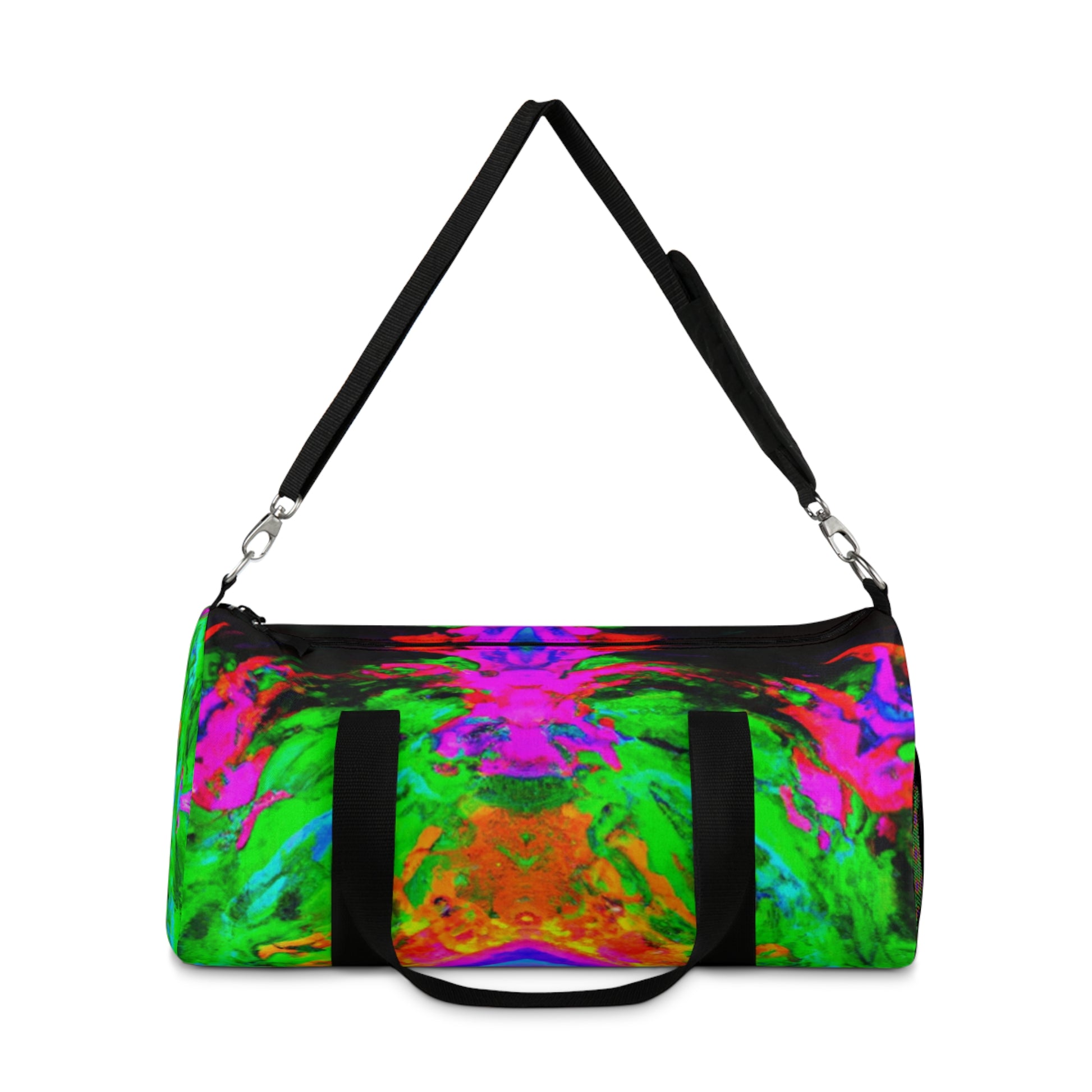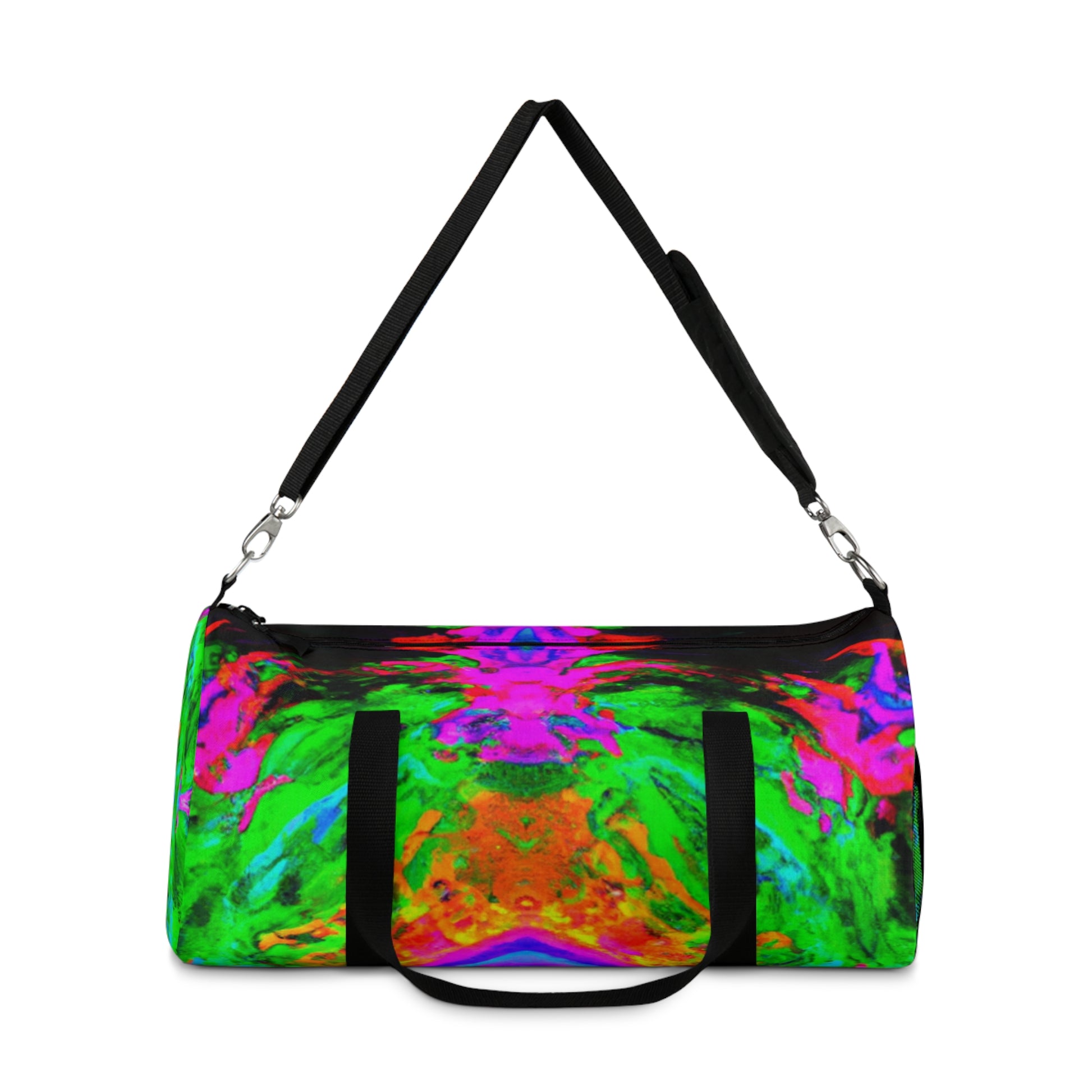 This dufflebag features trippy pineapple, kaleidoscope, abstract, digital art and neon colors, all in bright HD designs. It's bold and eye-catching, sure to make you stand out among the crowd. Bring some color to your day with this unique piece of functional art! #trippy #pineapple #kaleidoscope #abstract #digital #art #neon #colors #HD #designs #uniqueness #standout #functional #art #colorful #fashionable #bag #statementpiece #musthave #style #accessories #toptrends #multicolor #funky #onfleek #fashionweek #gothamstyle #runwayready #stylish #outfitoftheday