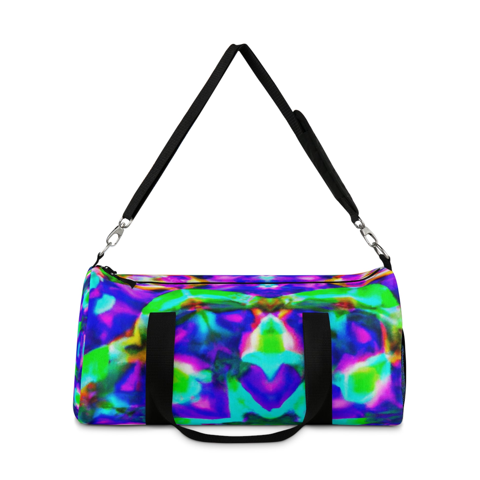 This dufflebag is perfect for adding a fun and unique flare to any outfit! With its trippy pineapple, kaleidoscope, abstract, digital art, neon colors, HD designs, you'll be sure to make a statement. Durable and well-crafted, this bag is perfect for day trips and overnight adventures! #dufflebag #fashion #trippy #pineapple #kaleidoscope #abstract #digital #art #neon #colors #HD #designs #durable #stylish #unique #fun #statement #daytrip #adventures #standout #fashionista #style #vibrant #bold #exciting #original #affordable #quality