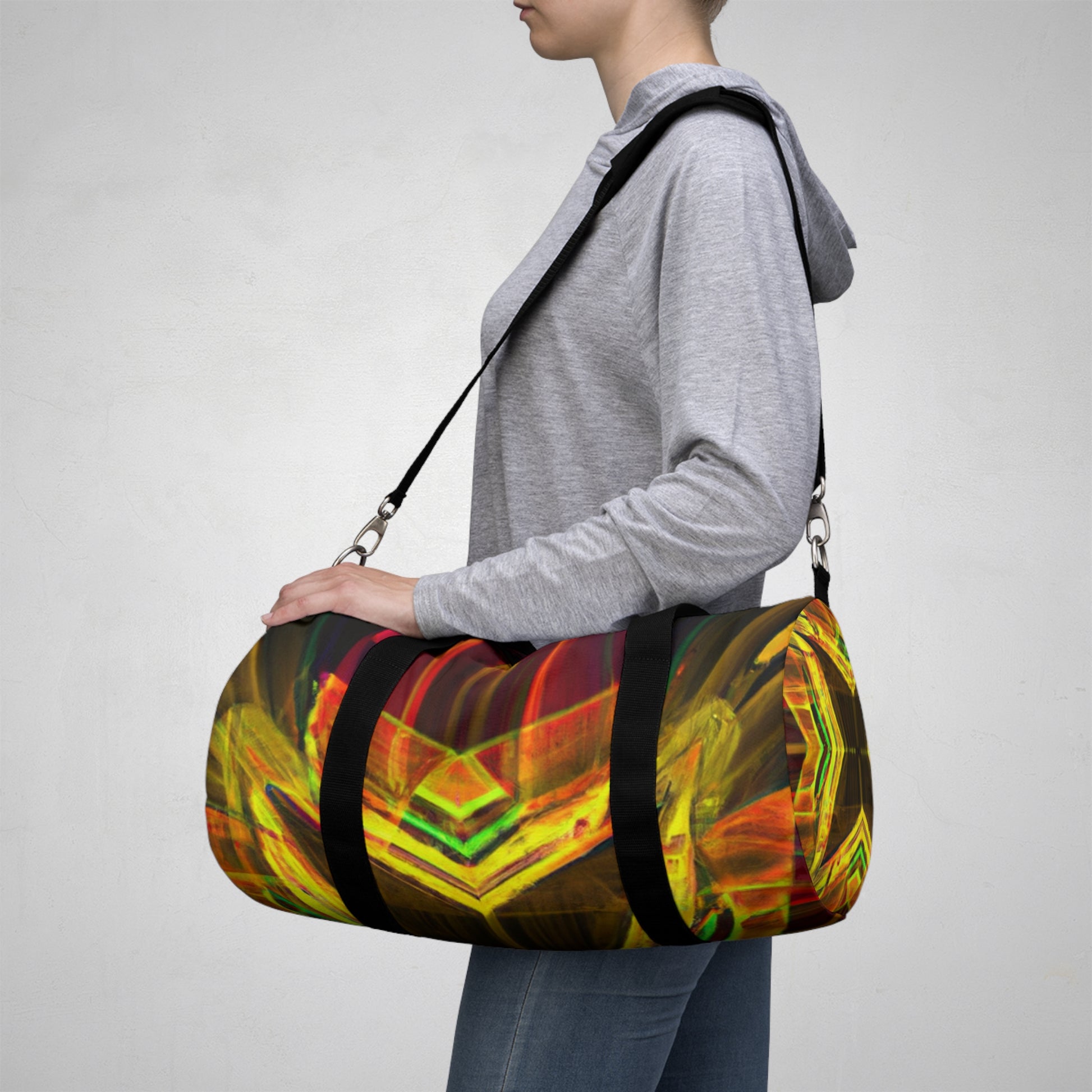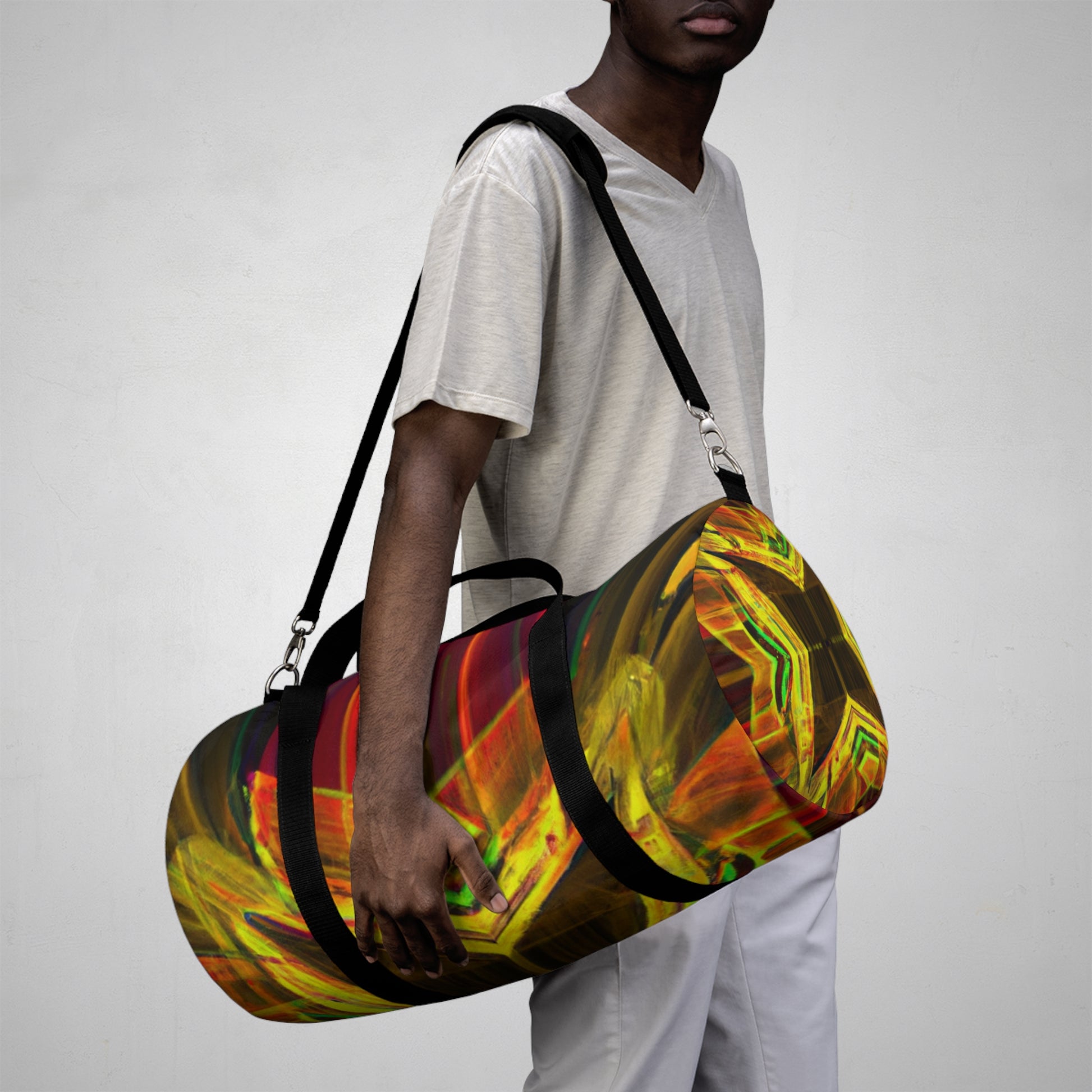 This eye-catching duffle bag features a vibrant digital art design with trippy stars, kaleidoscope, abstract, and 3D line patterns. Perfect for a stylish on-the-go look, the bag is made of durable materials yet it's lightweight enough to take everywhere you go. With its bold and beautiful colors, you'll be sure to make a statement wherever you go. #dufflebag #3Dlines #trippystars #kaleidoscope #multicolor #digitalart #fashionaccessory #vibrantcolors #eye-catching #strongmaterial #lightweight #makeastatement #abstractpattern #on-the-go #stylishlook #boldbeauty #everywhereyougo #durablematerials #statementbag #tripstarsduffelbag #fashionable #multidimensional #digitalpatterns #abstractart #kaleidoscopicpatterns #trippystyle #statementpiece