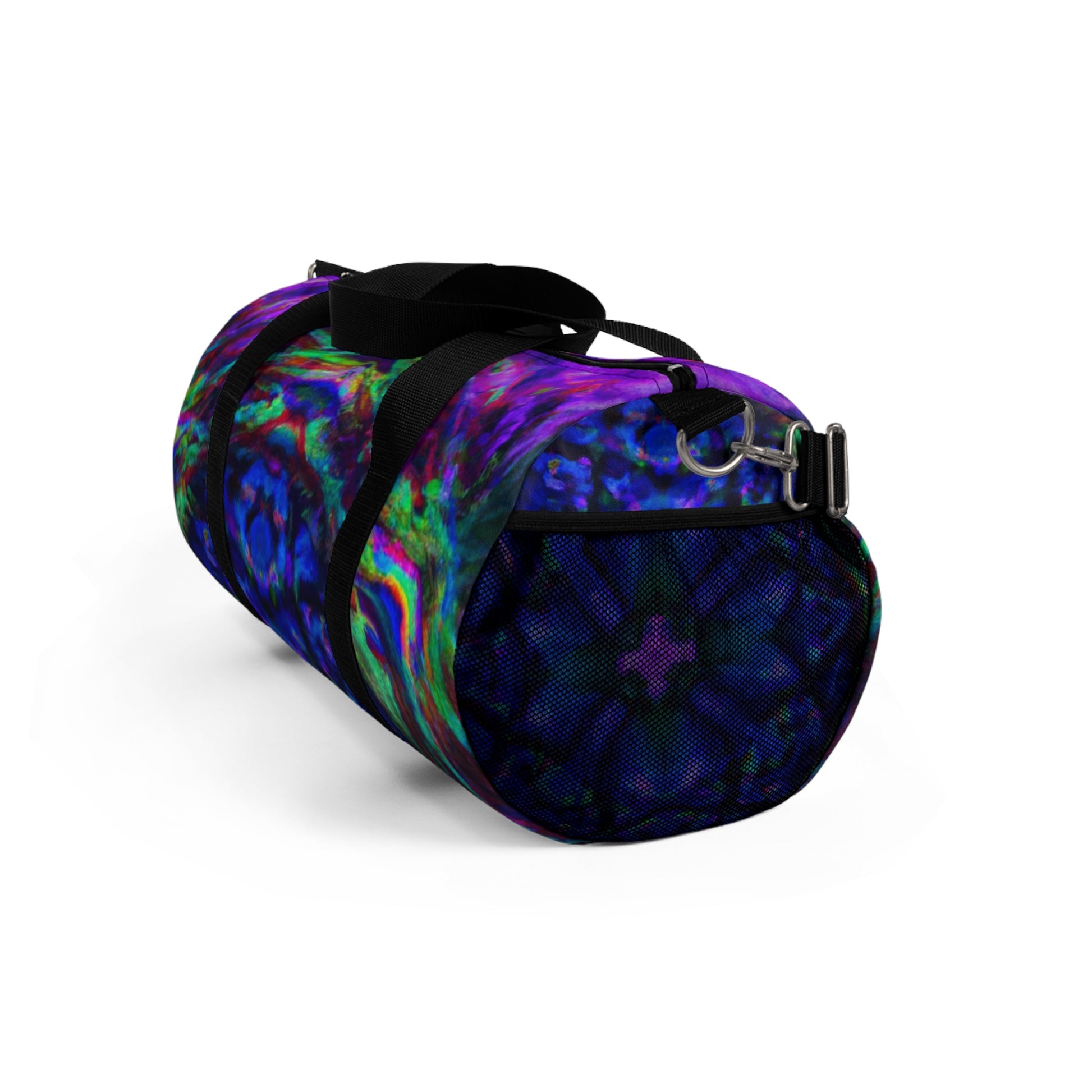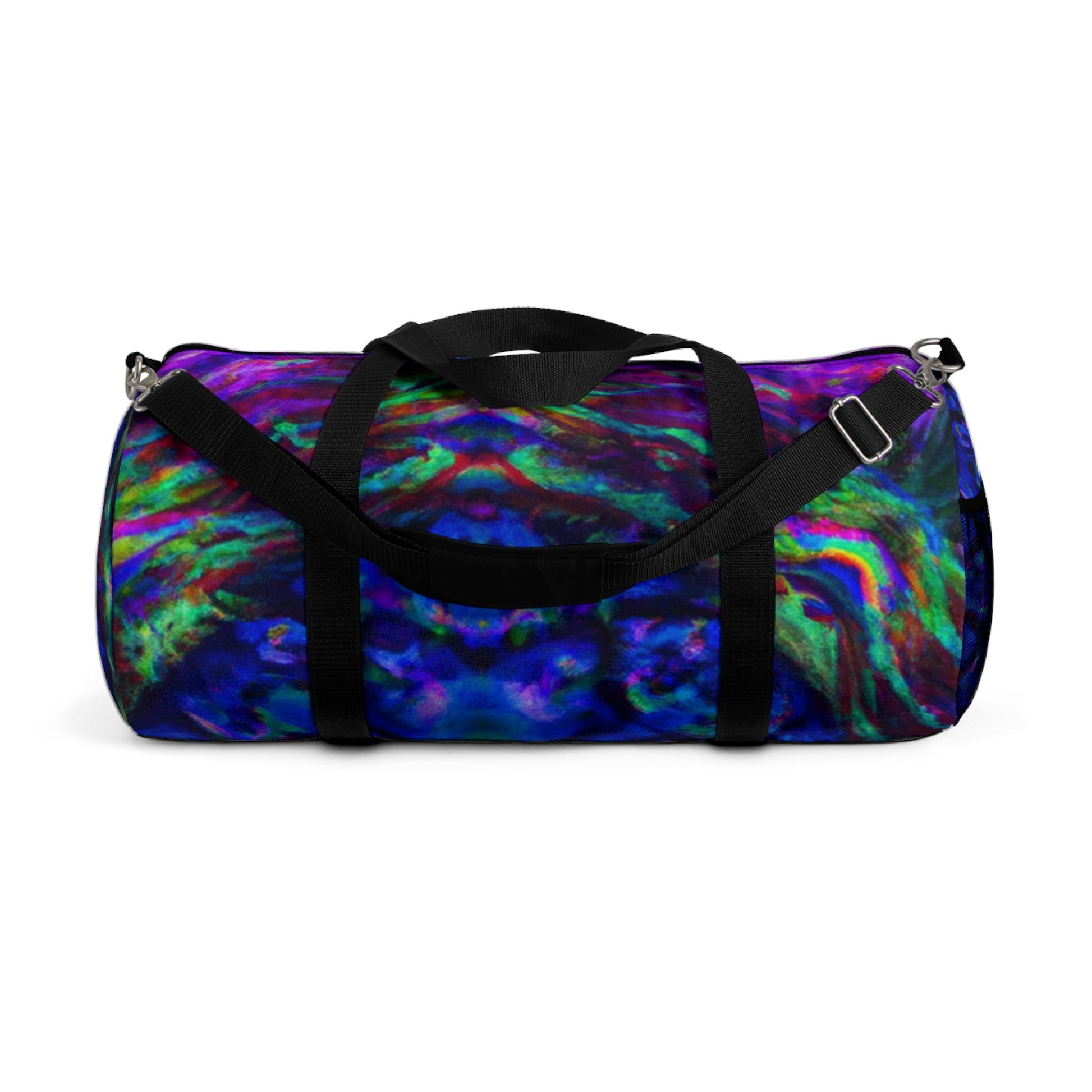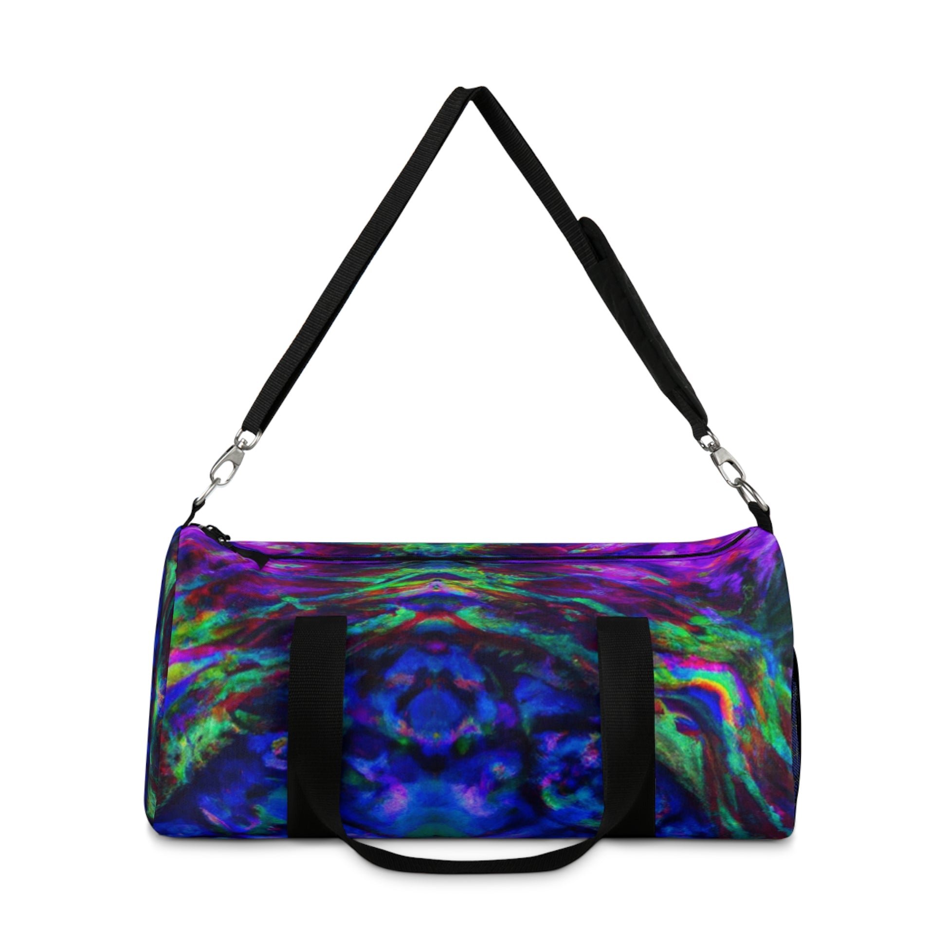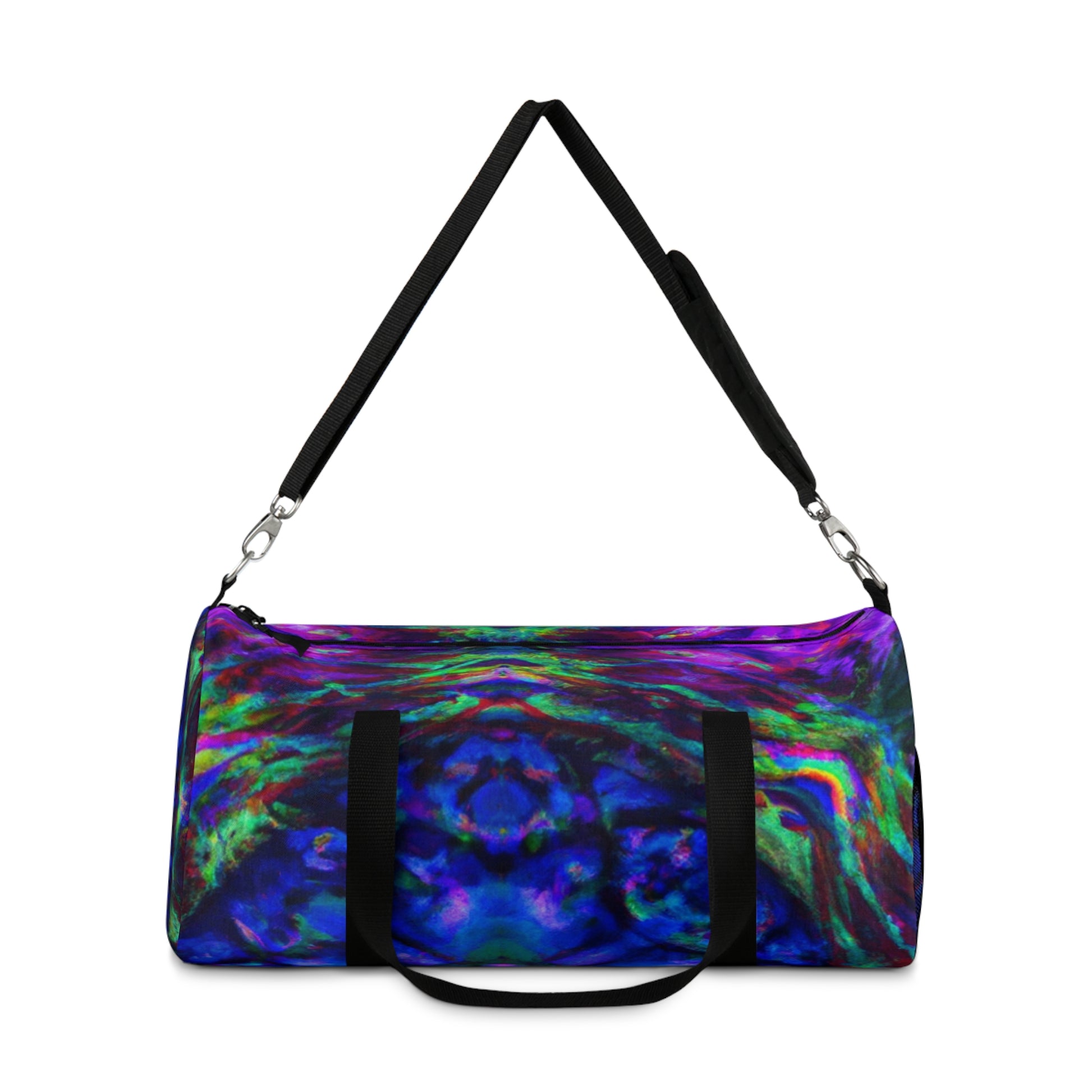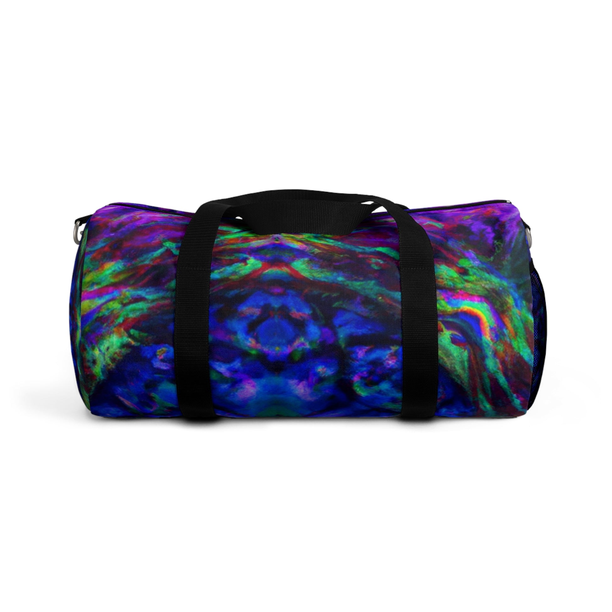 This duffle bag packs a punch! The trippy pineapple, kaleidoscope, abstract, digital art, neon colors, and HD designs make it a refreshing way to spice up your outfit. It's perfect for showing off your style and bringing a bit of unique flair to any outfit. #Kaleidoscope #Pineapple #Abstract #DigitalArt #Art #Statement #Style #Vibes #Fashion #Trend #Fun #HDDesigns #NeonColors #Bold #Punch #Unique #Fresh #Bright #Retro #Bag #Dufflebag #Durable #Lightweight #Travel #Comfy #Colorful #Funky