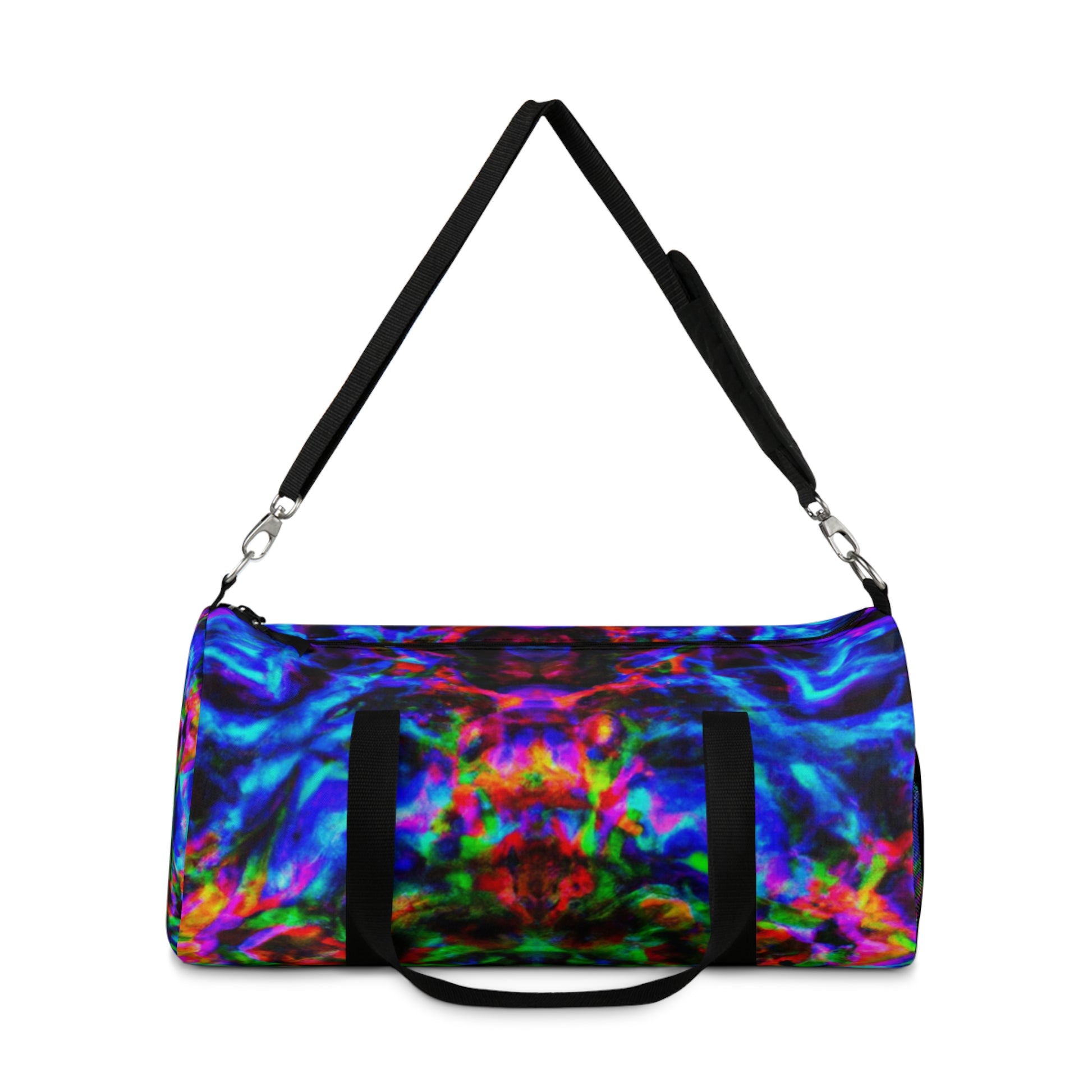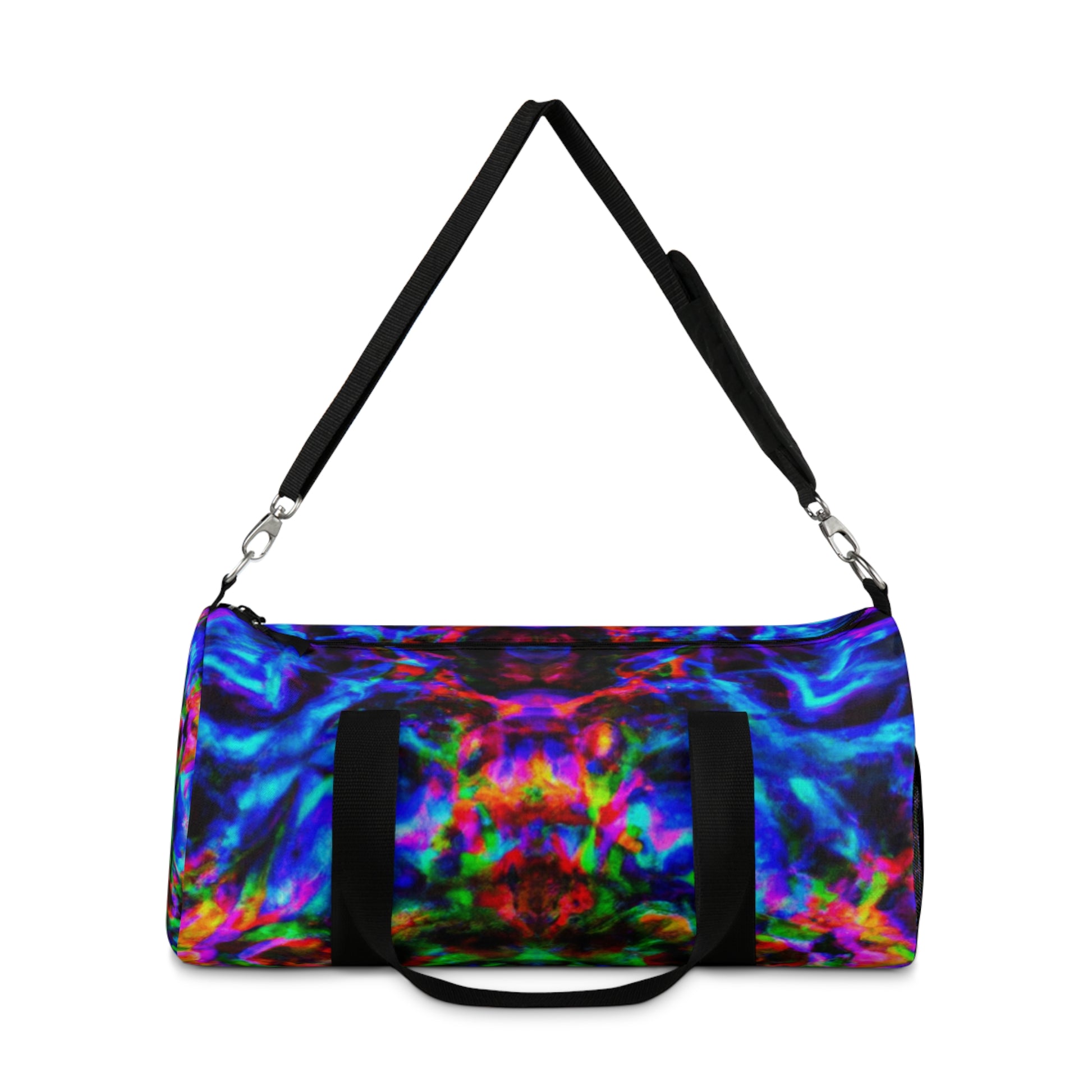 This eye-catching dufflebag is perfect for adding a trendy touch to any style! Printed with playful designs in trippy pineapple, kaleidoscope, abstract, digital art and neon colors in HD, it will instantly give you a head-turning look. With its roomy size and adjustable straps, you can easily take this bag on your next adventure with you. #dufflebag #neon #kaleidoscope #pineapple #style #fun #trendy #digitalart #abstract #travel #HD #unique #fashion #and #statement #lightweight #comfortable #onpoint #readytogo #travelbag #adventure #colors #flexible #styleitright #trending #trippy #amazing #bag
