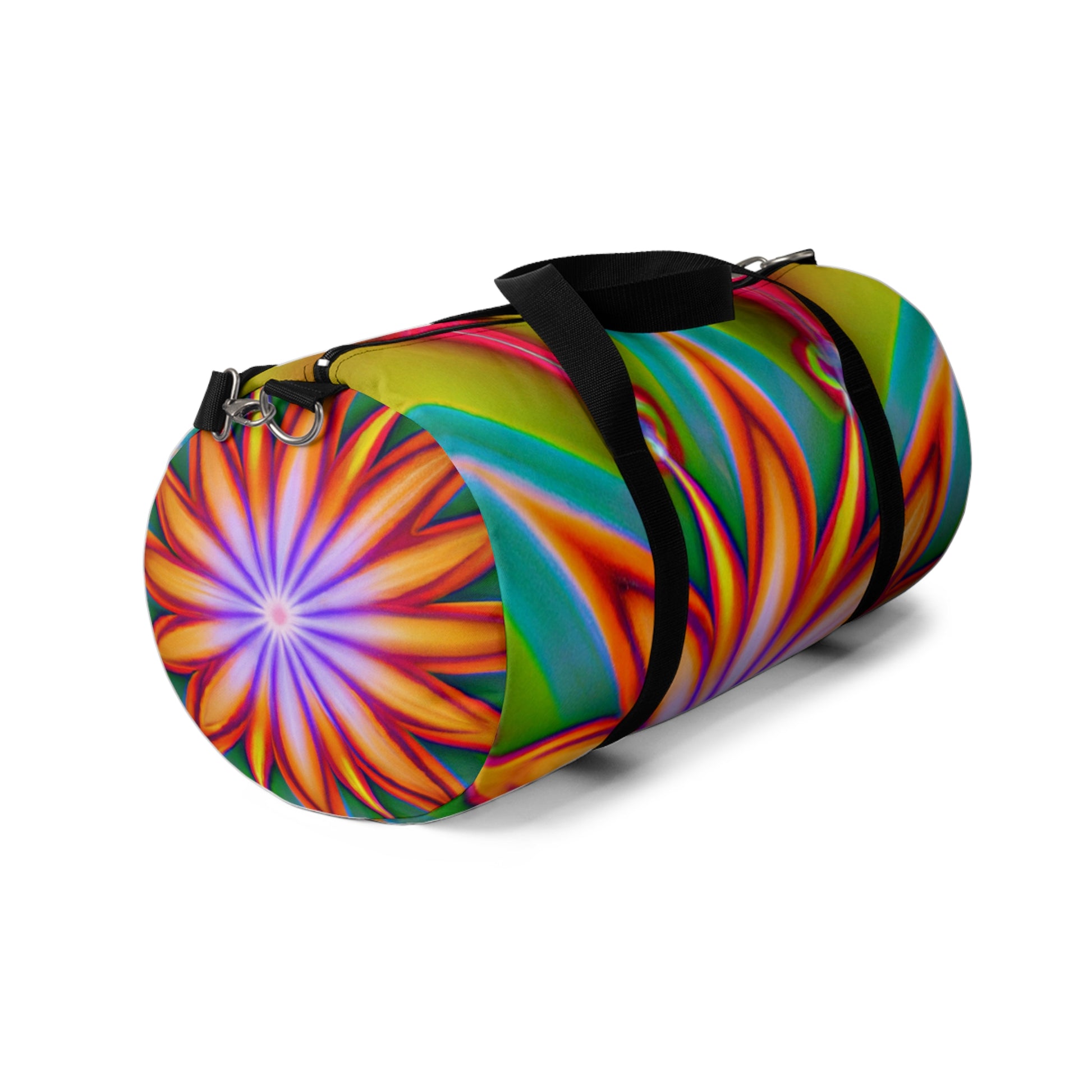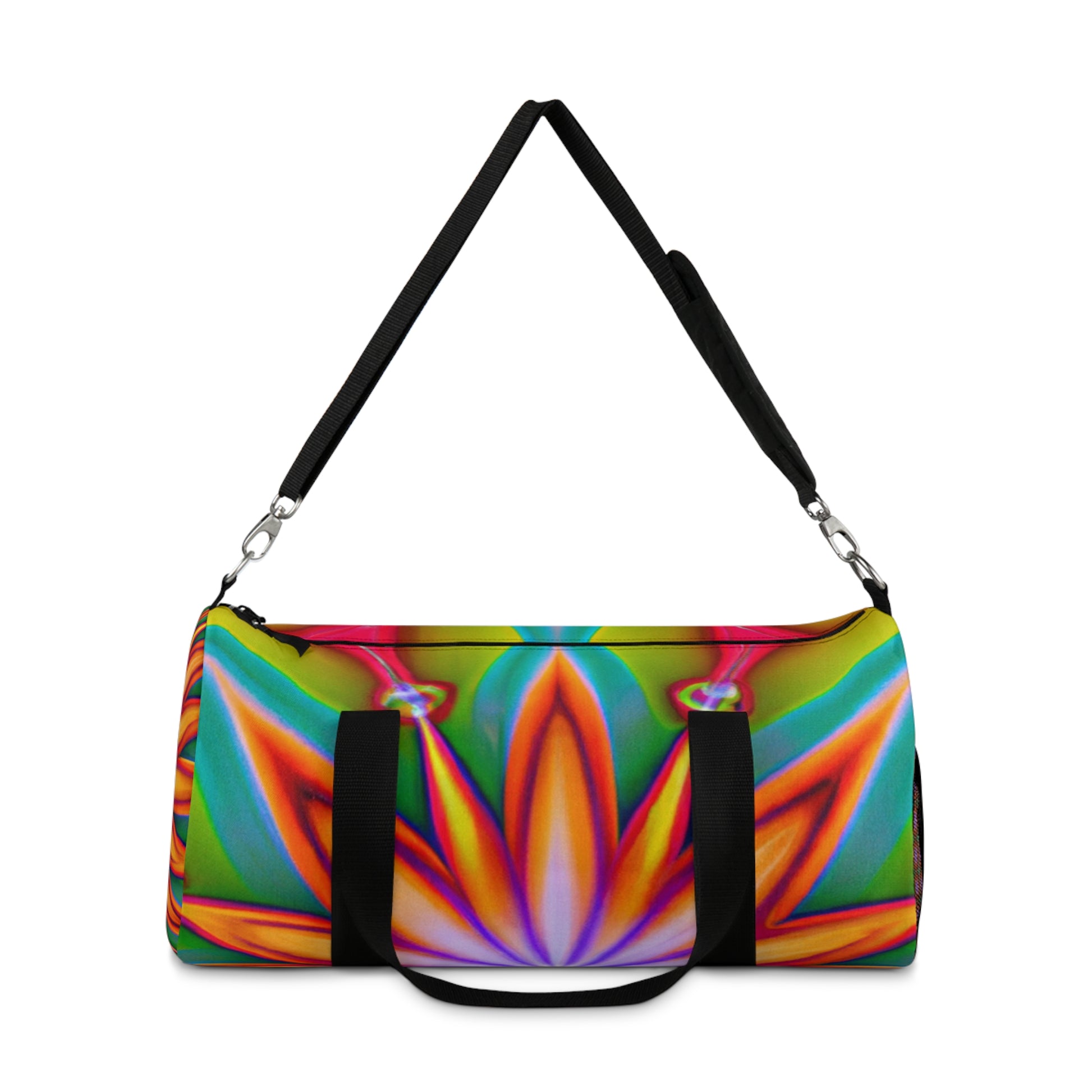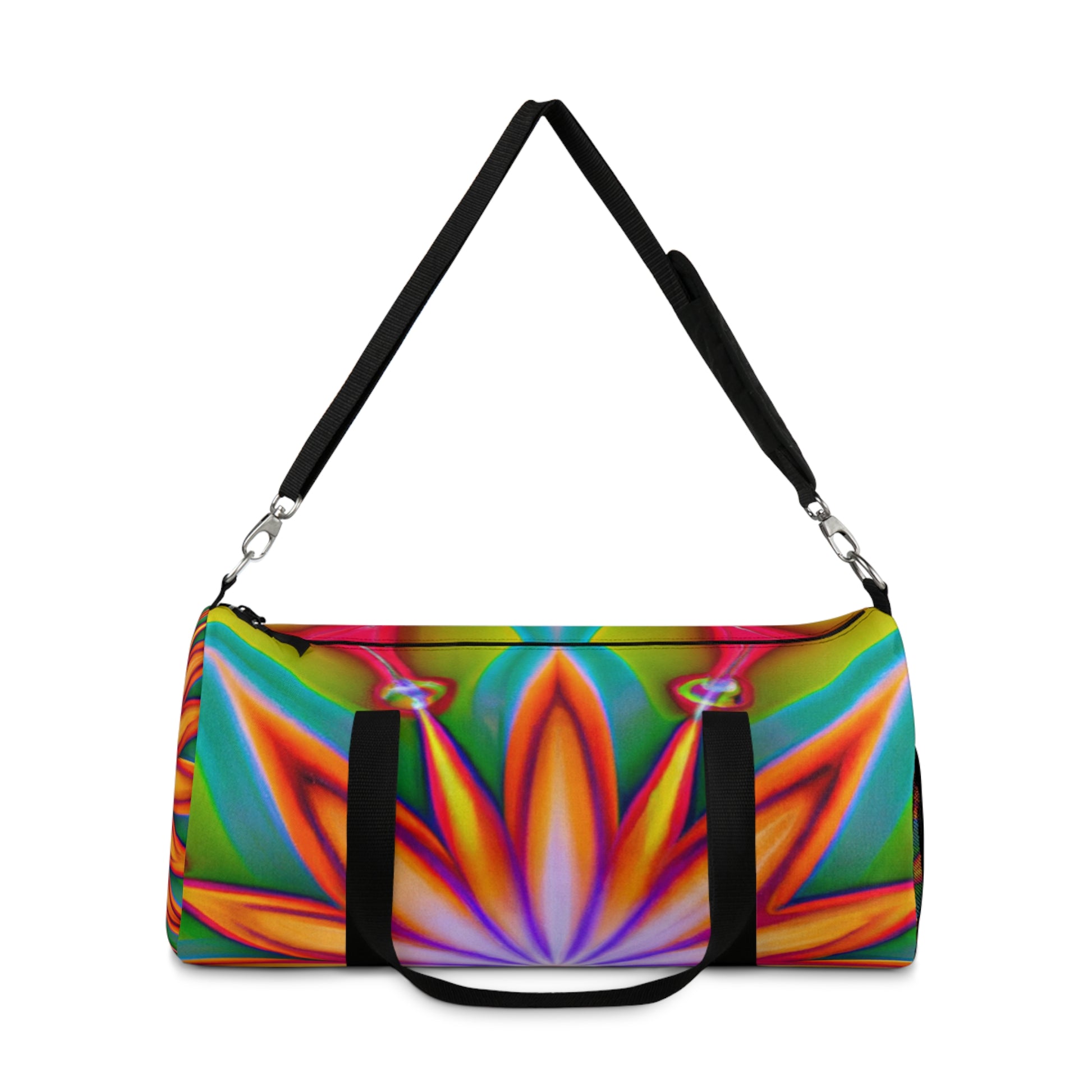 This free-spirited dufflebag is the perfect accessory to show off your bohemian side. Vibrant, digitally printed art incorporates trippy stars, kaleidoscope, abstract, 3D lines and digital art all in one. Made with 100% cotton canvas, it has double straps for a comfortable fit and lots of room for day-to-day items. Whether you are travelling or simply need more space, this duffle bag is just what you need! #bag #dufflebag #vibrant #kaleidoscope #abstract #stars #3Dlines #digitalart #strikingdesigns #unique #bohemianstyle #styleinspo #baglover #fashion #travelaccessories #vacayready #trendy #ootd #trippyart #colorful #travelbag #standout #trippystars #kaleidoscopart #abstractart #3Dlinesdesigns #sassi #designerdufflebag