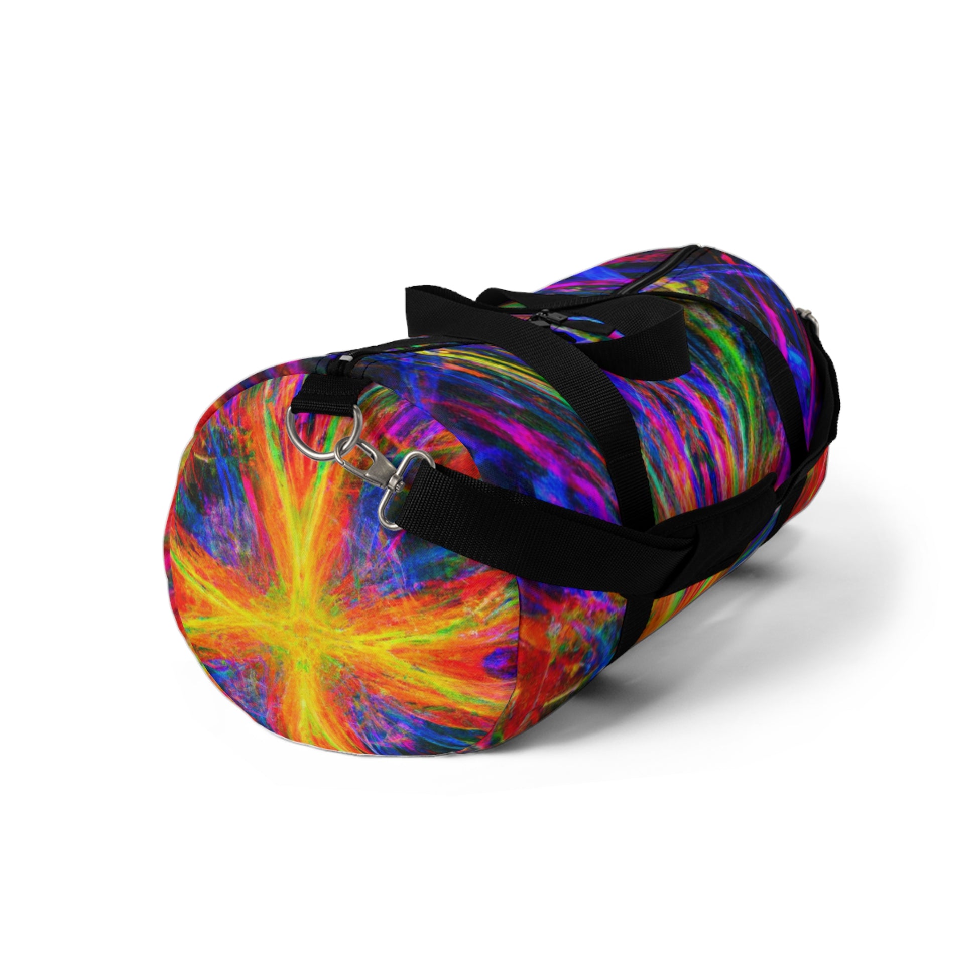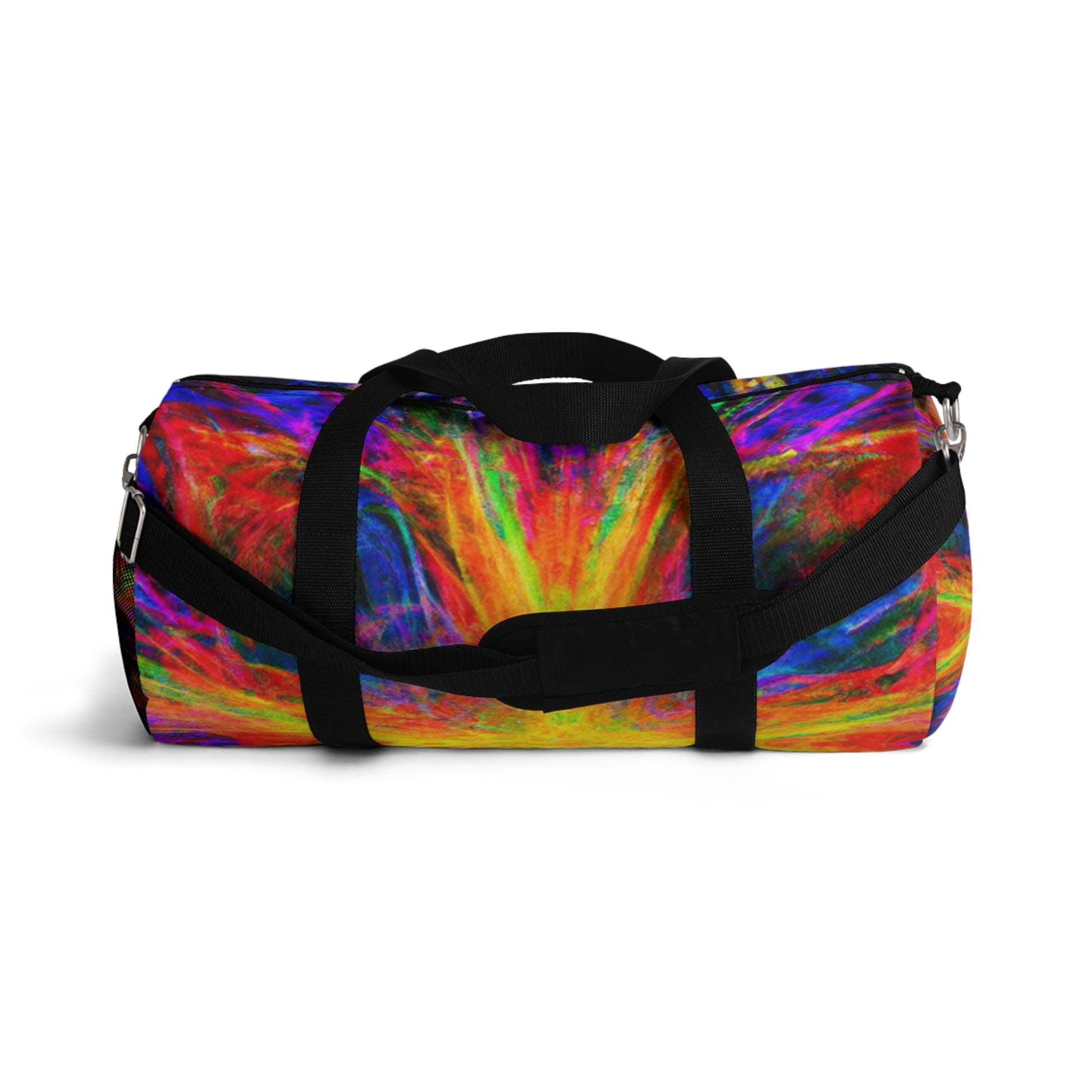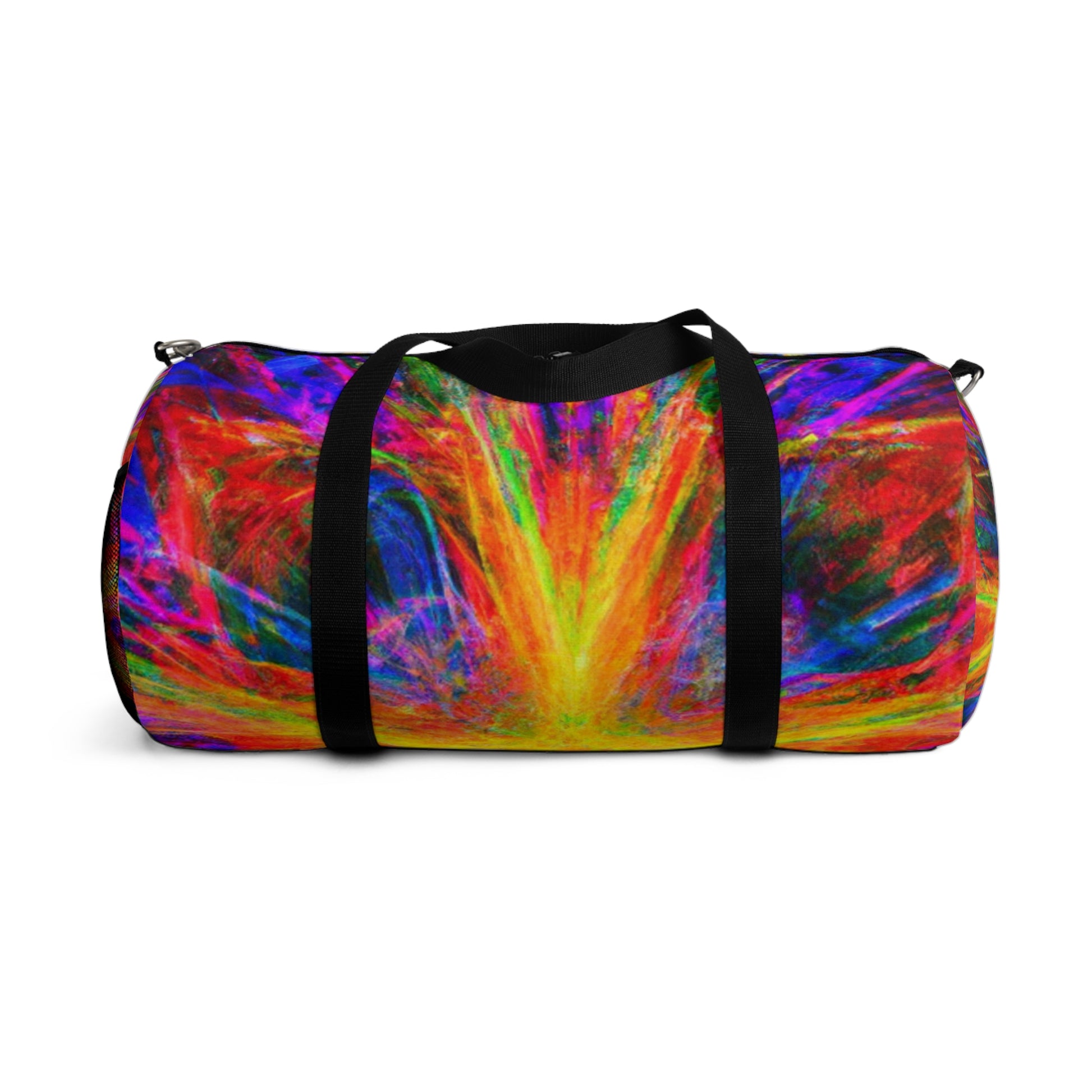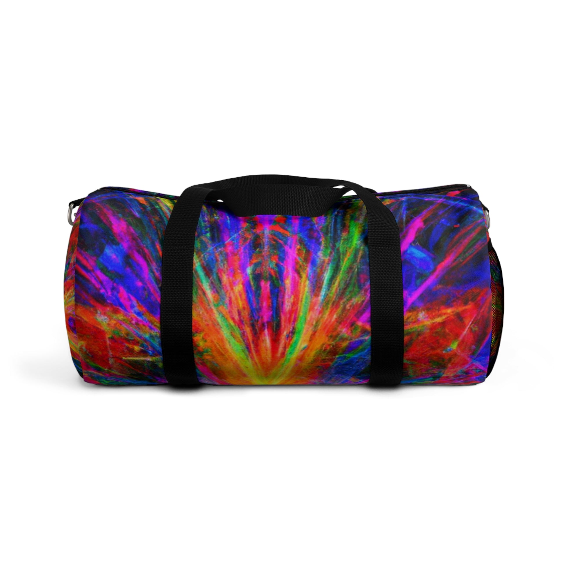 This unique and stylish duffle bag is adorned with an eye-catching print of trippy stars, kaleidoscope, abstract, digital art, and vibrant colors with 3D lines. The perfect accessory to add a splash of boldness to any outing! #trippystars #kaleidoscope #abstract #digitalart #vibrantcolors #3Dlines #dufflebag #fashionaccessories #unique #stylish #bold #outing #accessories #bag #daytrip #style #travel #adventure #vibes #shopping #trending #weekendbag #vibrant #fashionista #eye-catching #artsy #travelbag #journey