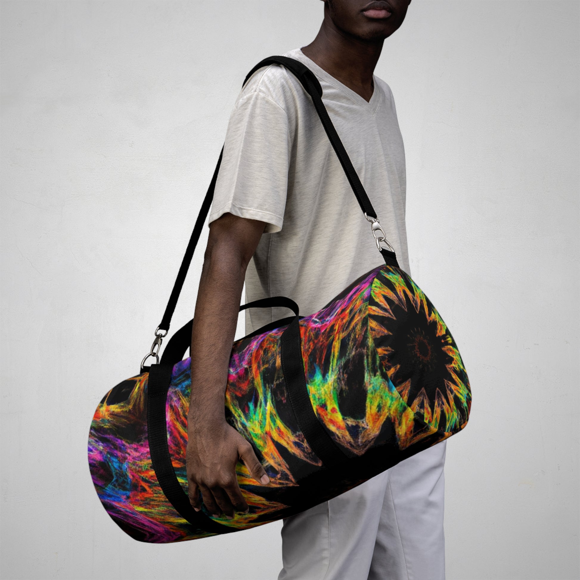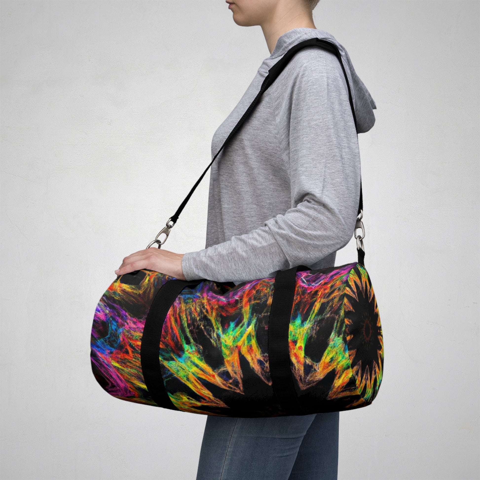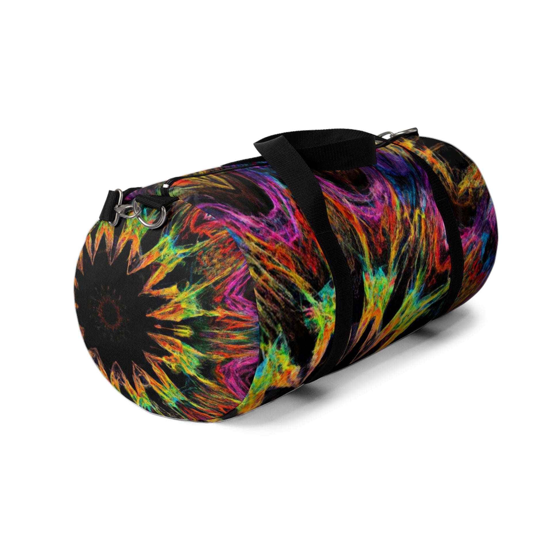 Add a unique, trippy touch to your outfit with this duffle bag! Featuring bold digital art styles like stars, kaleidoscope patterns, abstract designs, & 3D lines, this bag radiates vibrancy with its vibrant colors. Whether you're using it for the gym, a fashionable picnic, or traveling, it makes a statement with its artsy & modern patterning– perfect for looking stylish & on trend. #Dufflebag #DigitalArt #Stars #Kaleidoscope #Abstract #3DLines #Vibrance #Trippy #OutfitGoals #FashionGoals #Unique #Trendy #3DArt #Fashionable #Picnic #GymBag #TravelBag #Artsy #Modern #StyleGoals #Daytrip #Vibes #Adventure #Bold #Funky #Fashionista