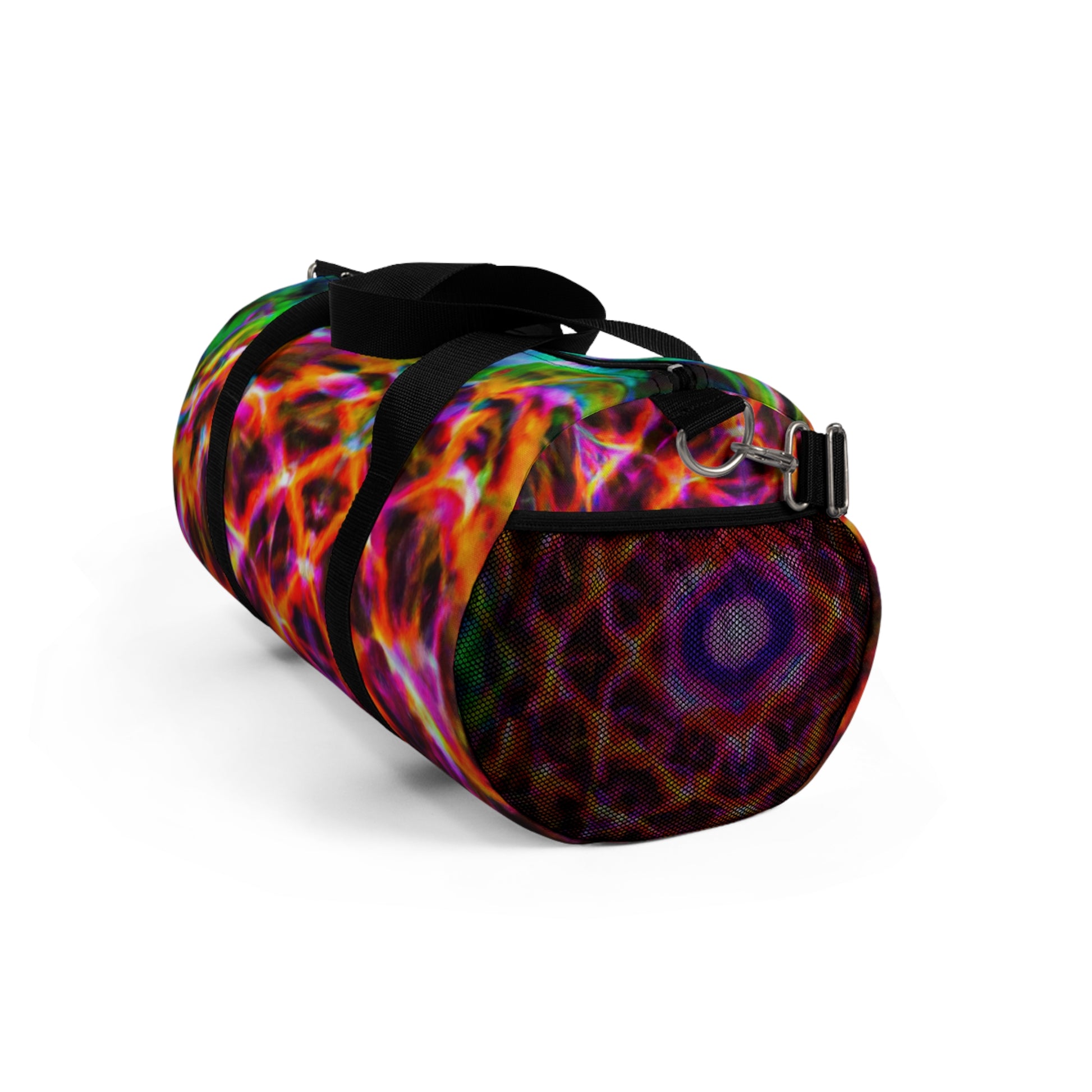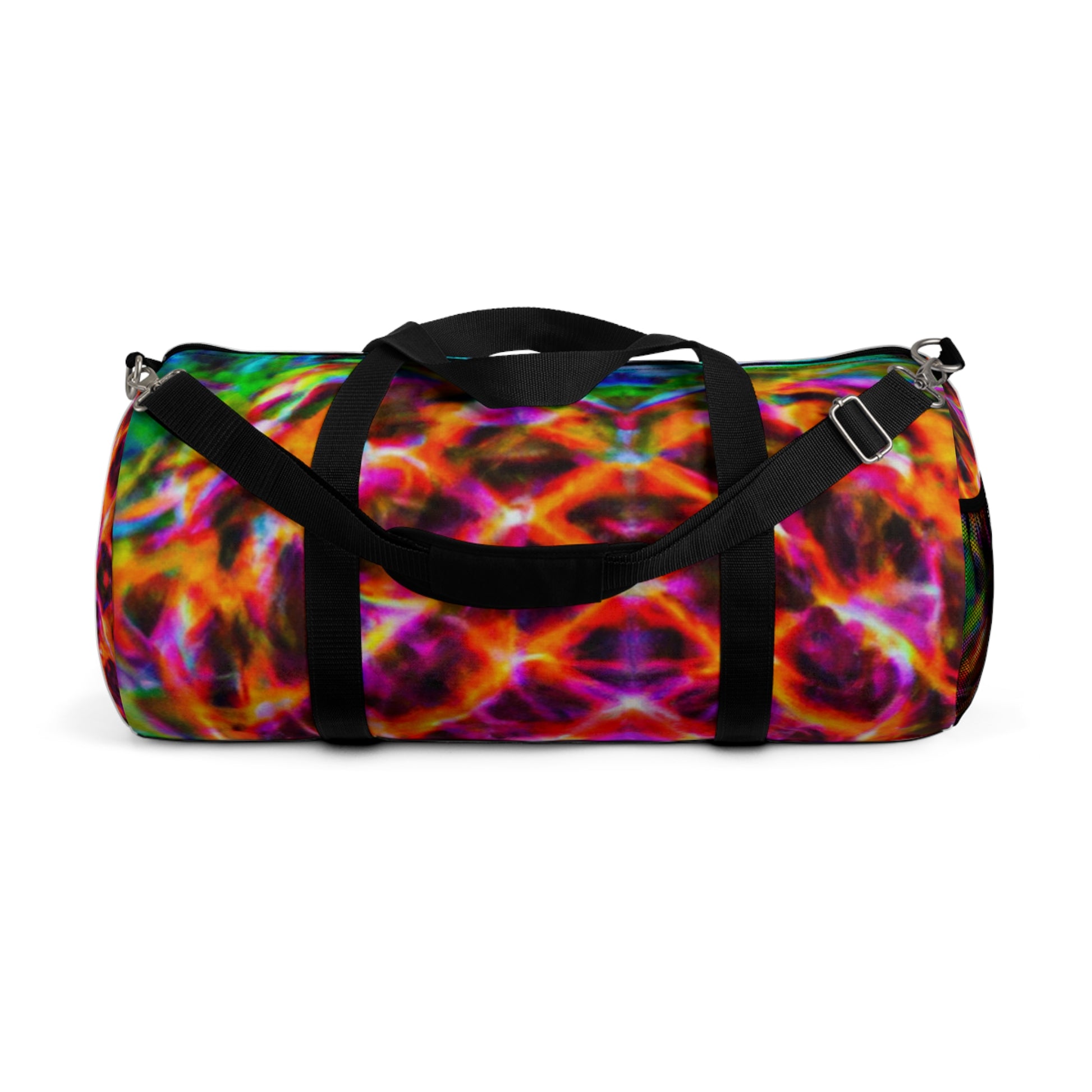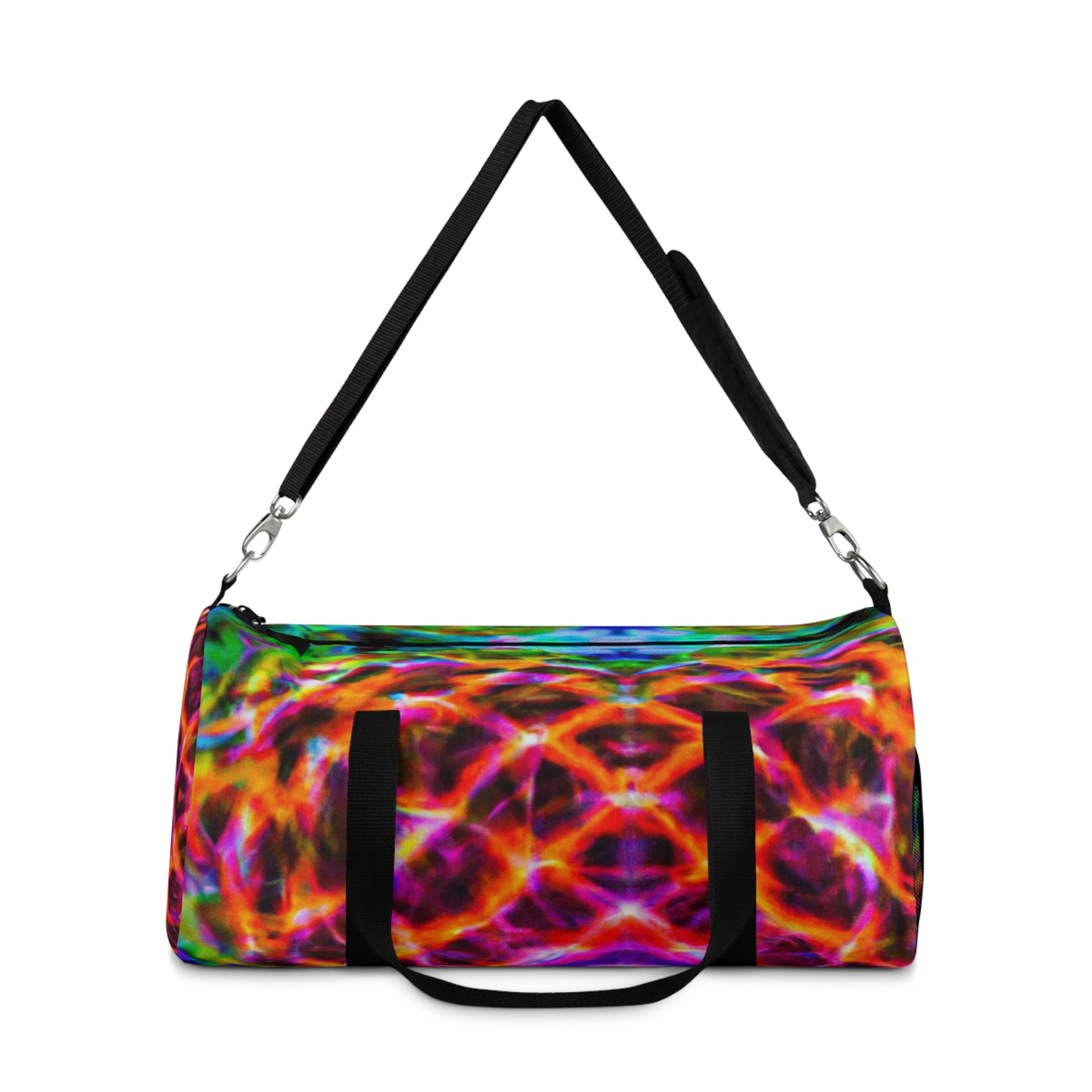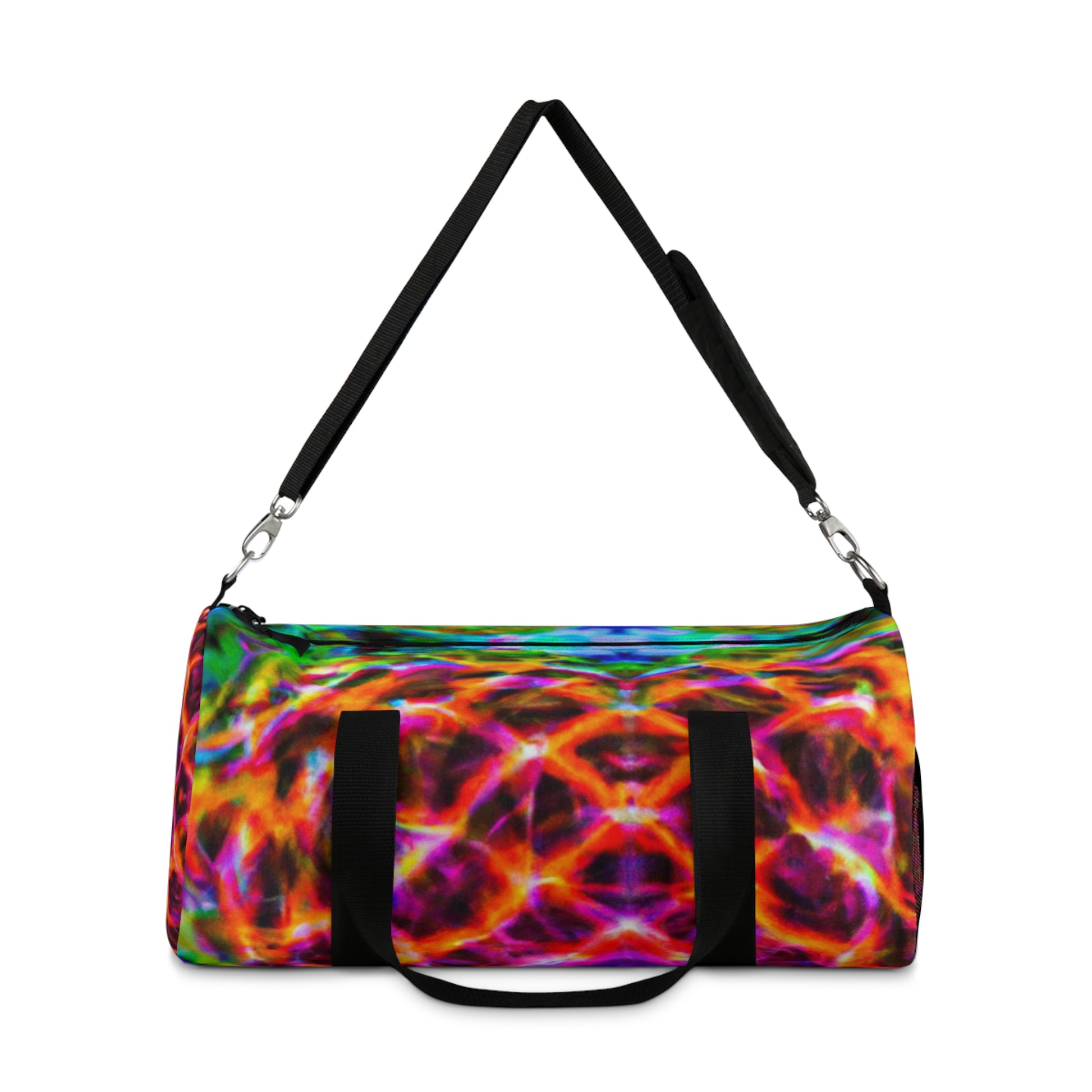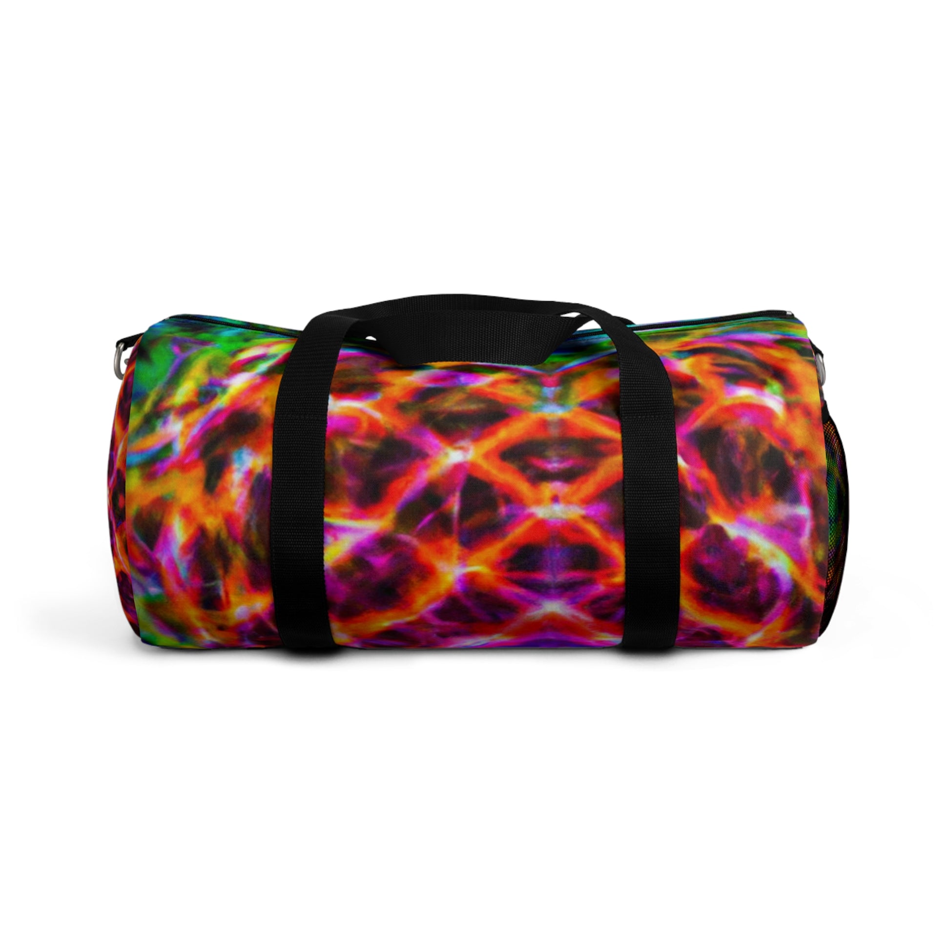This top-of-the-line duffle bag features super vibrant, HD, trippy pineapple, kaleidoscope, abstract, and digital art designs with neon colors. It's a fun and eye-catching way to keep all of your essentials secure and stylish! #style #abstract #art #neon #digitalart #trippy #pineapple #kaleidoscope #dufflebag #travelbag #trendy #fashion #bag #vibrant #hd #highdefinition #onpoint #unique #unisex #fresh #hip #standout #trending #eye-catching #sporty #lookgoodfeelgood #smartstyle