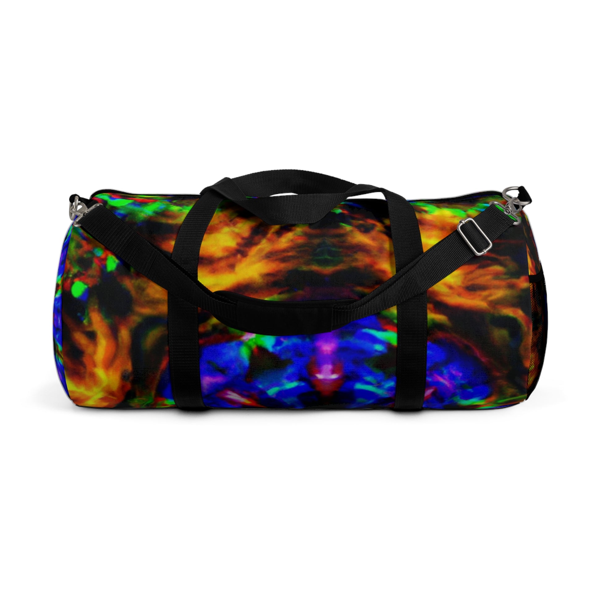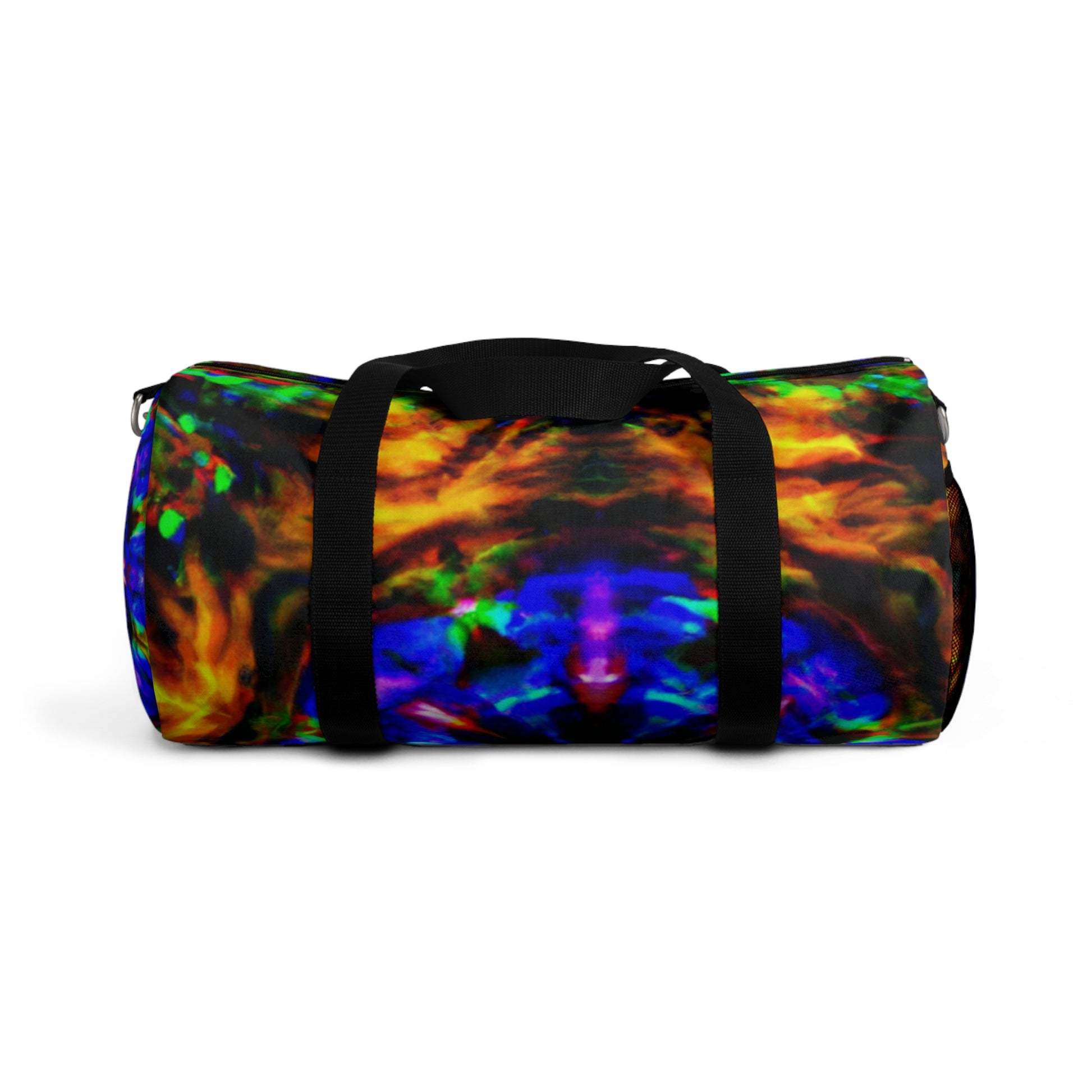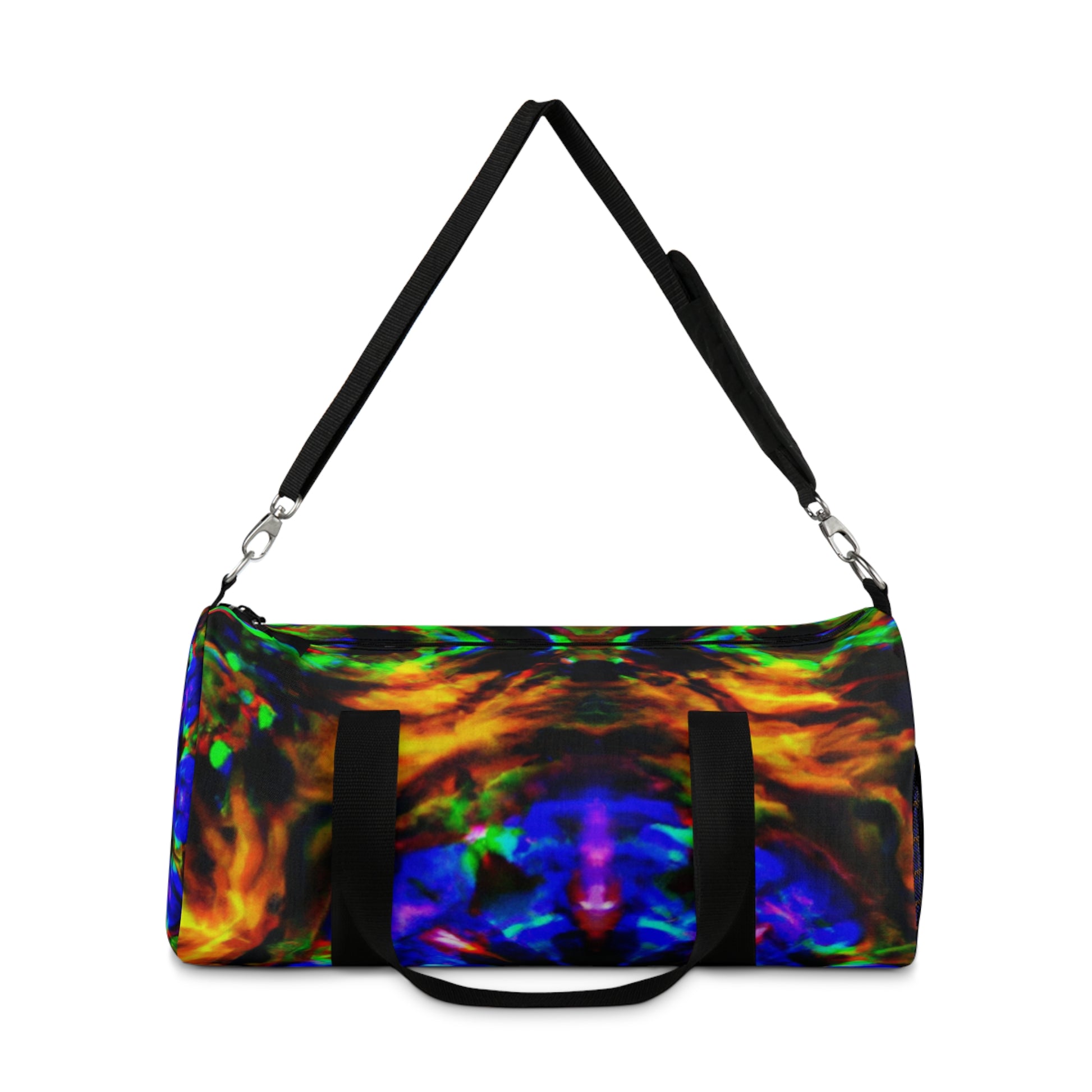 This vibrant duffle bag with HD trippy pineapple, kaleidoscope, abstract, digital art, and neon colors is eye-catching and perfect for showing off your style! With plenty of storage space, it's ideal for a weekend away. #dufflebag #pineapple #kaleidoscope #abstract #digitalart #neoncolors #HD #vibrant #style #storagespace #weekendaway #fashionable #unique #luxury #bags #travel #baglife #onpoint #expression #art #colorful #bagslover #lifestyle #sporty #trippy #standout #highdefinition #purse #accessories #modernfashion