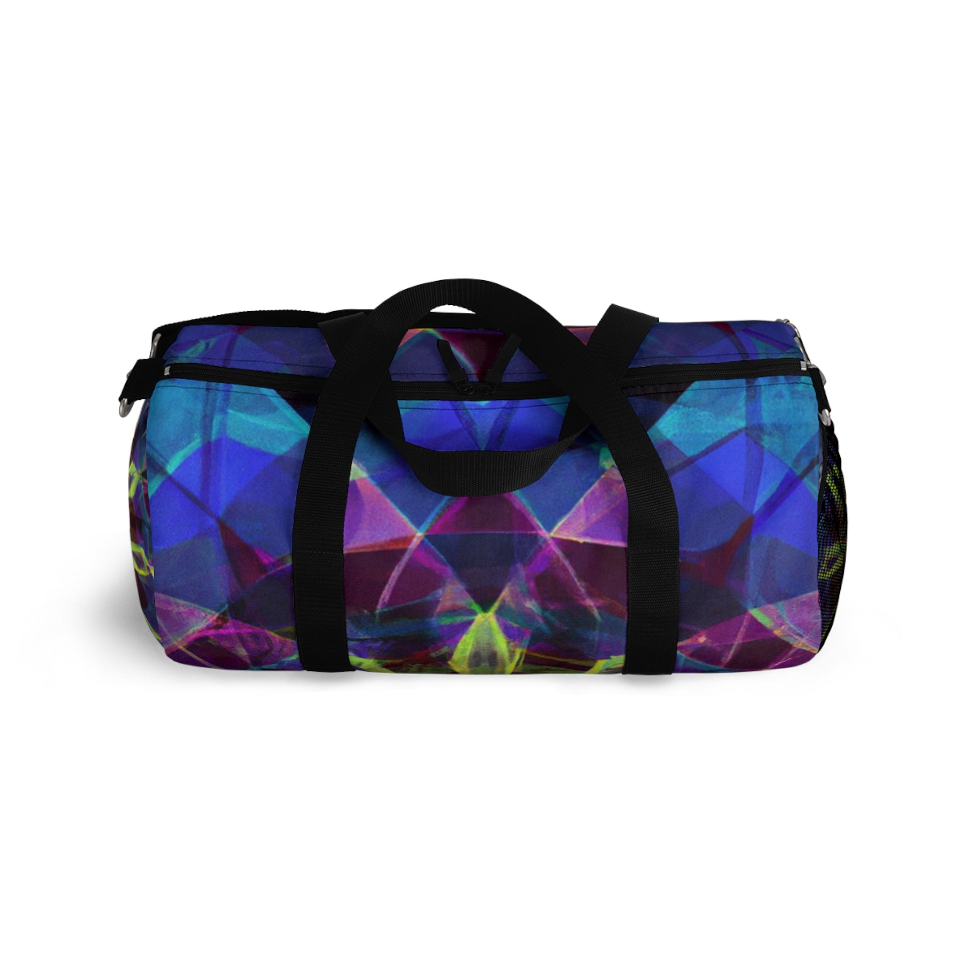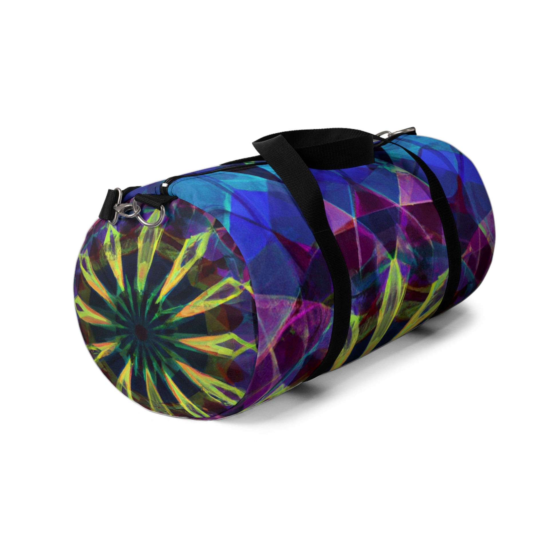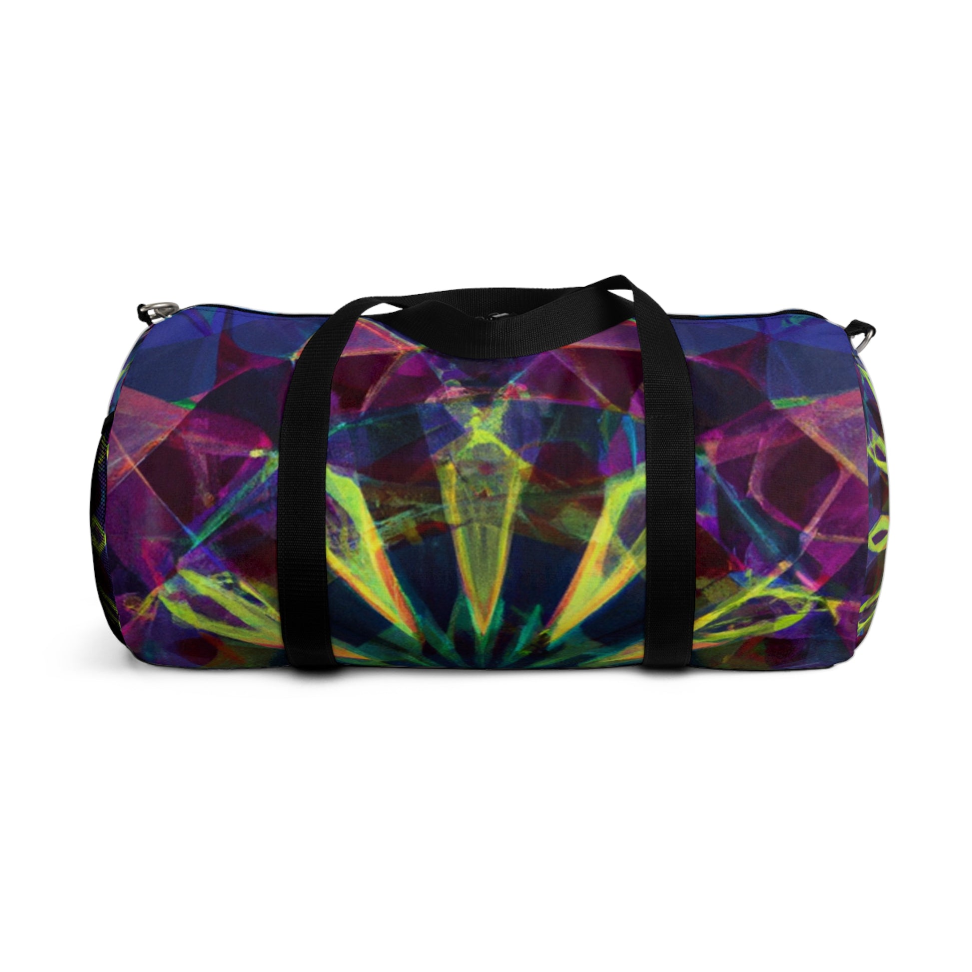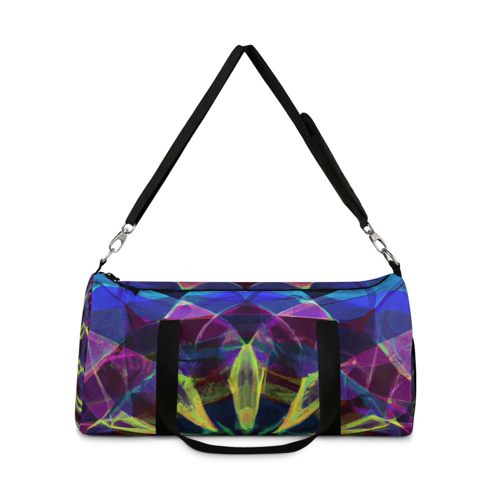 This eye-catching dufflebag features vibrant colors, abstract, digital art, 3D lines and Trippy stars, kaleidoscope designs on it. Stand out from the crowd and carry this stylish yet spacious bag with you anytime, anywhere. With two handles and adjustable shoulder straps, you have multiple options for carrying it comfortably and the bag also comes with a hook for convenience. #dufflebag #travelbag #bags #bagpack #style #vibrantcolors #abstractart #digitalart #3Dlines #trippystars #kaleidoscope #abstract #vibrant #bagsforsale #travelinstyle #artbag #uniquebag #shoulderstrap #convenience #multioption #travelbag #3Dlines #linesart #starcitydesigns #vibrantbag #kaleidescopeart #trippystarsbag #abstractbag #digitaldesigns