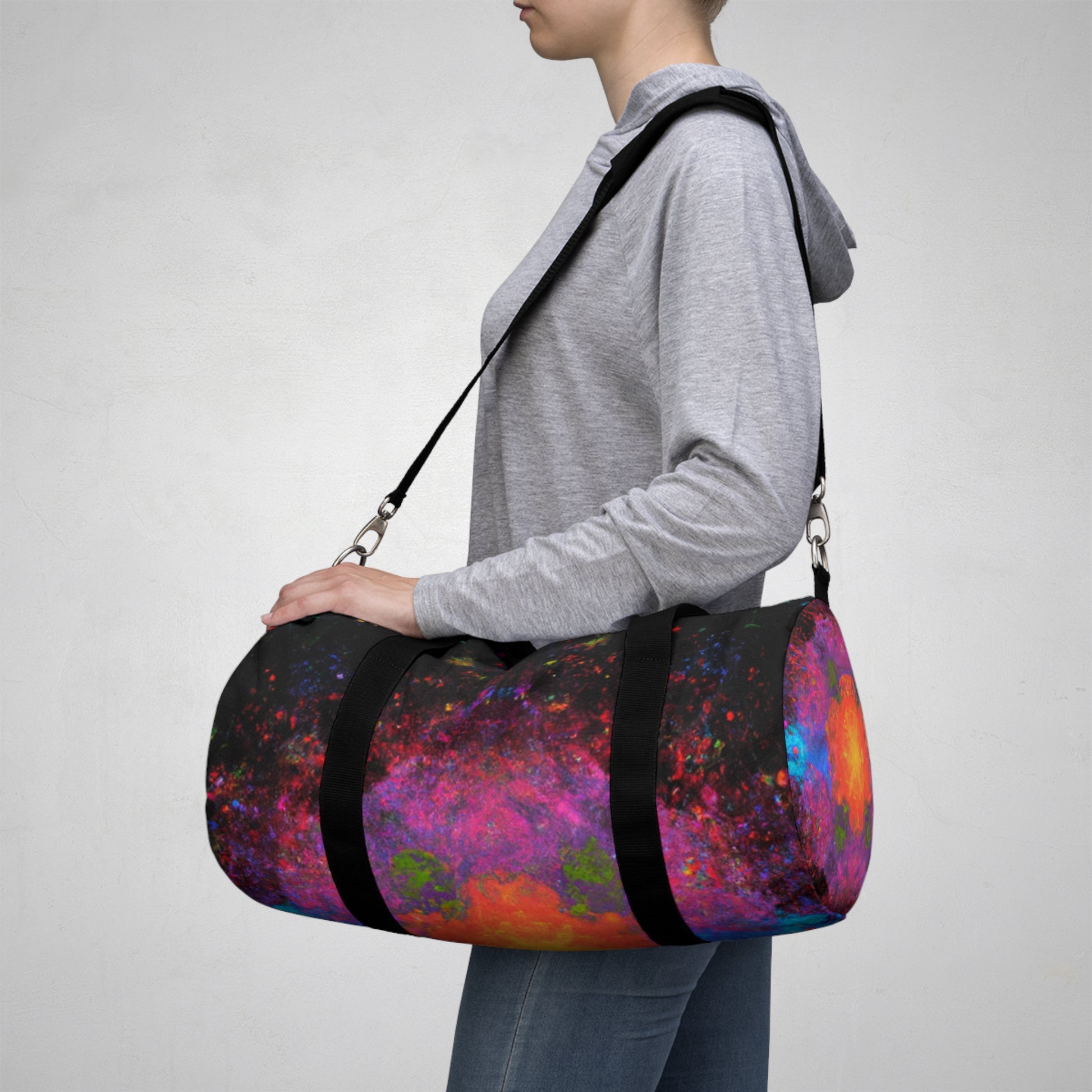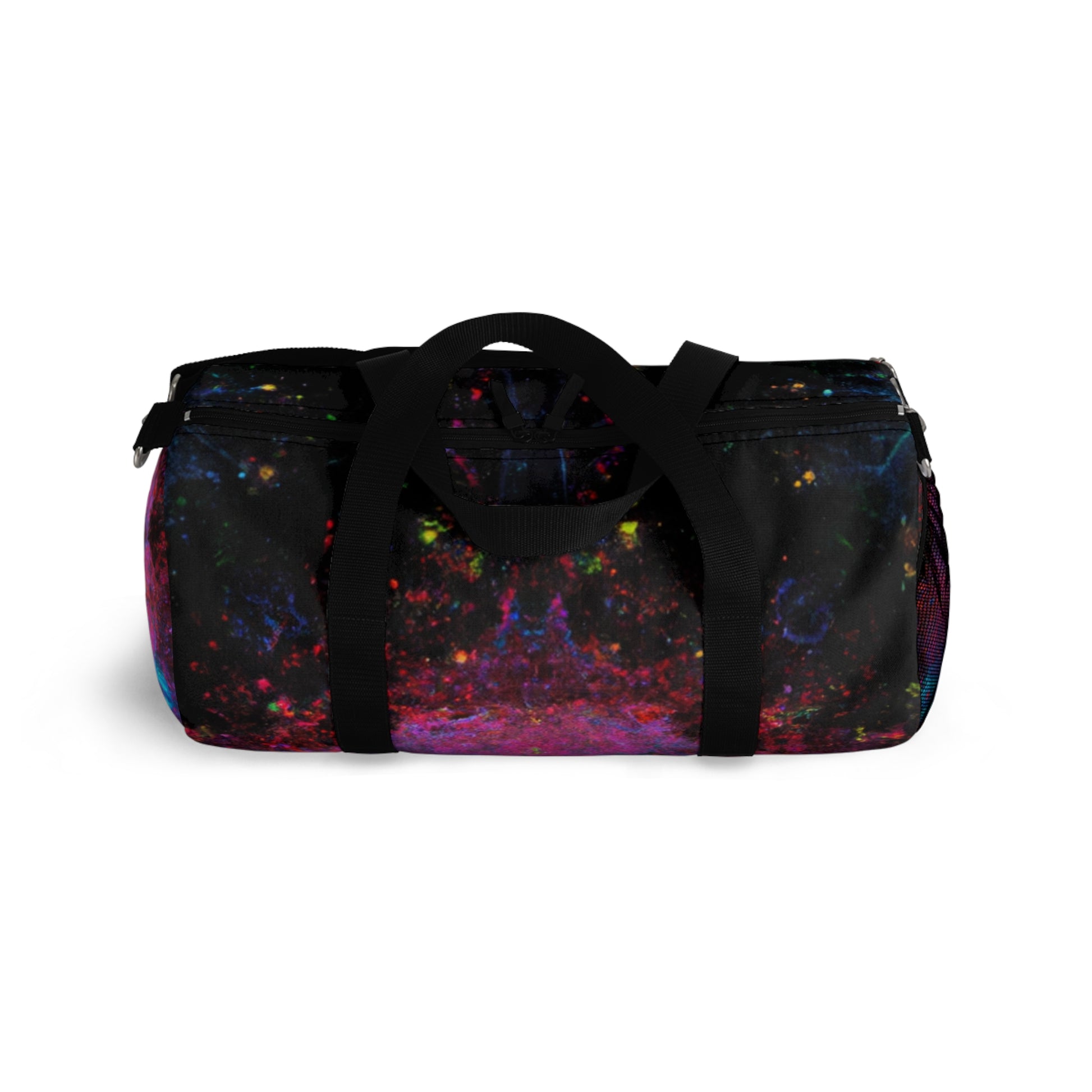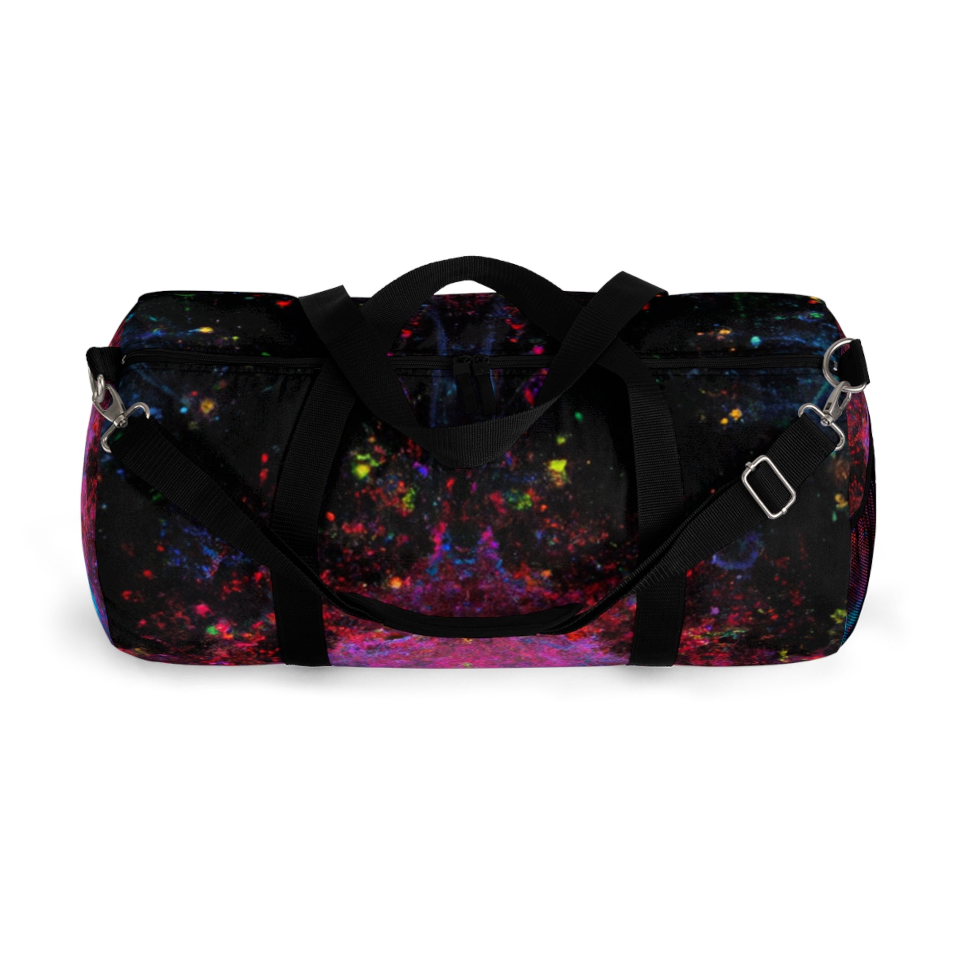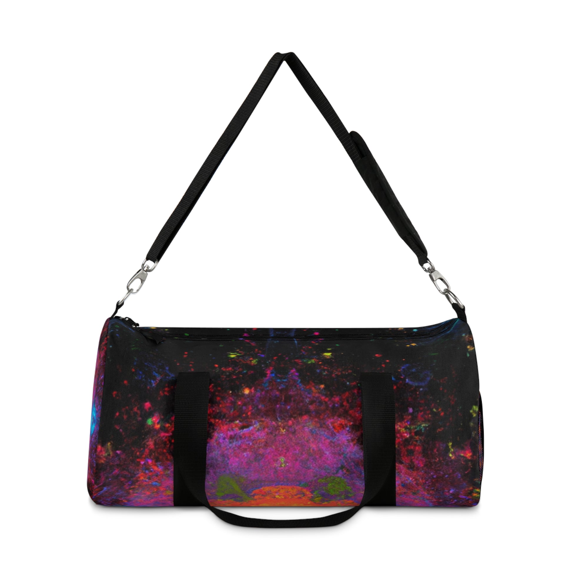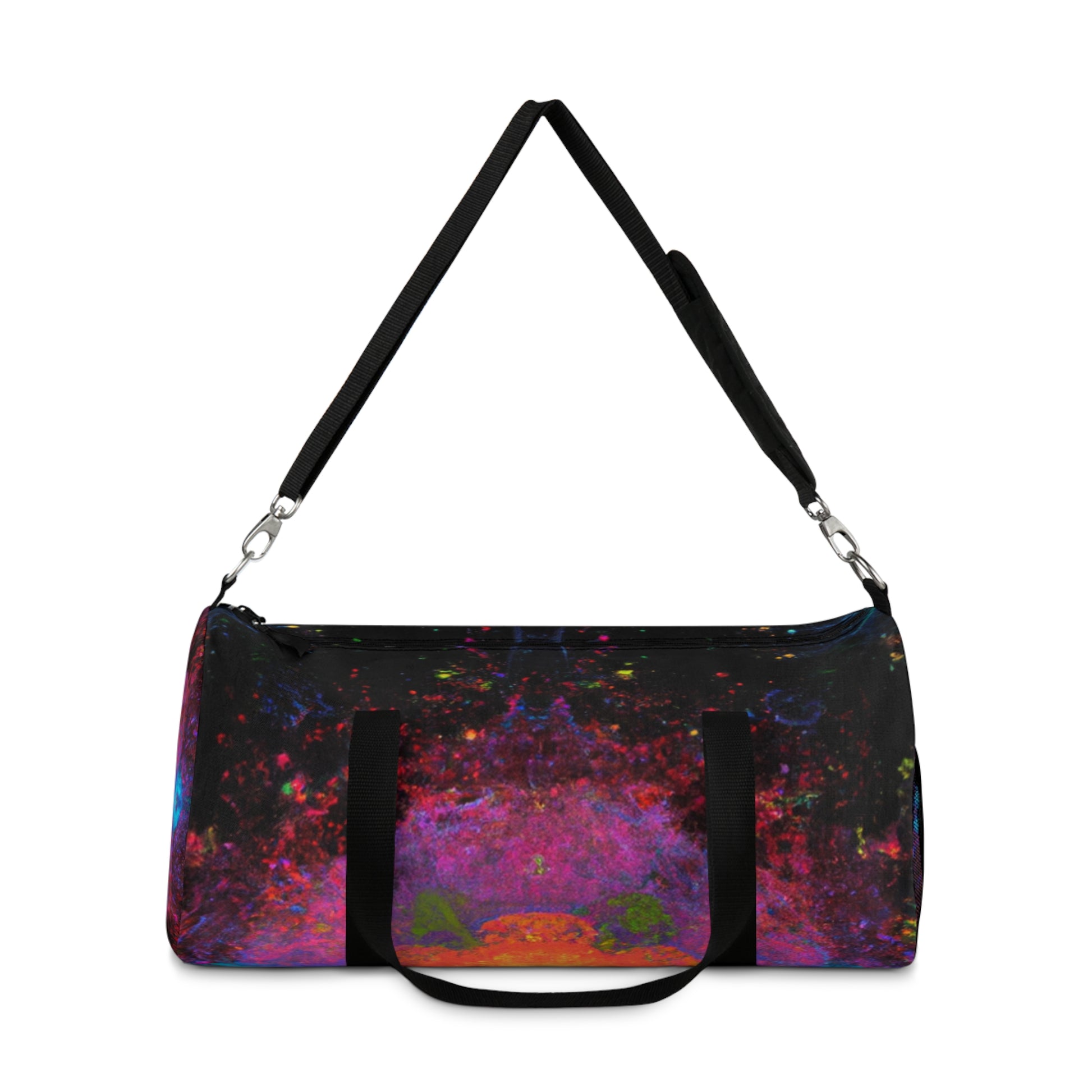 This abstract dufflebag is sure to make a statement! Featuring trippy stars, kaleidoscope, abstract digital art, and vibrant colors, it will be the envy of those around. A unique 3D line design adds a modern flair with a pop of texture and style. Elevate your daily look and transport your essentials in a beautiful and memorable way. #dufflebag #trippstars #kaleidoscope #abstract #digitalart #vibrantcolors #3Dlines #modernstyle #fashionable #stylish #unique #durable #versatile #travelbag #trendy #funtional #travelinstyle #transport #essentials #beautiful #memorable #bagstyle #boostyourensemble #travelbag #poptexture #styleforeveryone #designerbag #dufflebaglover