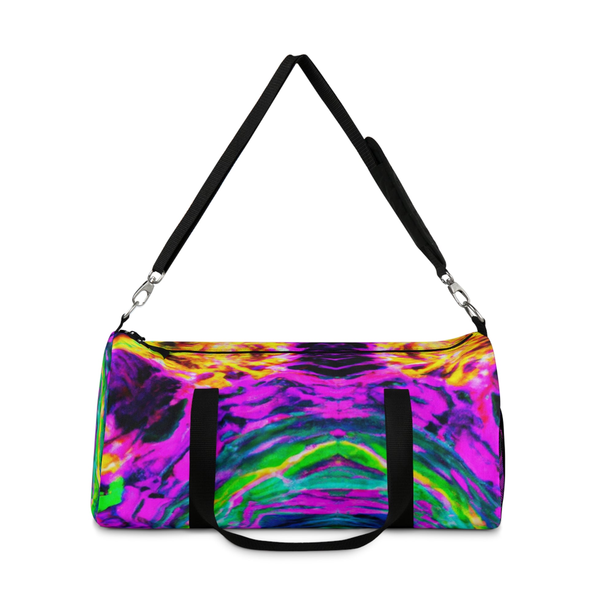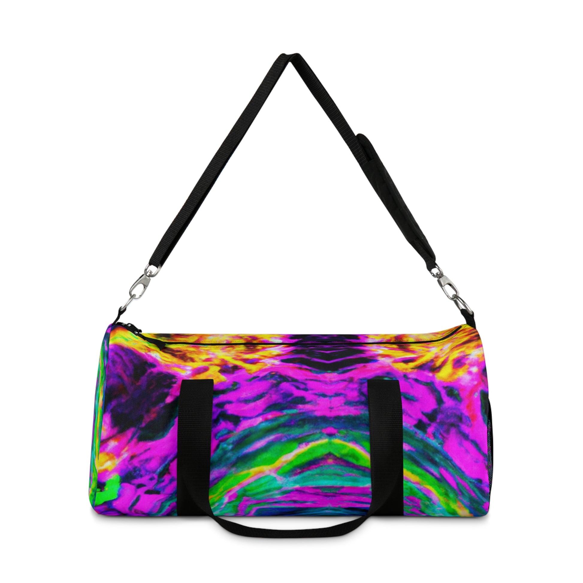 This digital duffle bag features a design that won't be unnoticed! With neon colors, trippy pineapple, kaleidoscope, abstract, and digital art designs in HD, you'll be sure to stand out in the crowd! Show your unique, creative side with this awesome bag! #digitaldufflebag #trippyart #neon #kaleidoscope #pineapple #unique #style #fashion #design #creative #bag #dufflebag #abstract #digitalart #hd #colorful #lateststyle #trippy #cool #trendy #uniquelyyou #vibes #behavior #gearup #accessorize #standout